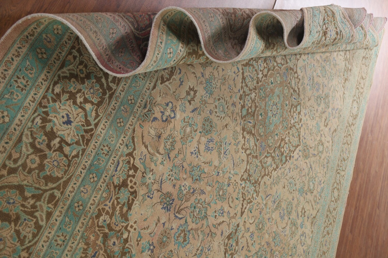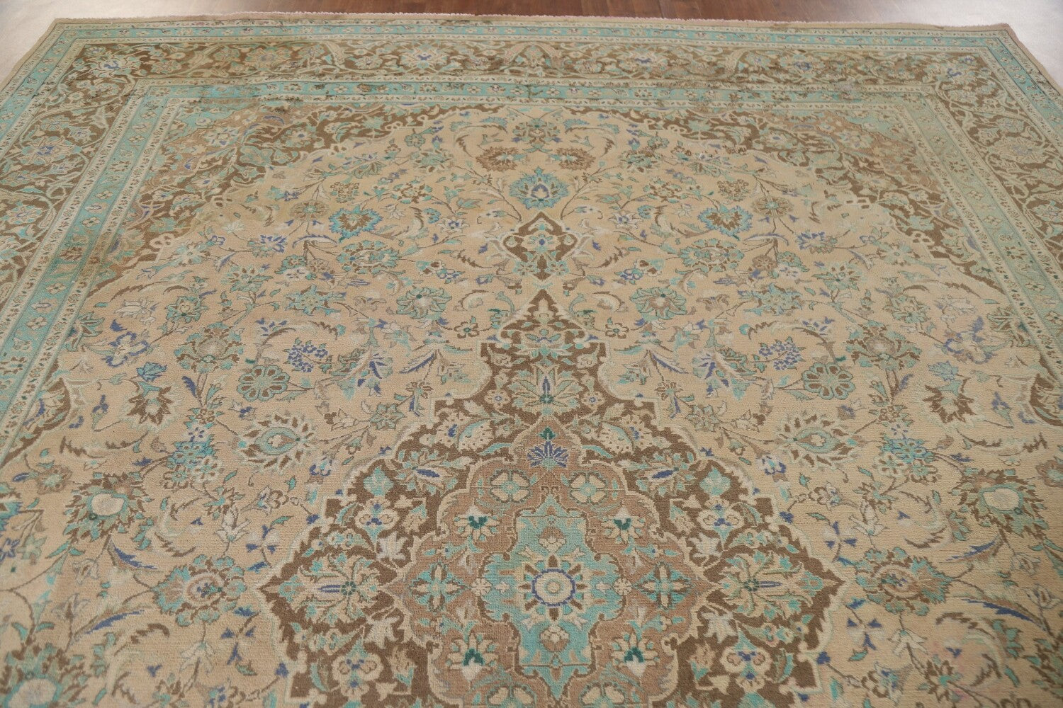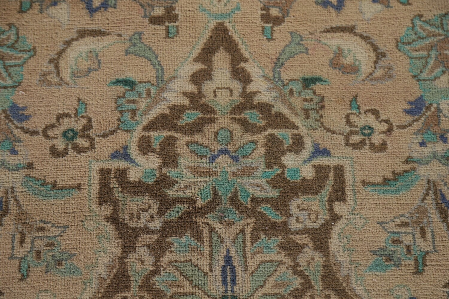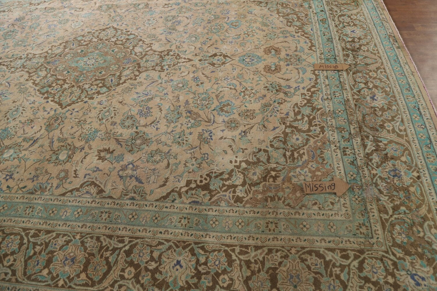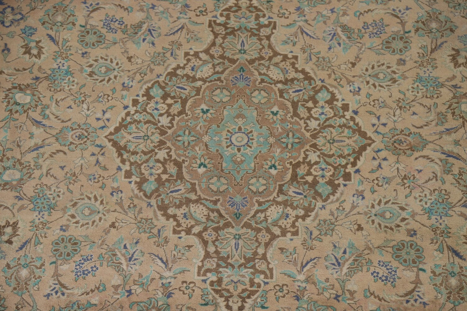 A Beautiful Genuine Persia ( Persia ) Mashad rug is Hand Knotted by skillful weavers in Persia ( Persia ) with 100% Wool Material. This rug is in Good (Evenly Low Pile-Missing Pile) condition. dimensions are 12' 9'' X 9' 10'' in foot and 389 X 300 in centimeter. the primary color is Peach.