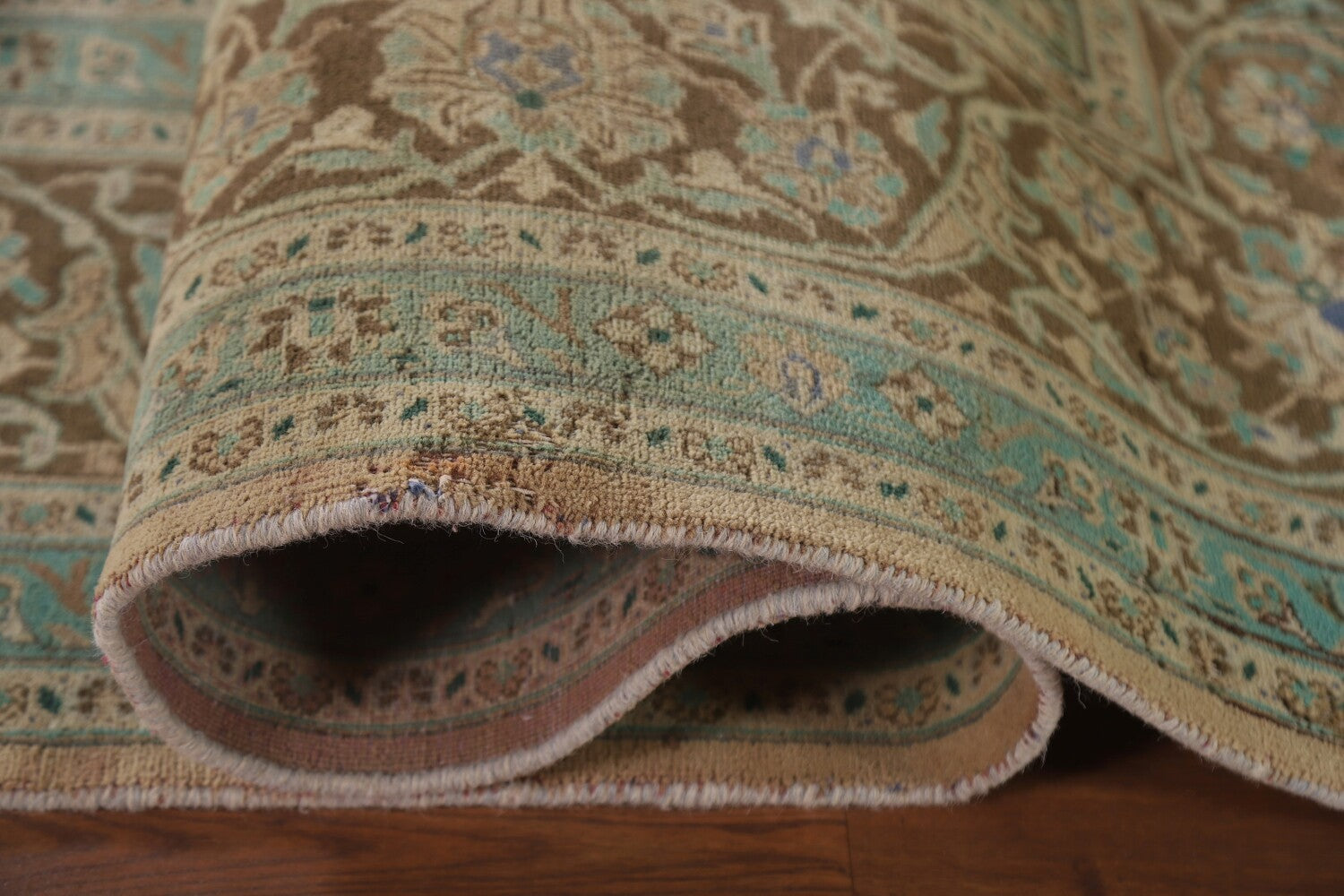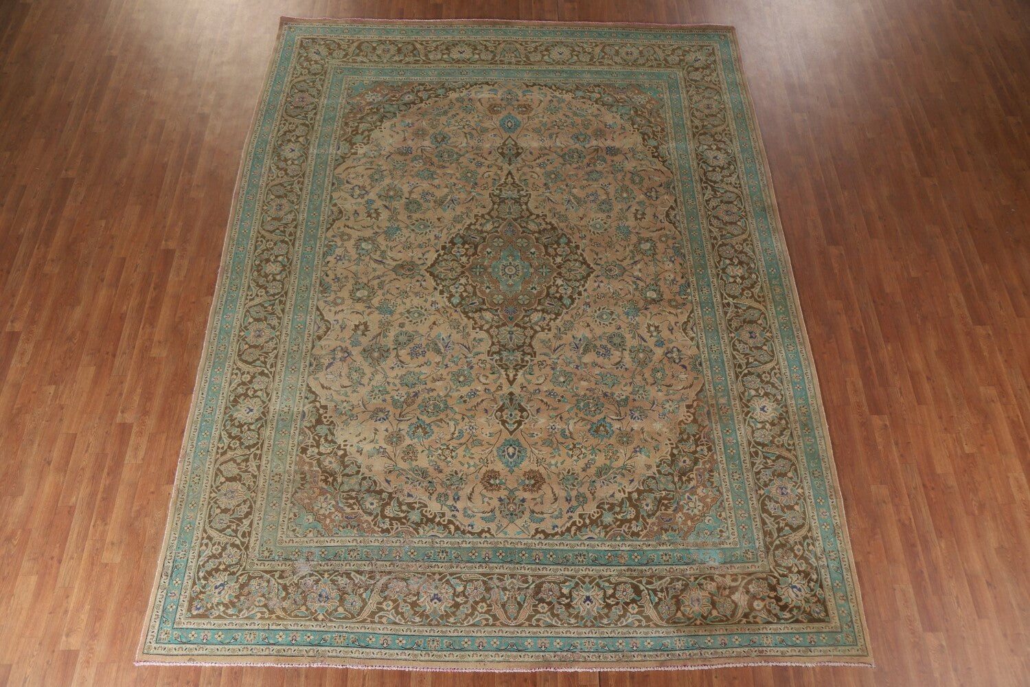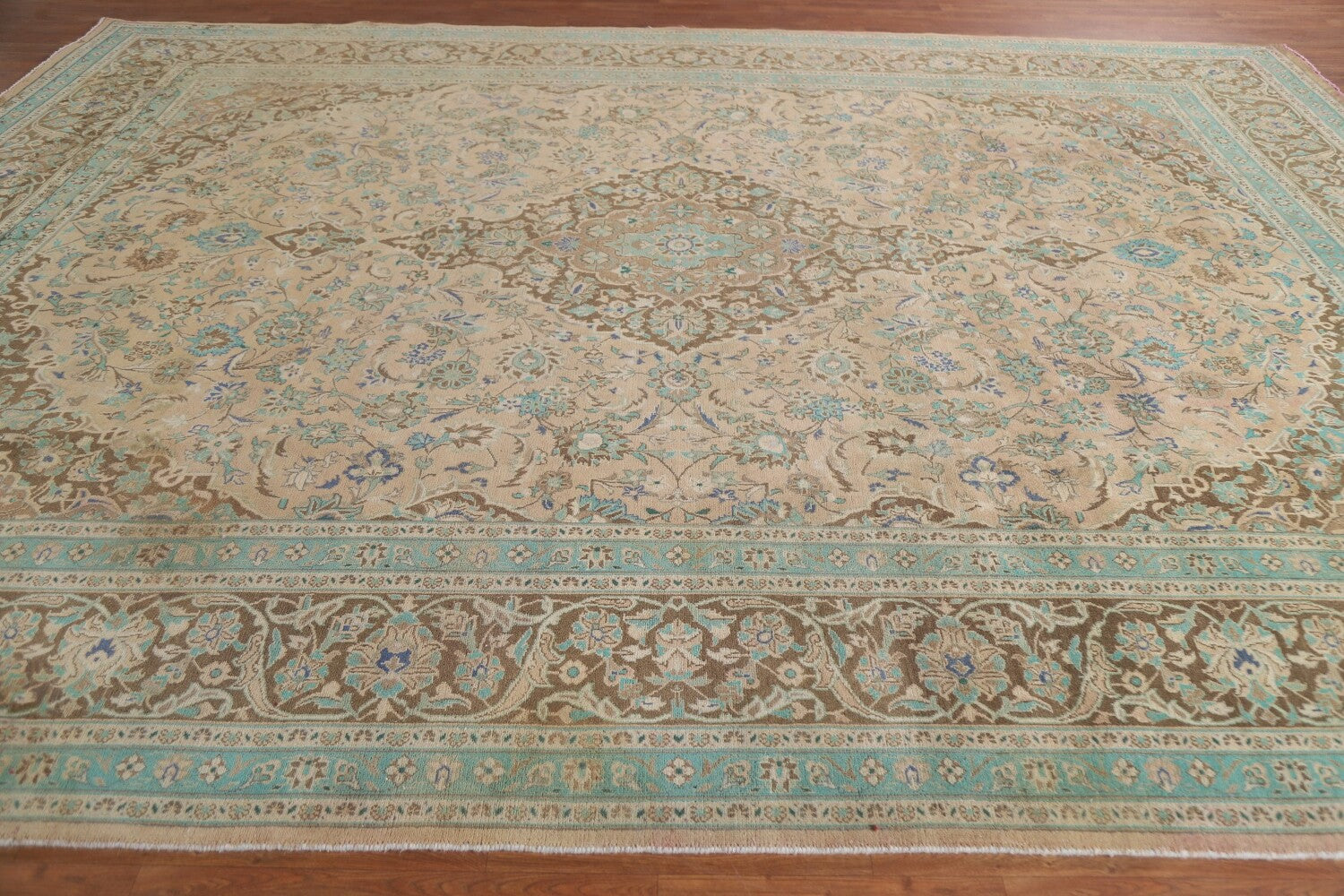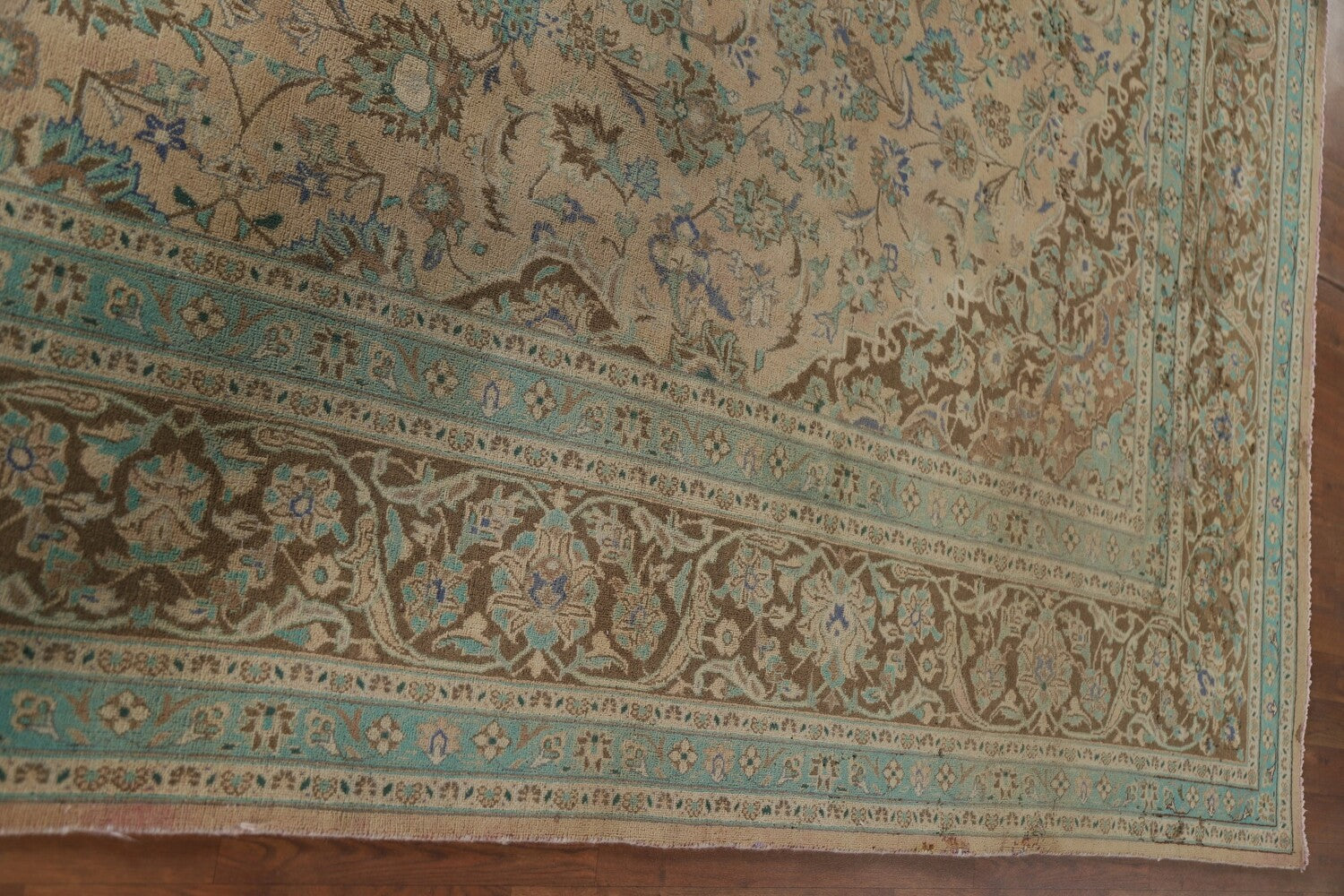 A Beautiful Genuine Persia ( Persia ) Mashad rug is Hand Knotted by skillful weavers in Persia ( Persia ) with 100% Wool Material. This rug is in Good (Evenly Low Pile-Missing Pile) condition. dimensions are 12' 9'' X 9' 10'' in foot and 389 X 300 in centimeter. the primary color is Peach.