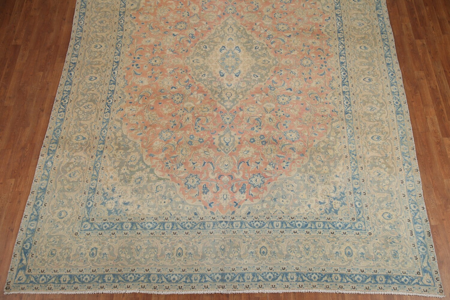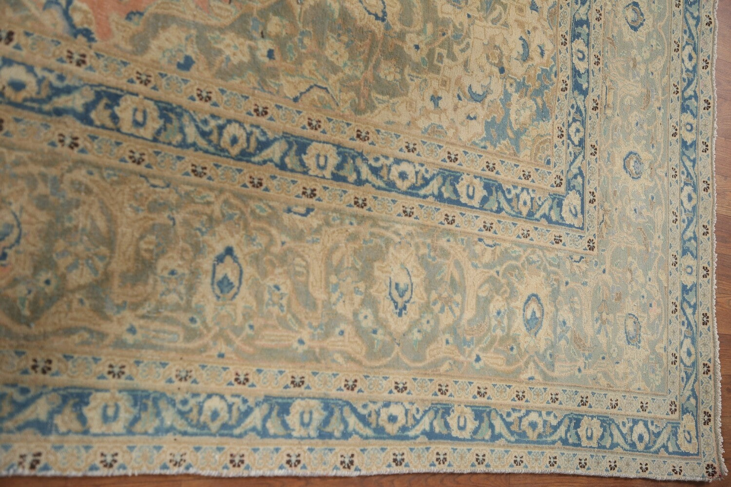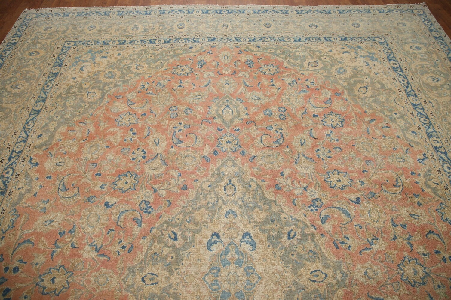 A Beautiful Genuine Persia ( Persia ) Mashad rug is Hand Knotted by skillful weavers in Persia ( Persia ) with 100% Wool Material. This rug is in Very Good (Evenly Low Pile) condition. dimensions are 12' 6'' X 9' 6'' in foot and 381 X 290 in centimeter. the primary color is Pink.