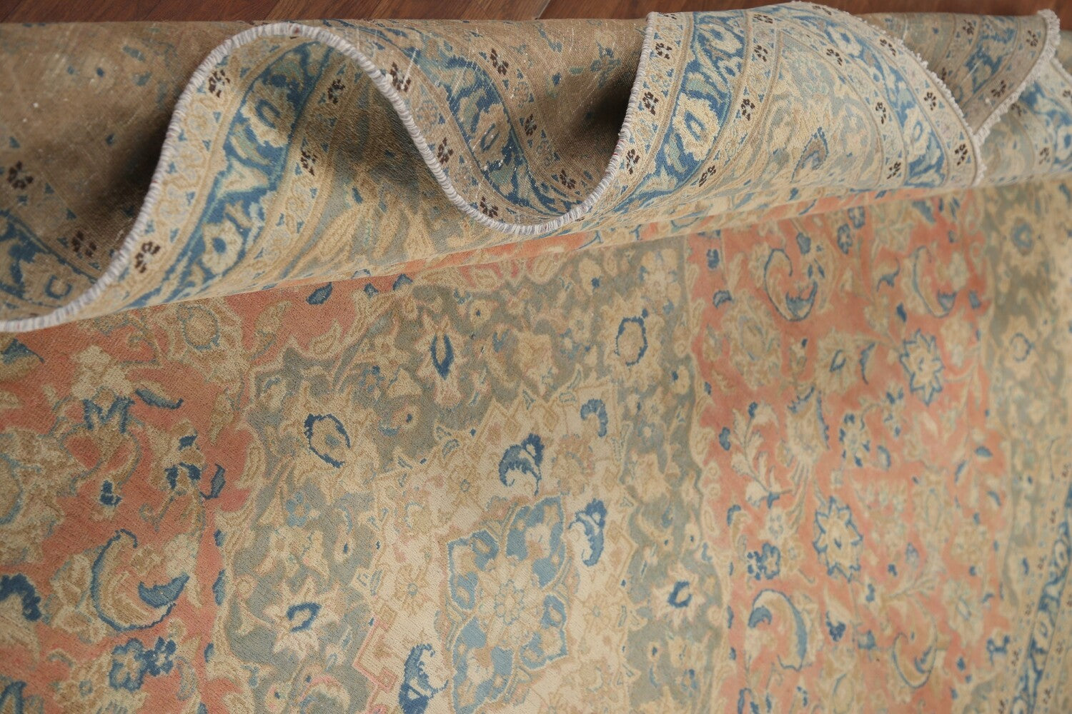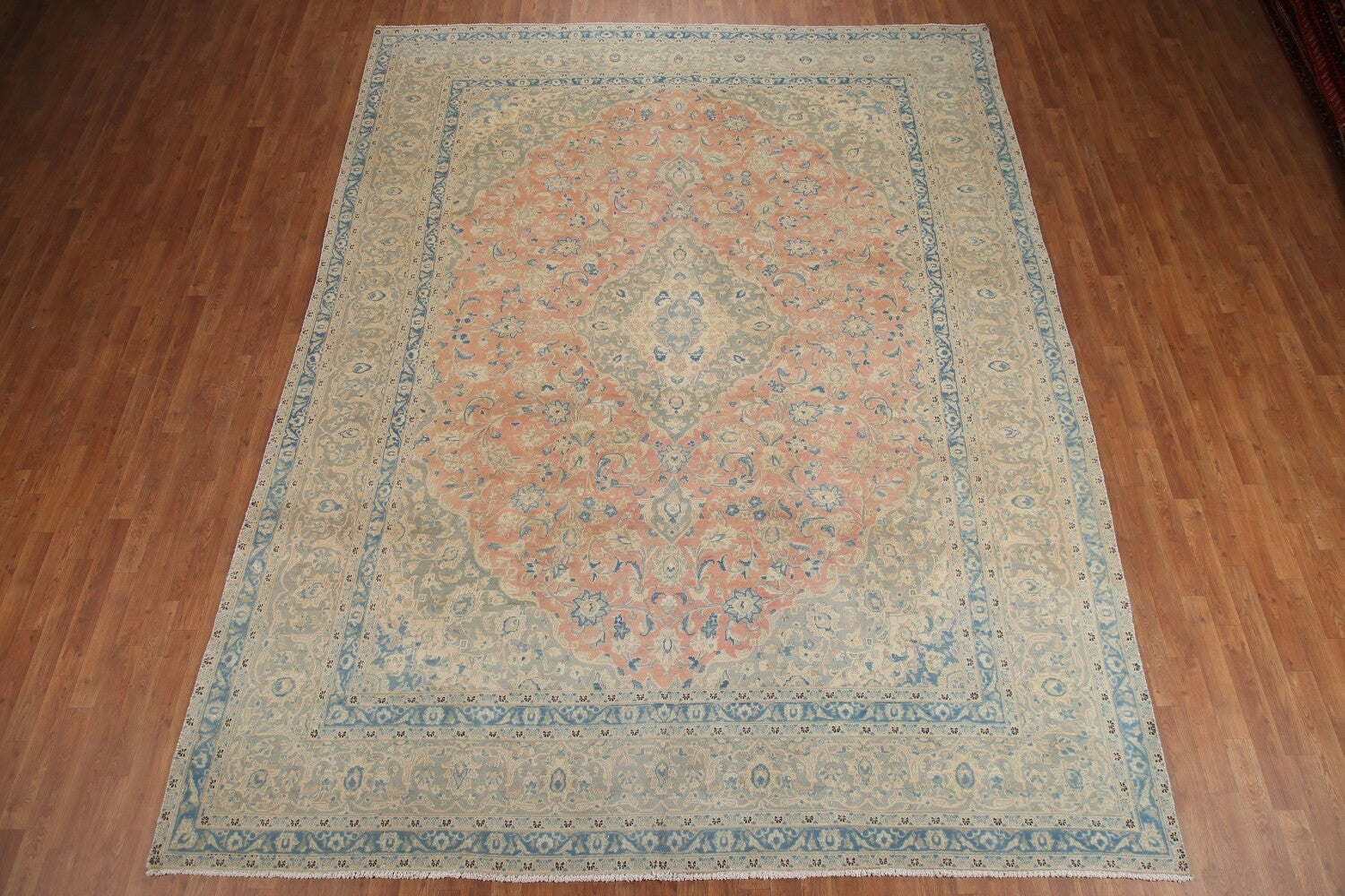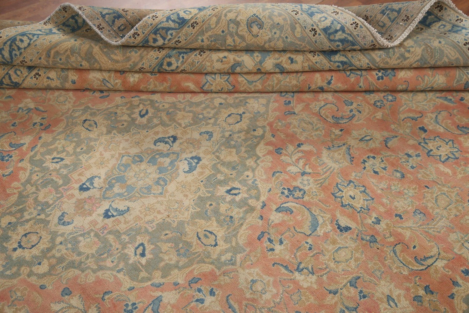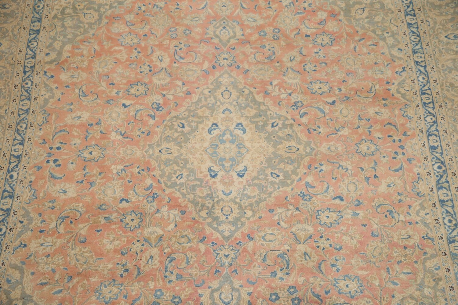 A Beautiful Genuine Persia ( Persia ) Mashad rug is Hand Knotted by skillful weavers in Persia ( Persia ) with 100% Wool Material. This rug is in Very Good (Evenly Low Pile) condition. dimensions are 12' 6'' X 9' 6'' in foot and 381 X 290 in centimeter. the primary color is Pink.