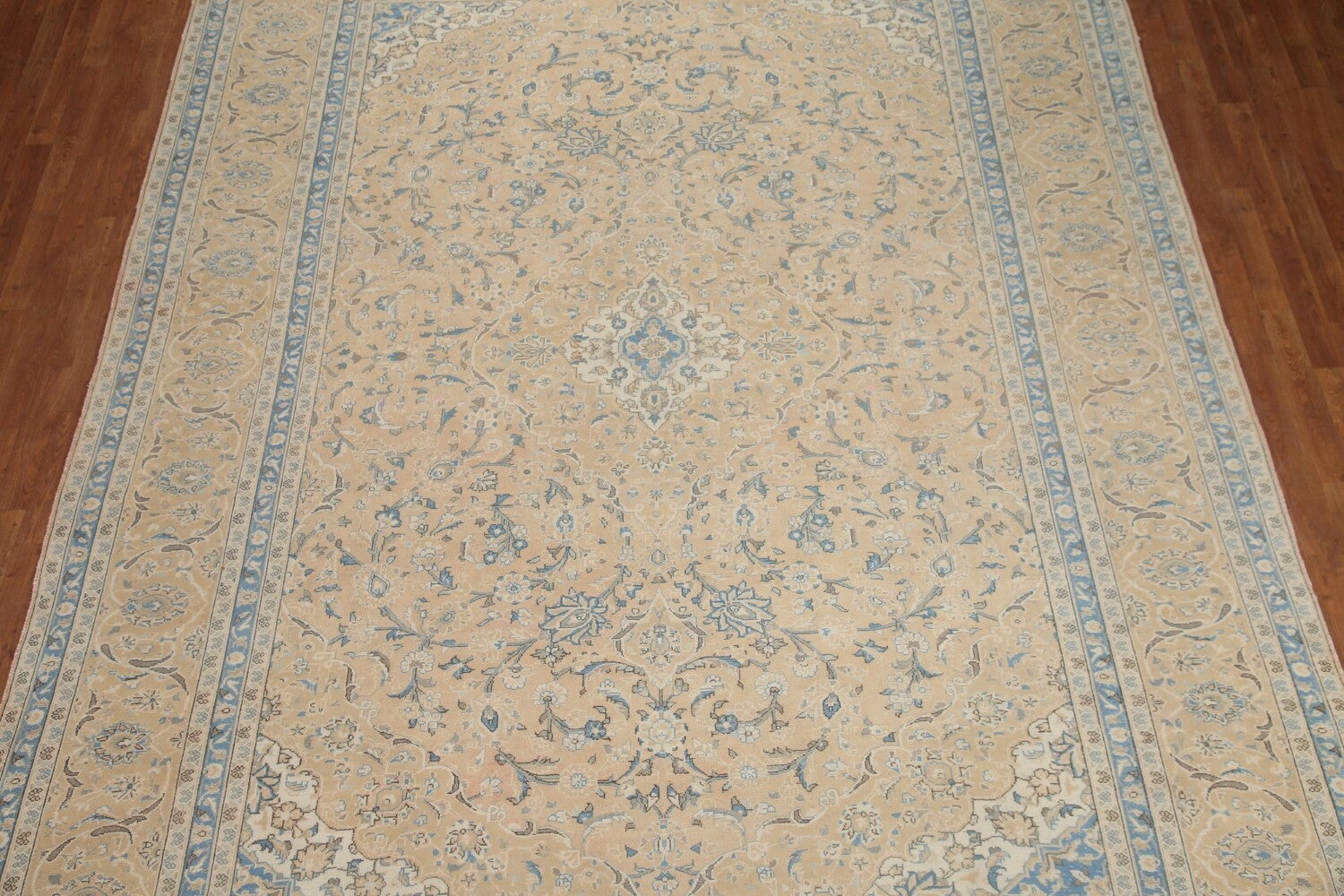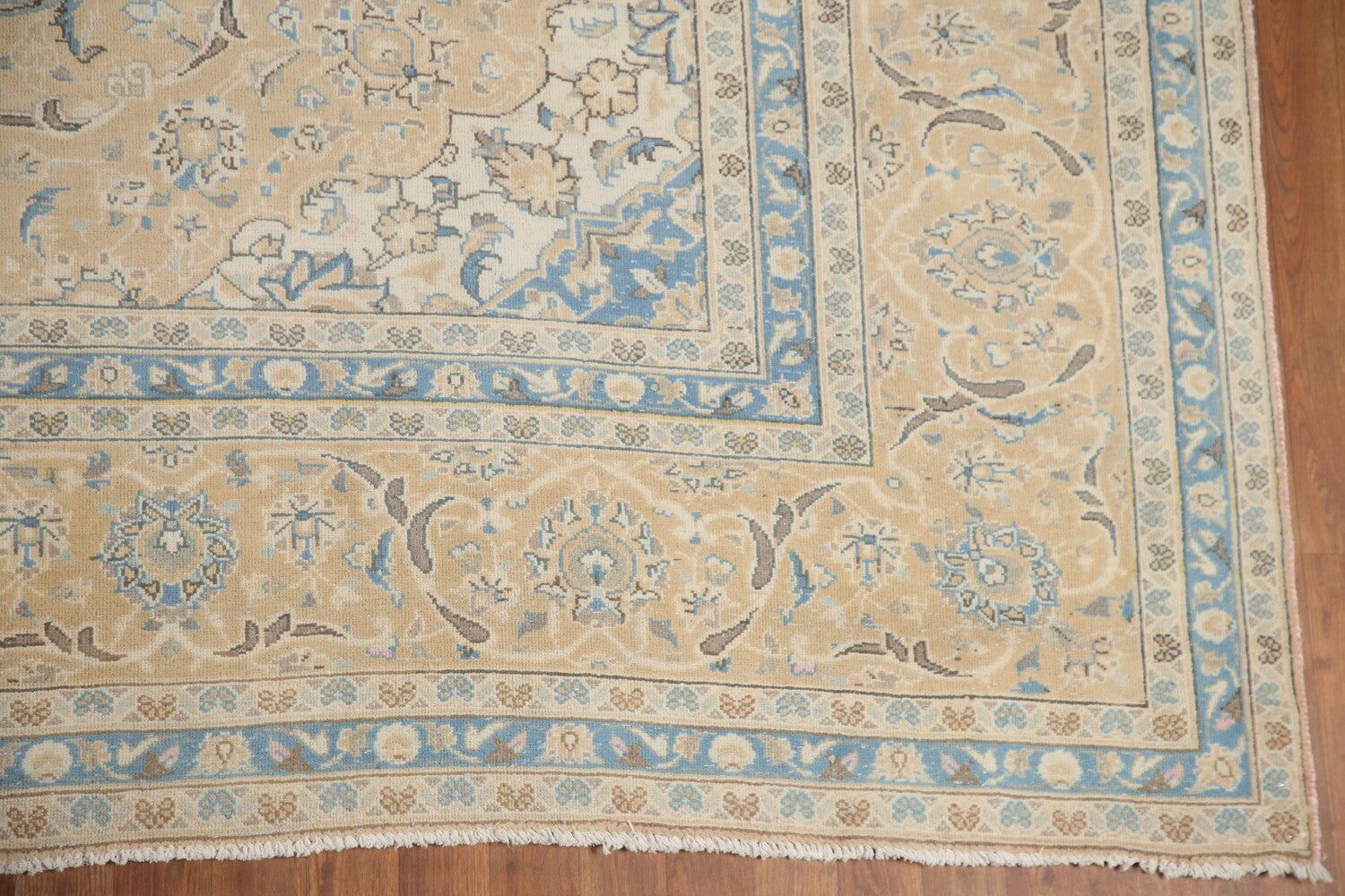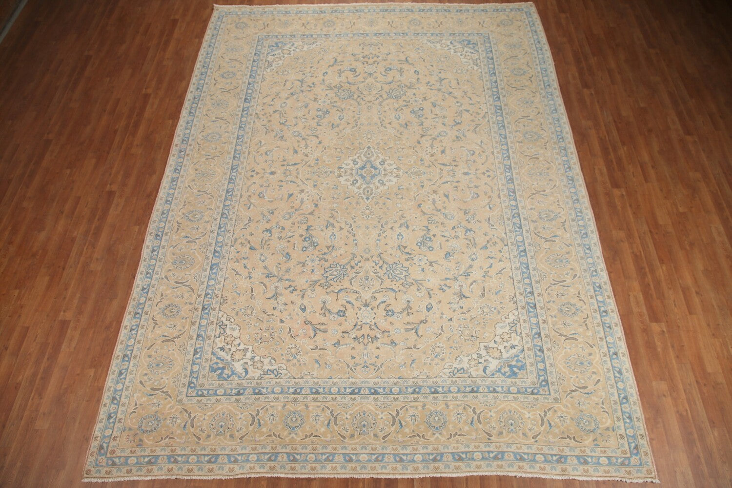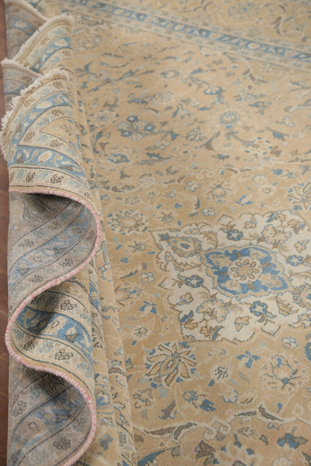 A Beautiful Genuine Persia ( Persia ) Mashad rug is Hand Knotted by skillful weavers in Persia ( Persia ) with 100% Wool Material. This rug is in Very Good (Evenly Low Pile) condition. dimensions are 13' 1'' X 9' 11'' in foot and 399 X 302 in centimeter. the primary color is Peach.