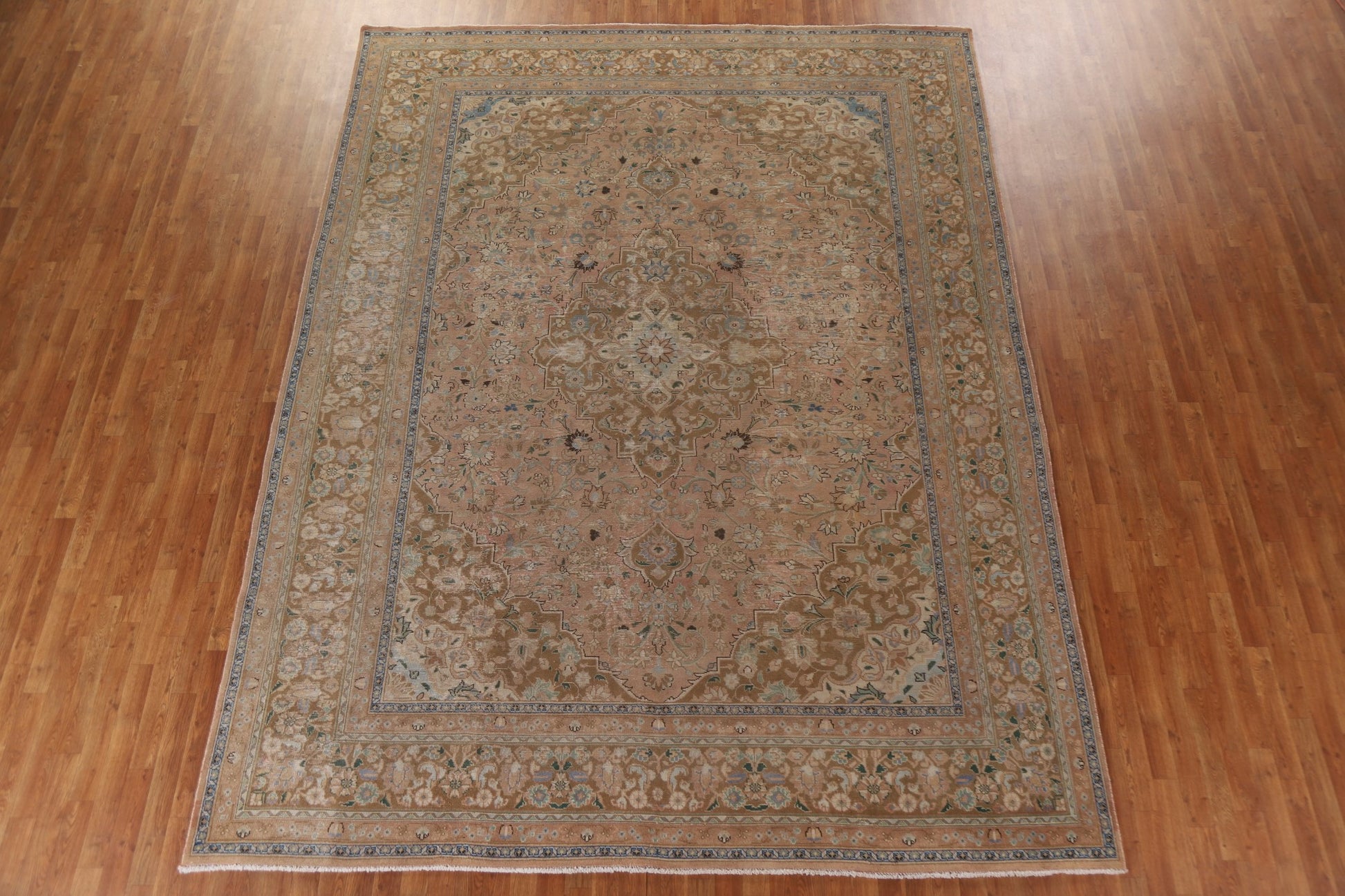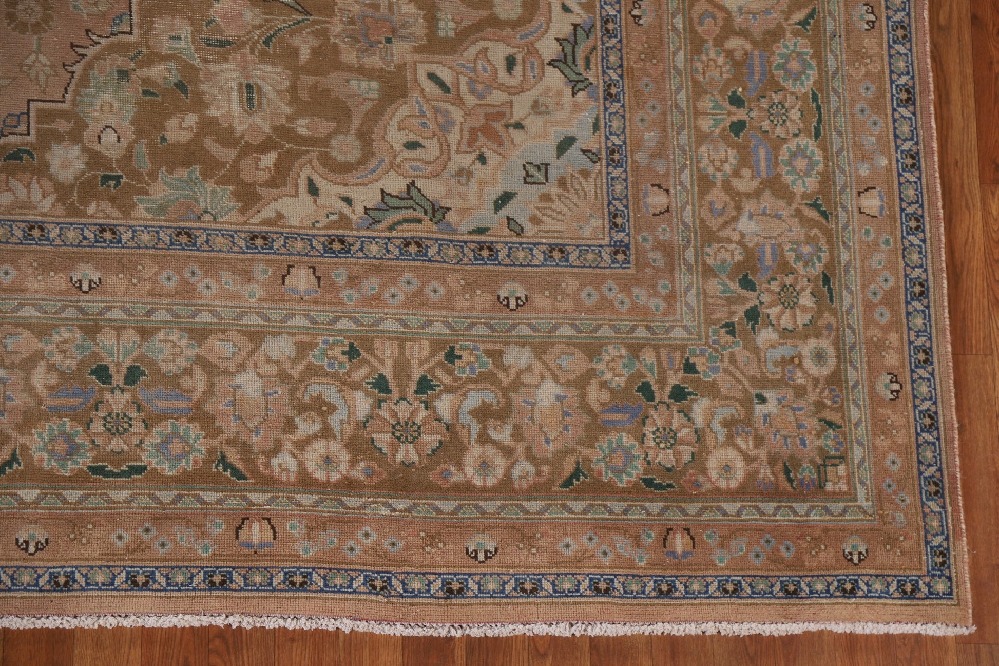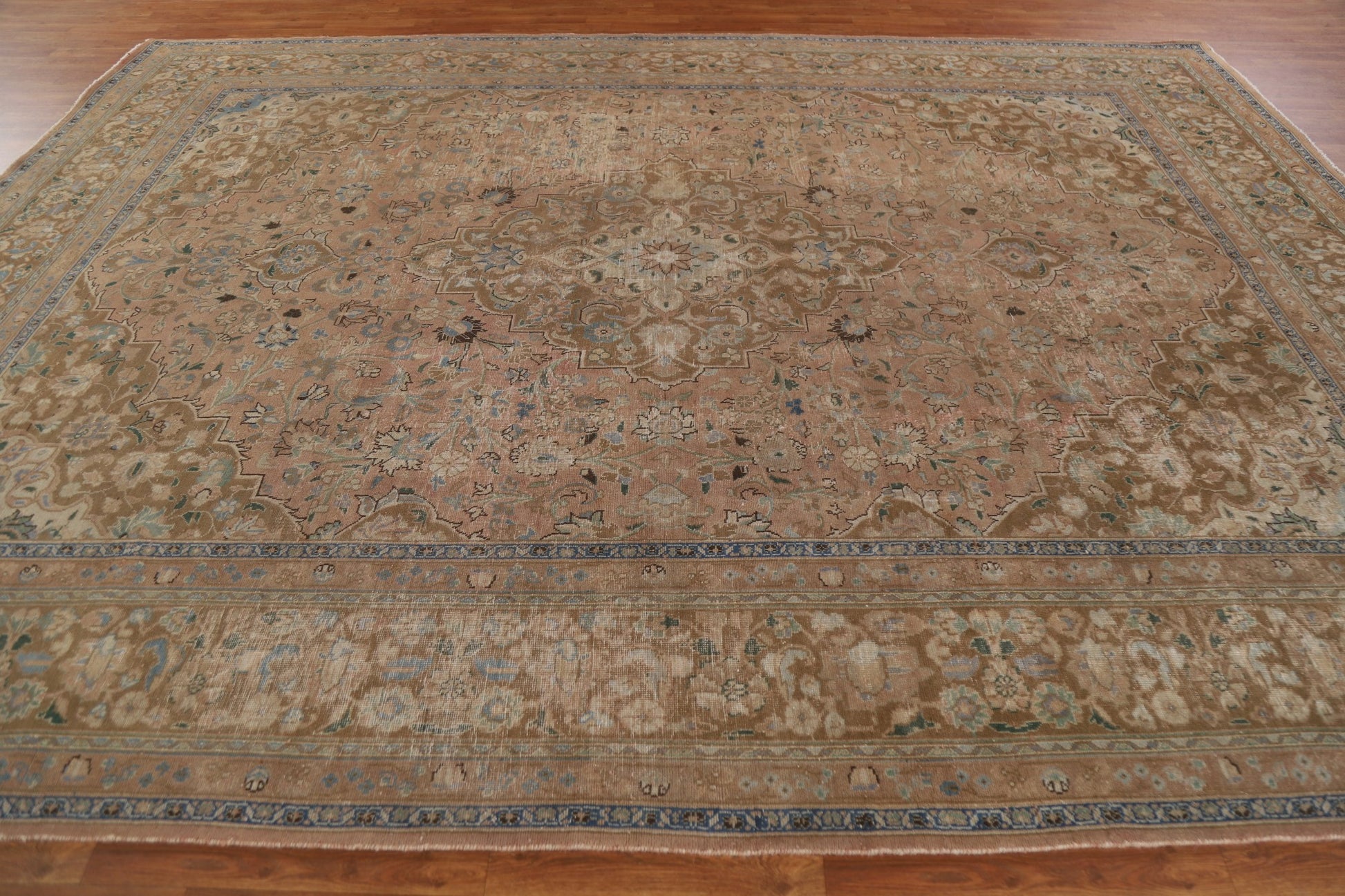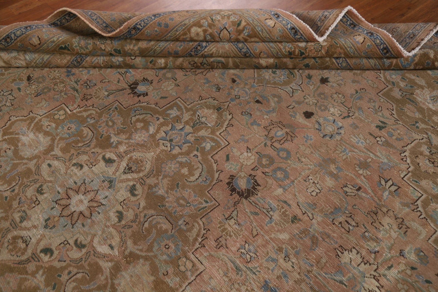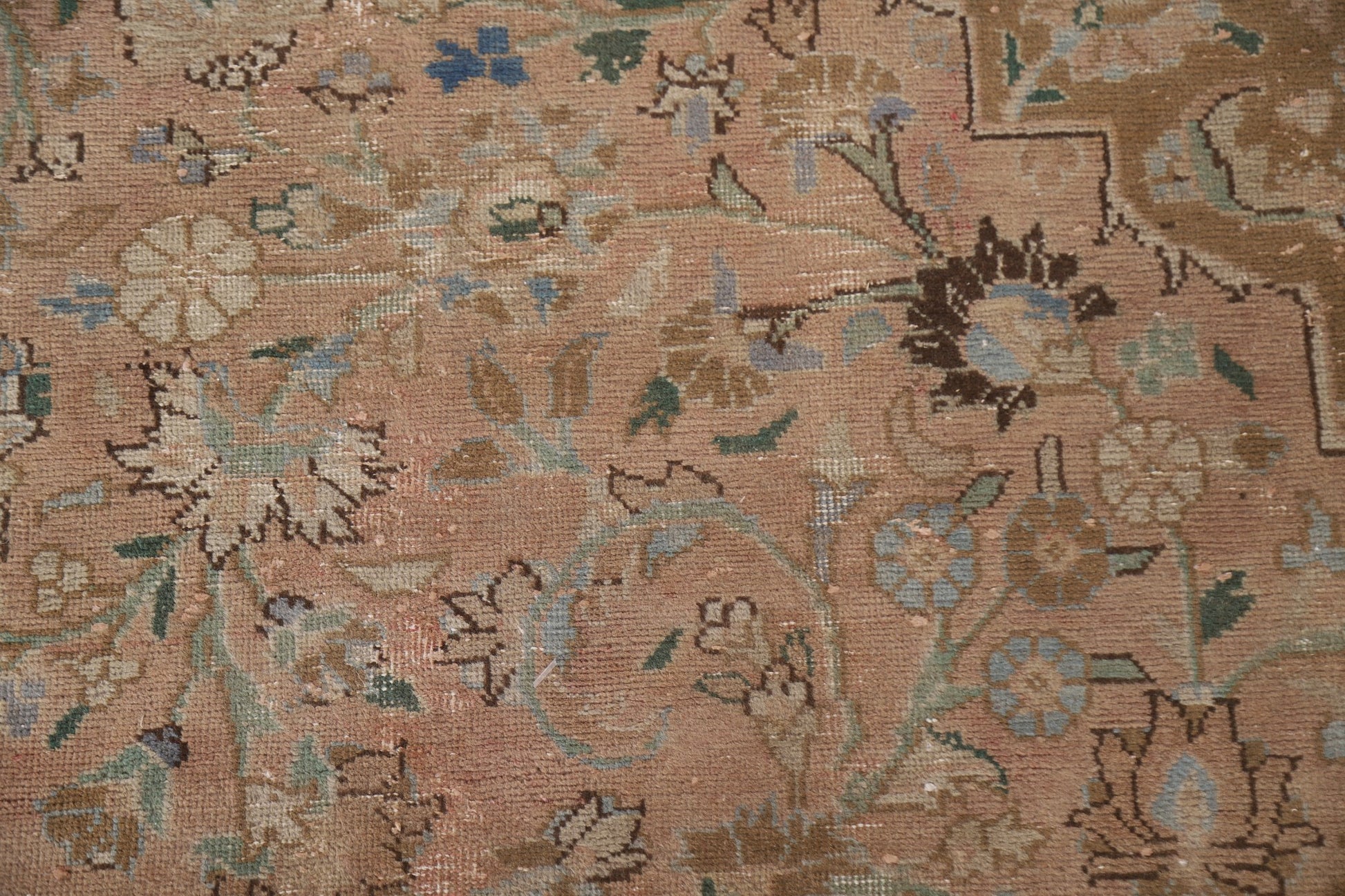 A Beautiful Genuine Persia ( Persia ) Mashad rug is Hand Knotted by skillful weavers in Persia ( Persia ) with 100% Wool Material. This rug is in Very Good (Evenly Low Pile) condition. dimensions are 12' 8'' X 9' 8'' in foot and 386 X 295 in centimeter. the primary color is Coral.