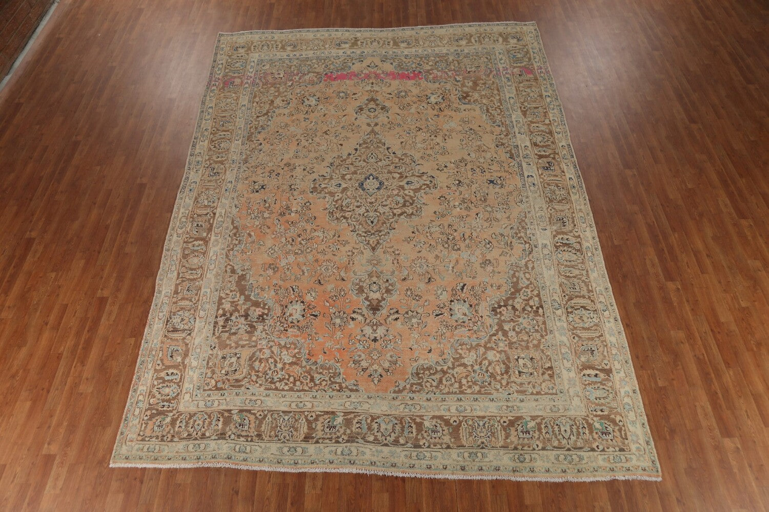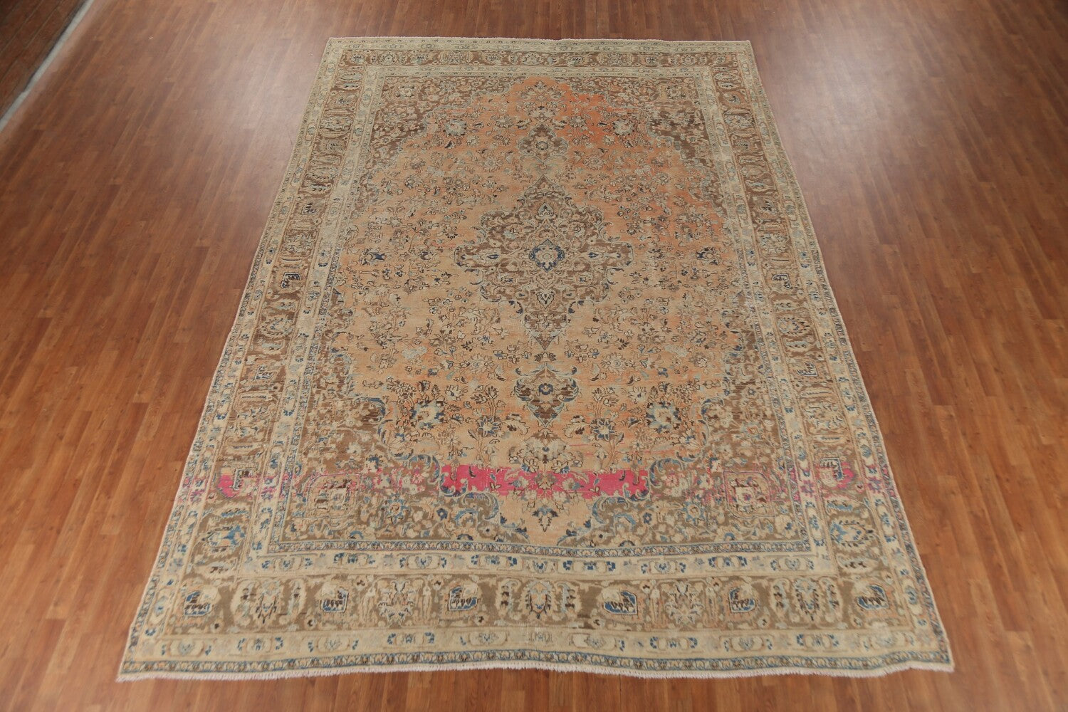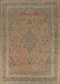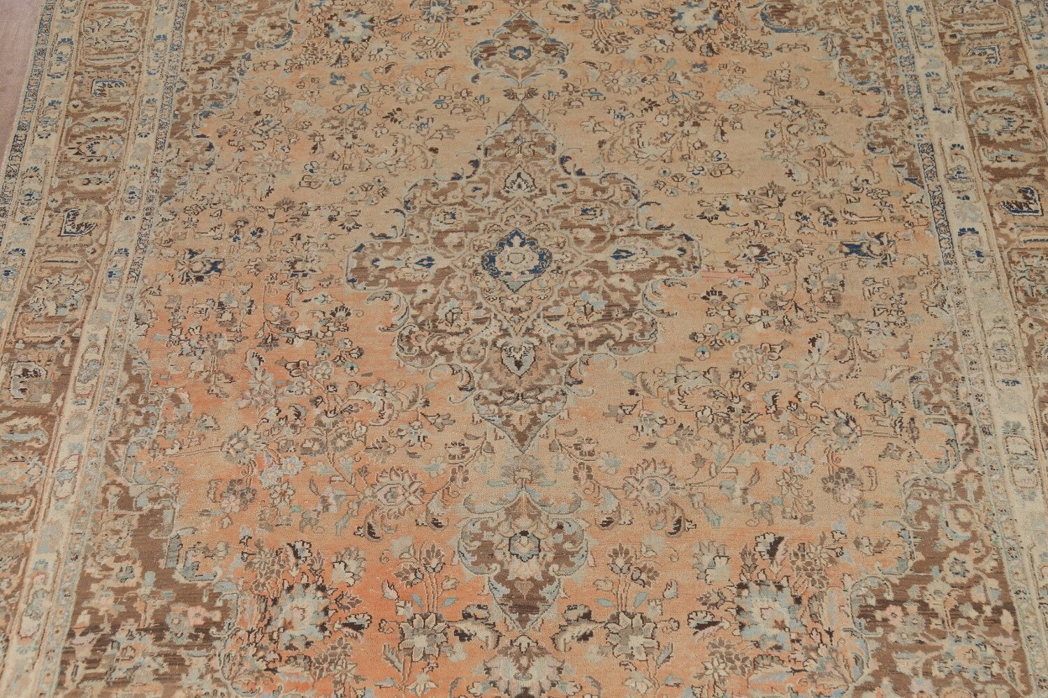 A Beautiful Genuine Persia ( Persia ) Mashad rug is Hand Knotted by skillful weavers in Persia ( Persia ) with 100% Wool Material. This rug is in Good (Low Pile-Abrash) condition. dimensions are 13' 4'' X 9' 7'' in foot and 406 X 292 in centimeter. the primary color is Oranges & Rust.