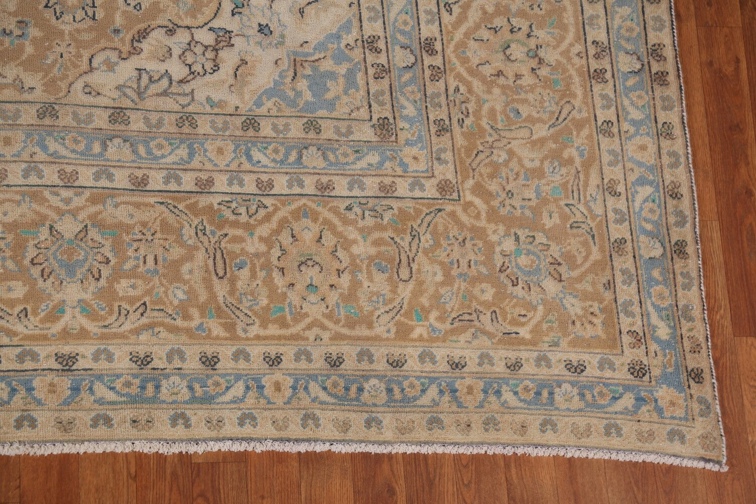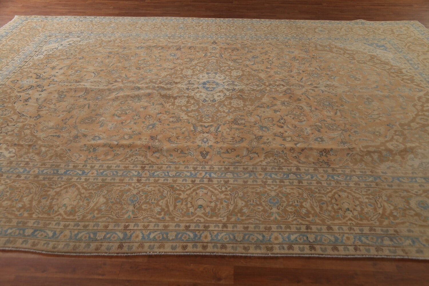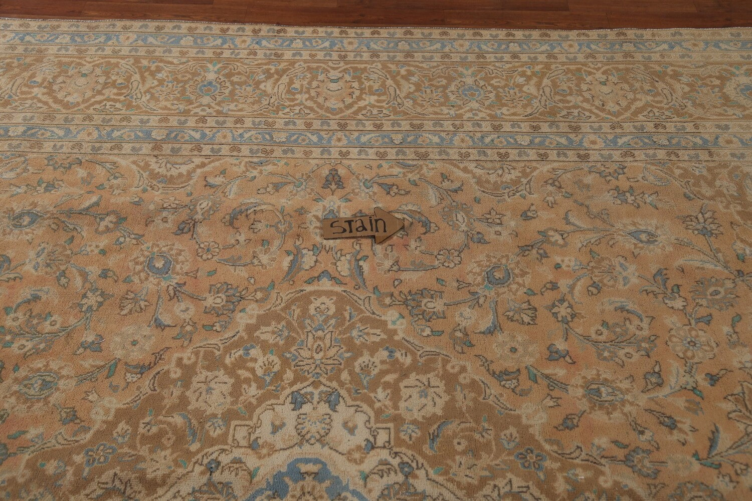 A Beautiful Genuine Persia ( Persia ) Mashad rug is Hand Knotted by skillful weavers in Persia ( Persia ) with 100% Wool Material. This rug is in Very Good (Evenly Low Pile-Stain) condition. dimensions are 13' 4'' X 9' 6'' in foot and 406 X 290 in centimeter. the primary color is Oranges & Rust.