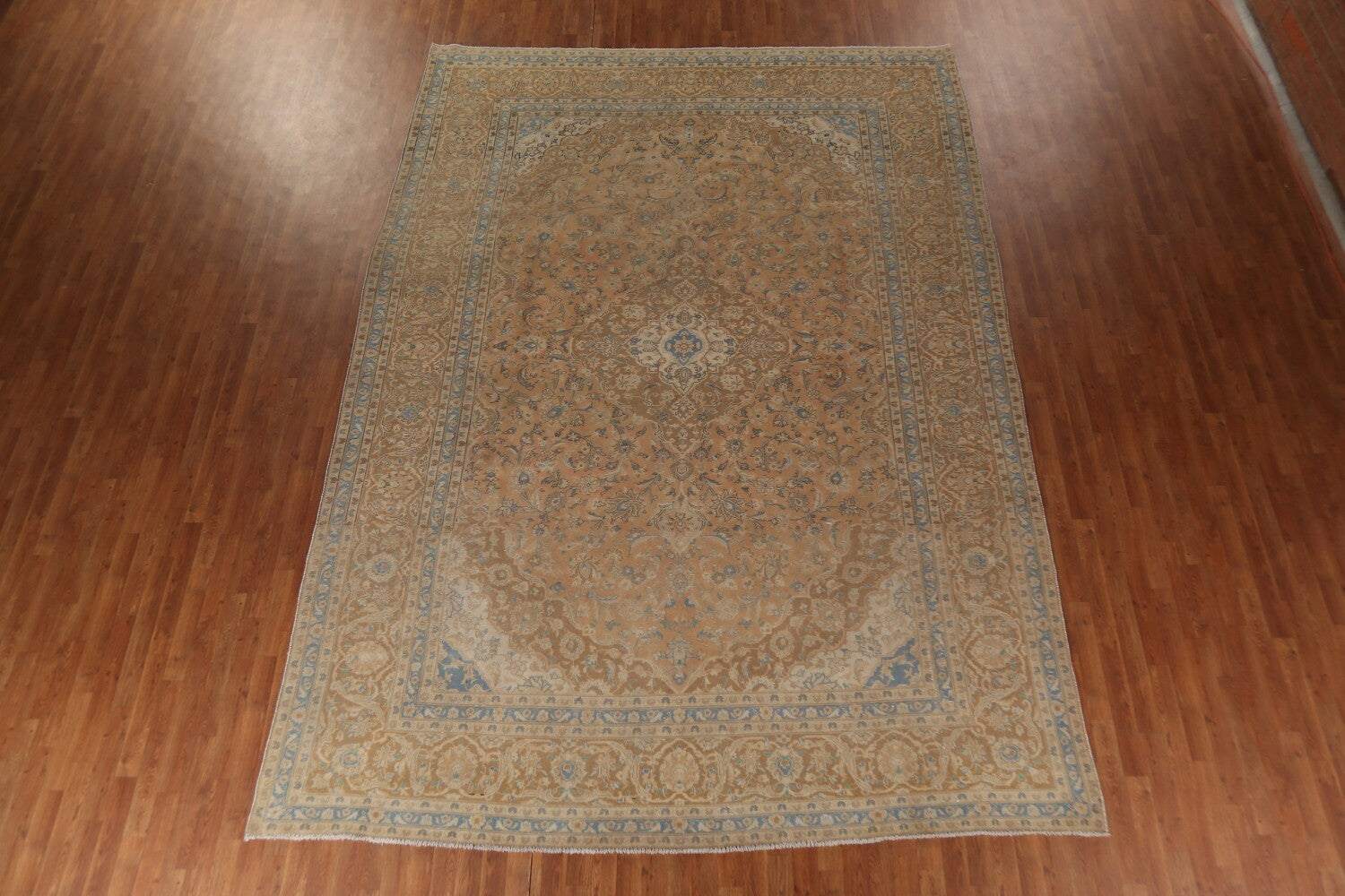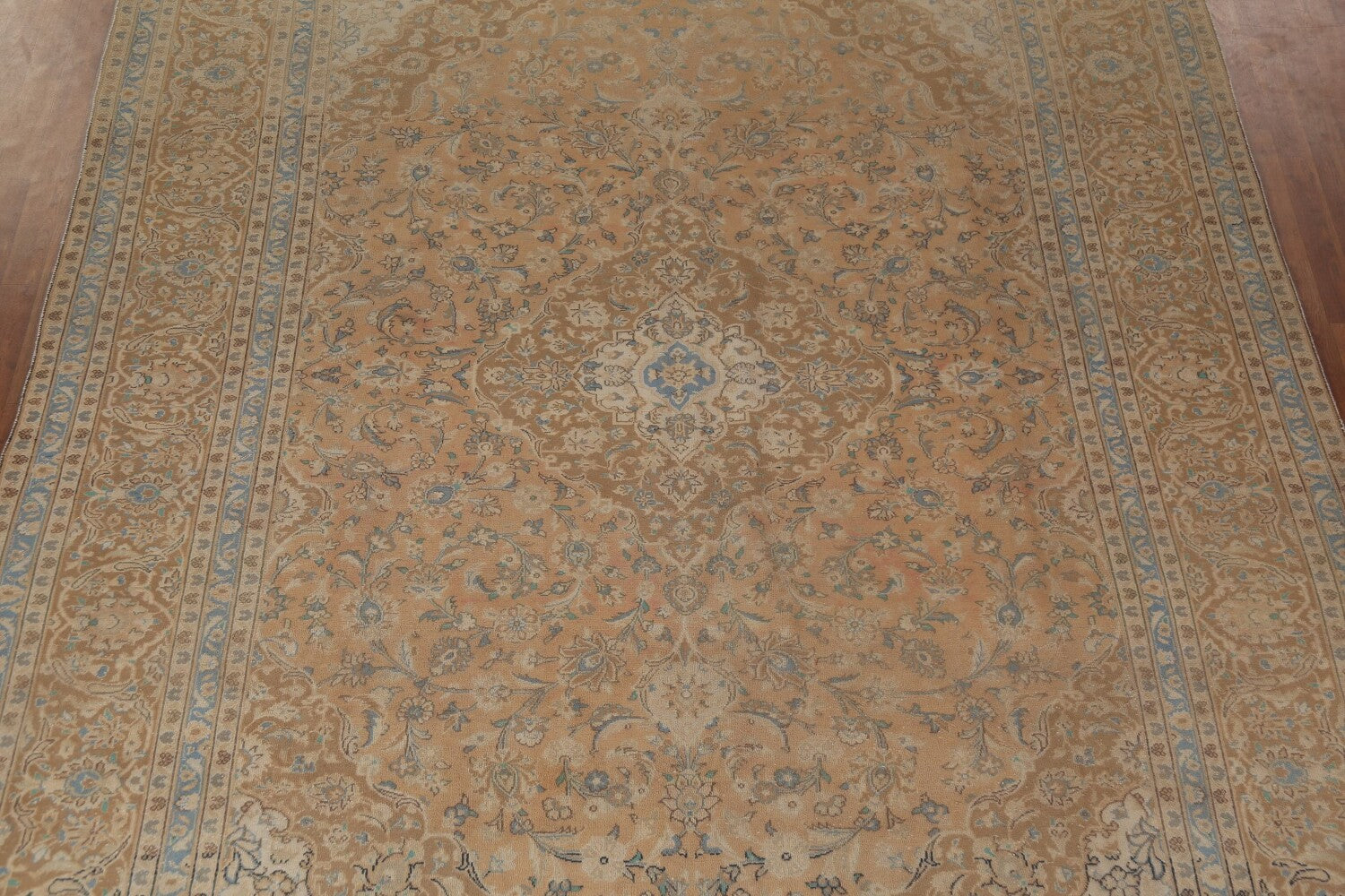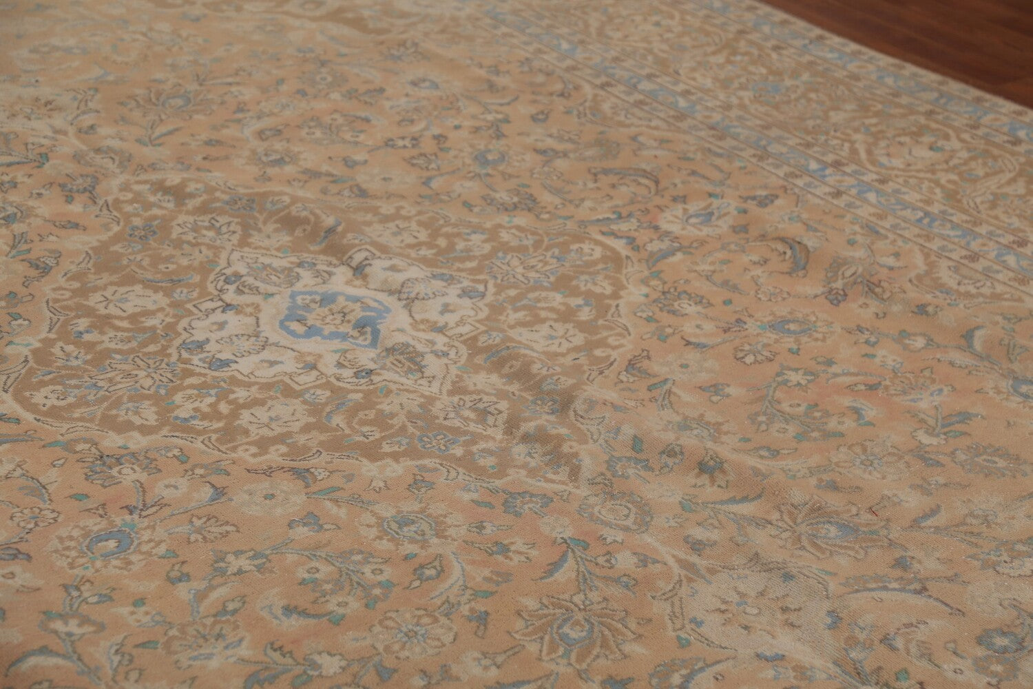 A Beautiful Genuine Persia ( Persia ) Mashad rug is Hand Knotted by skillful weavers in Persia ( Persia ) with 100% Wool Material. This rug is in Very Good (Evenly Low Pile-Stain) condition. dimensions are 13' 4'' X 9' 6'' in foot and 406 X 290 in centimeter. the primary color is Oranges & Rust.