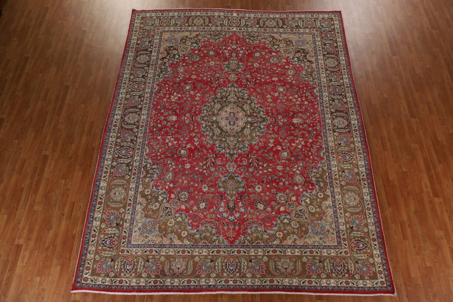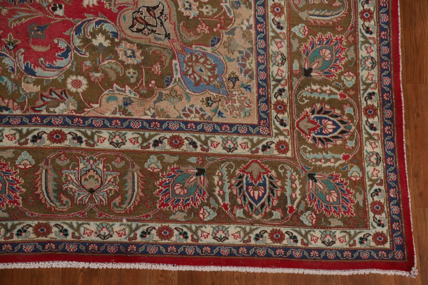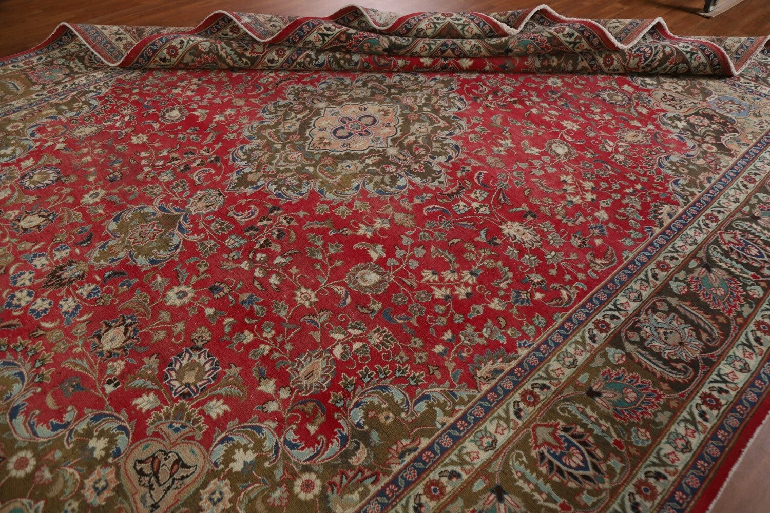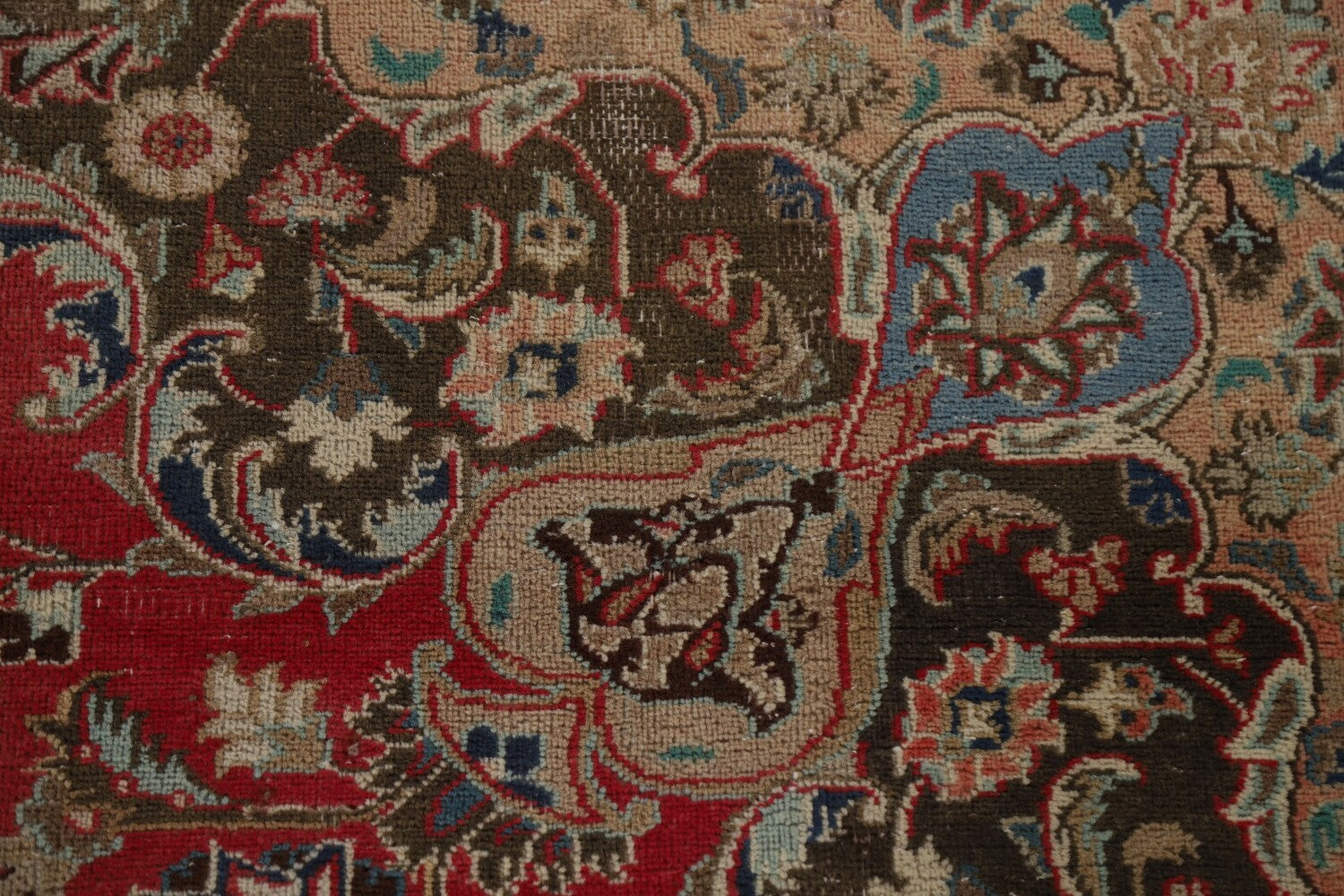 A Beautiful Genuine Persia ( Persia ) Mashad rug is Hand Knotted by skillful weavers in Persia ( Persia ) with 100% Wool Material. This rug is in Very Good (Evenly Low Pile) condition. dimensions are 12' 6'' X 9' 10'' in foot and 381 X 300 in centimeter. the primary color is Pink.