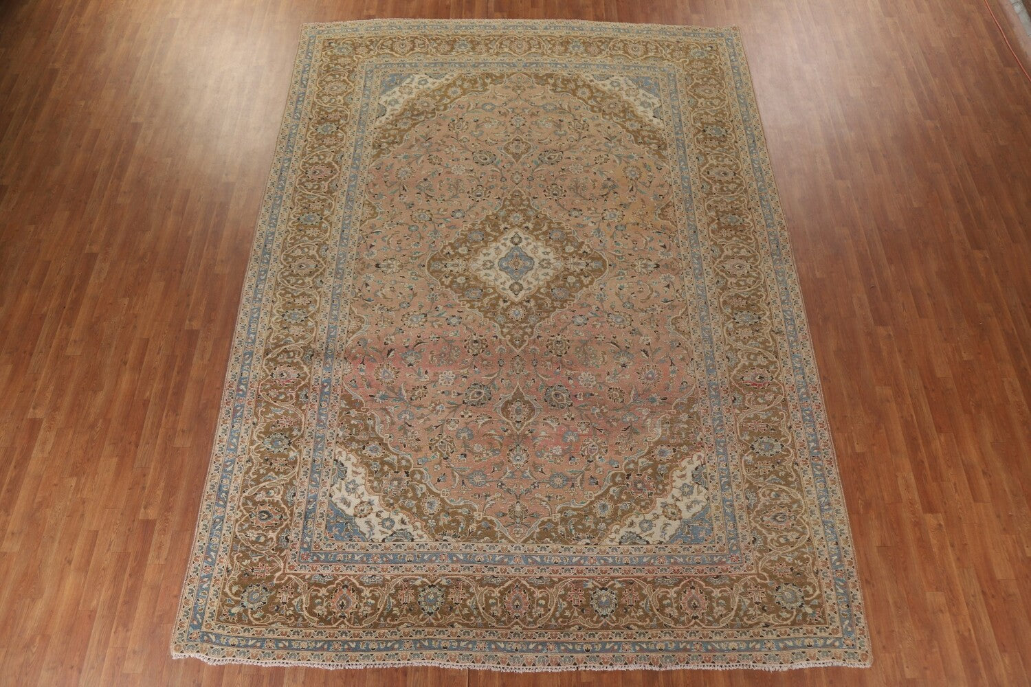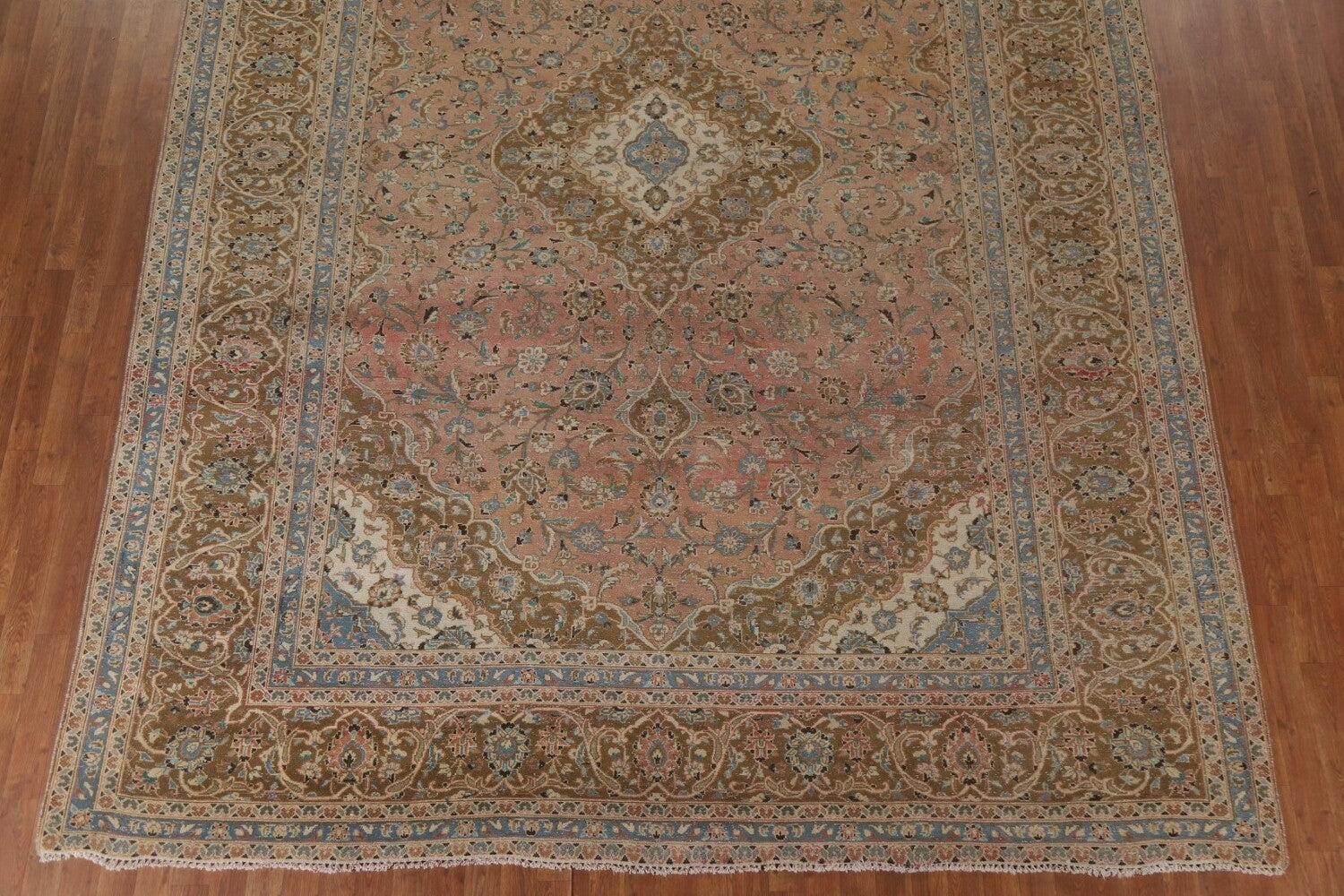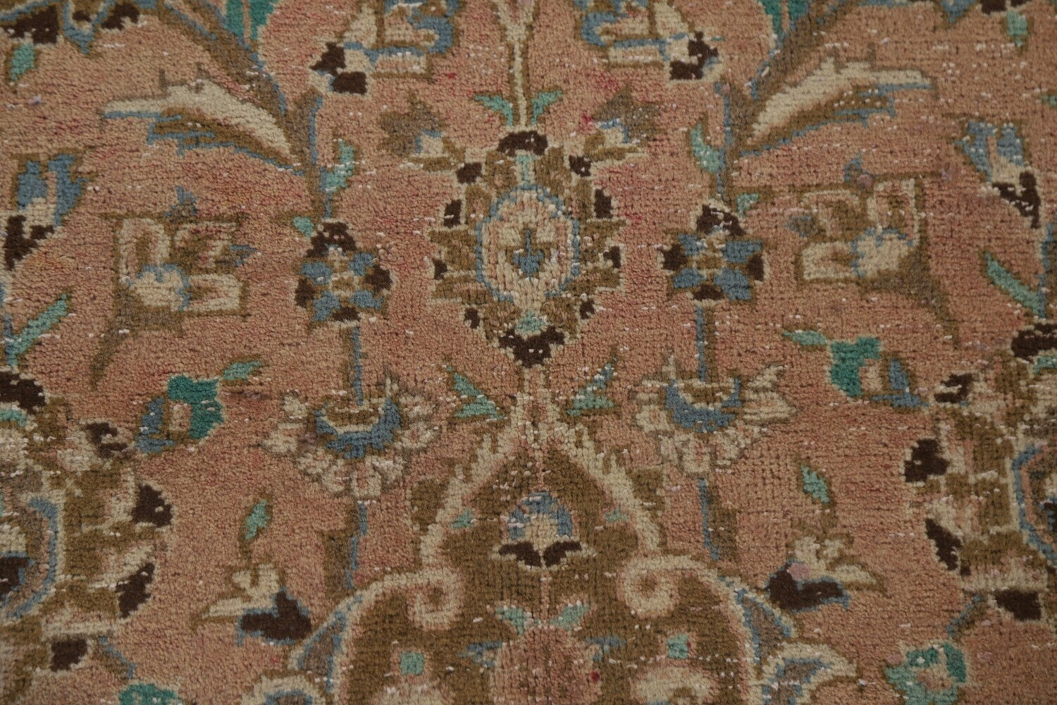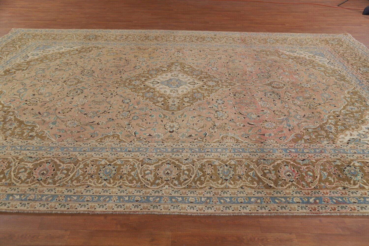 A Beautiful Genuine Persia ( Persia ) Mashad rug is Hand Knotted by skillful weavers in Persia ( Persia ) with 100% Wool Material. This rug is in Very Good (Evenly Low Pile) condition. dimensions are 13' 3'' X 9' 7'' in foot and 404 X 292 in centimeter. the primary color is Pink.