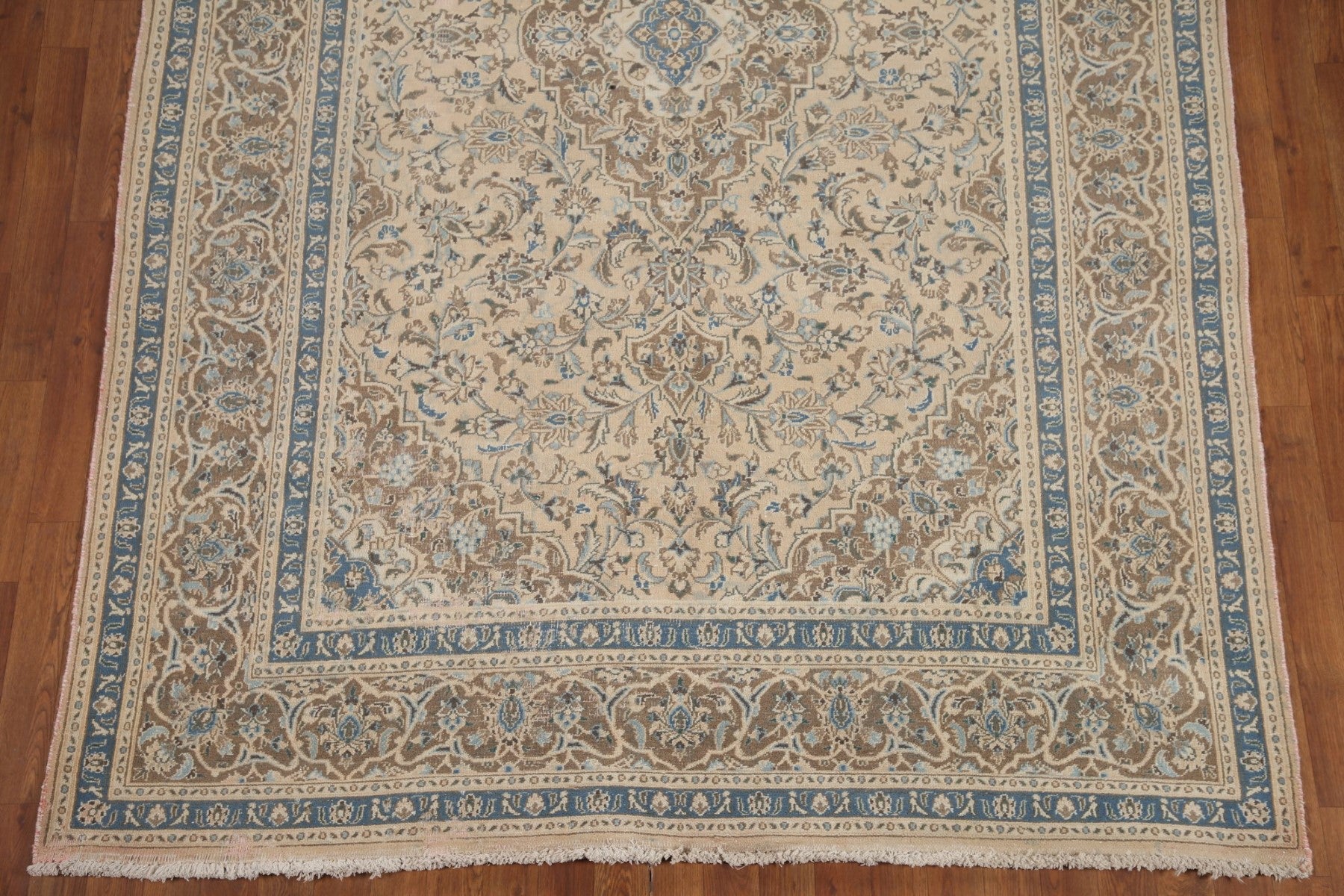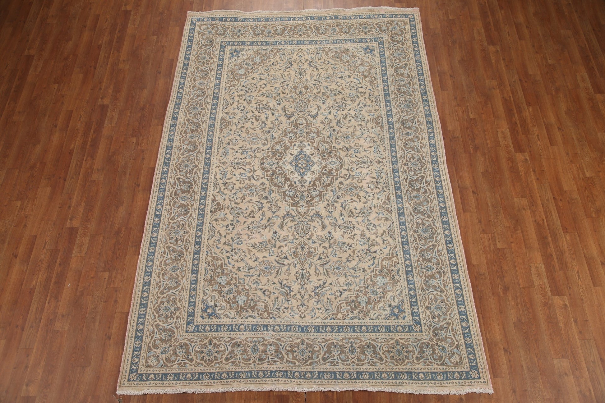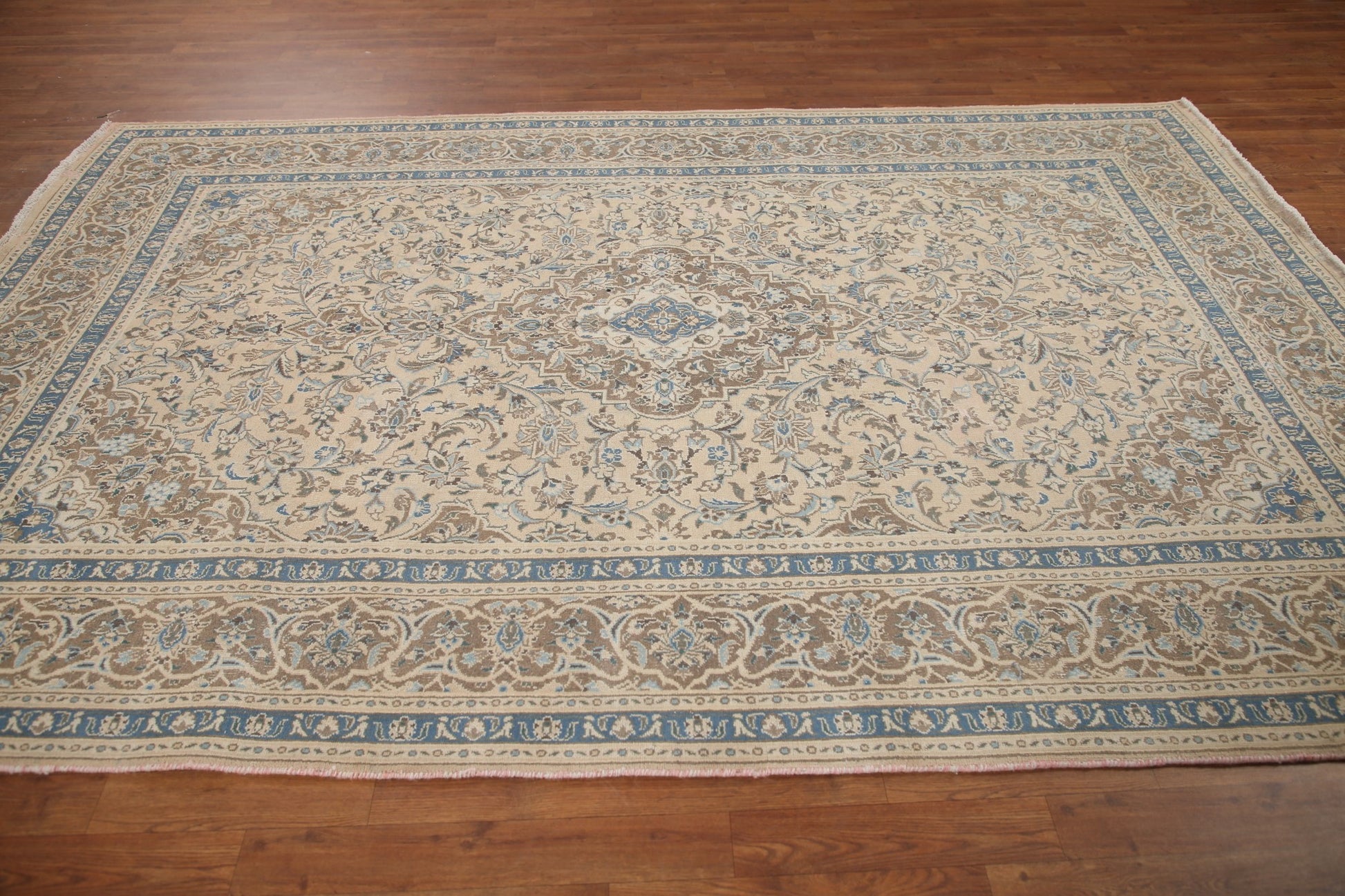 A Beautiful Genuine Persia ( Persia ) Mashad rug is Hand Knotted by skillful weavers in Persia ( Persia ) with 100% Wool Material. This rug is in Very Good (Evenly Low Pile) condition. dimensions are 9' 7'' X 6' 6'' in foot and 292 X 198 in centimeter. the primary color is Peach.