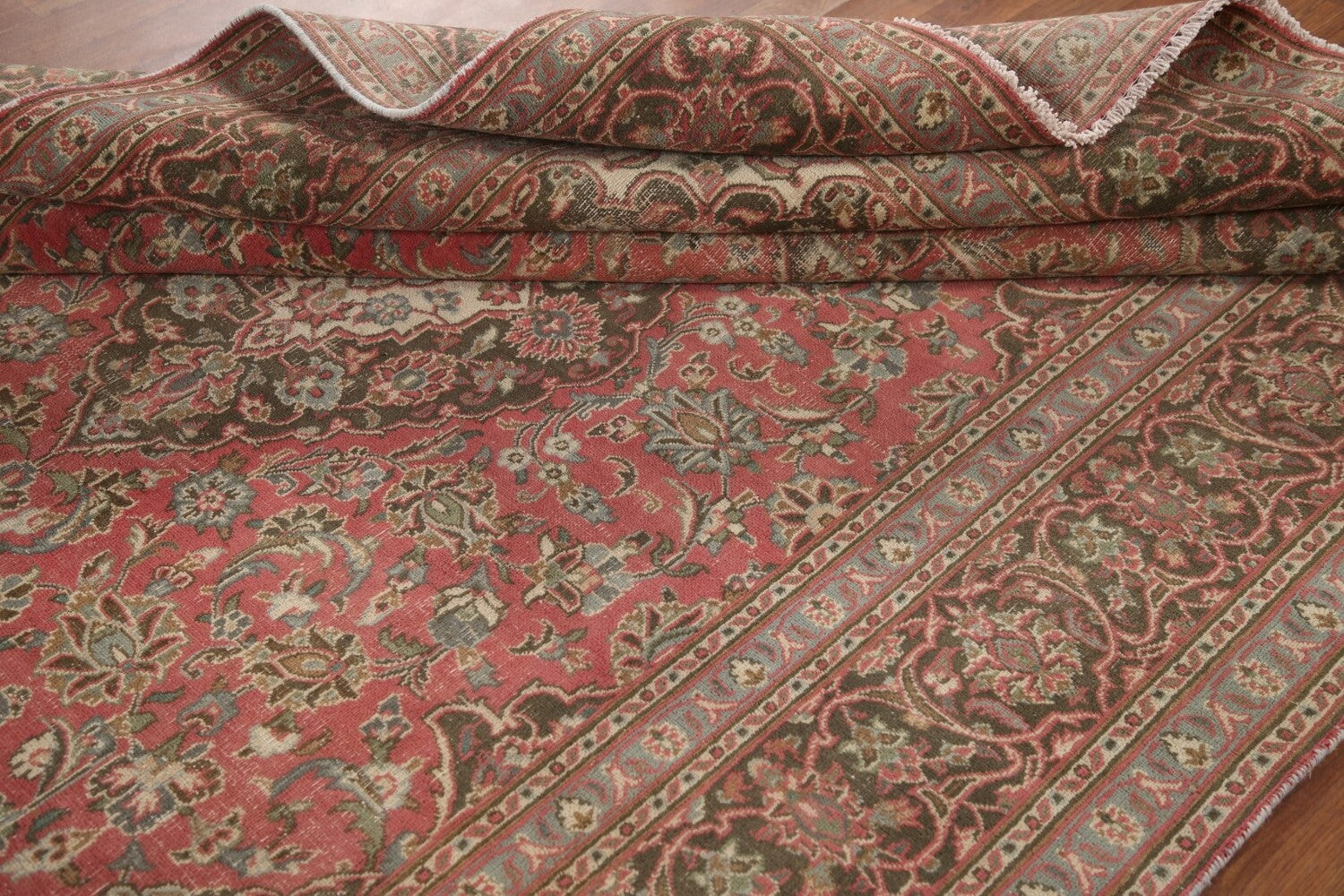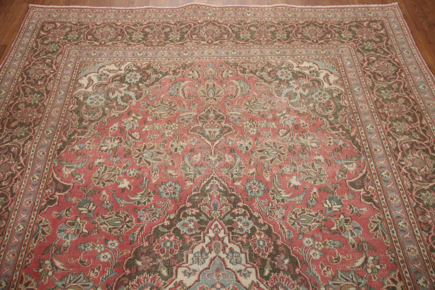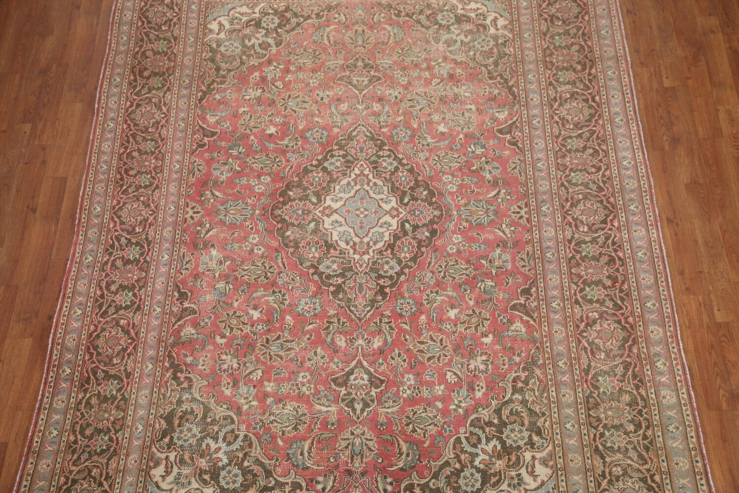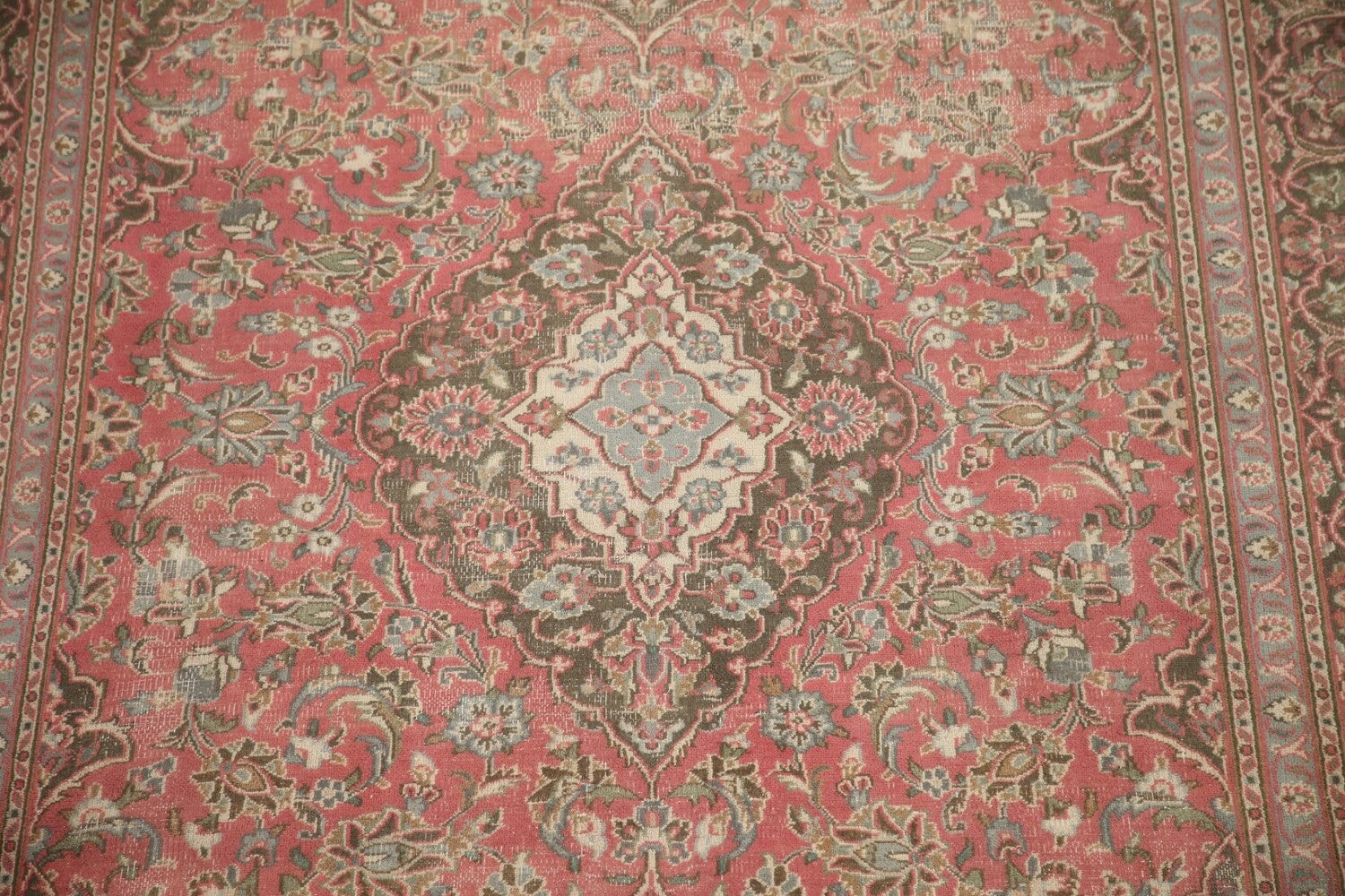 A Beautiful Genuine Persia ( Persia ) Mashad rug is Hand Knotted by skillful weavers in Persia ( Persia ) with 100% Wool Material. This rug is in Good (Low Pile-Worn) condition. dimensions are 9' 7'' X 6' 7'' in foot and 292 X 201 in centimeter. the primary color is Pink.