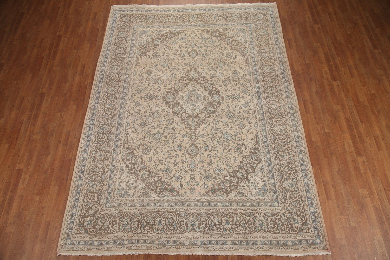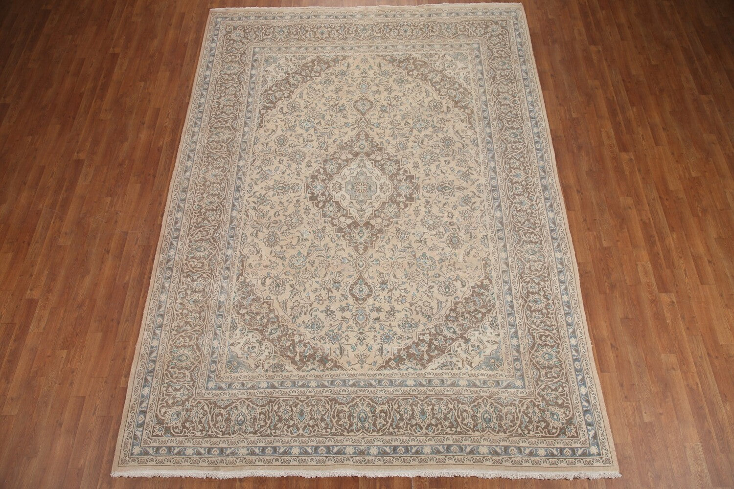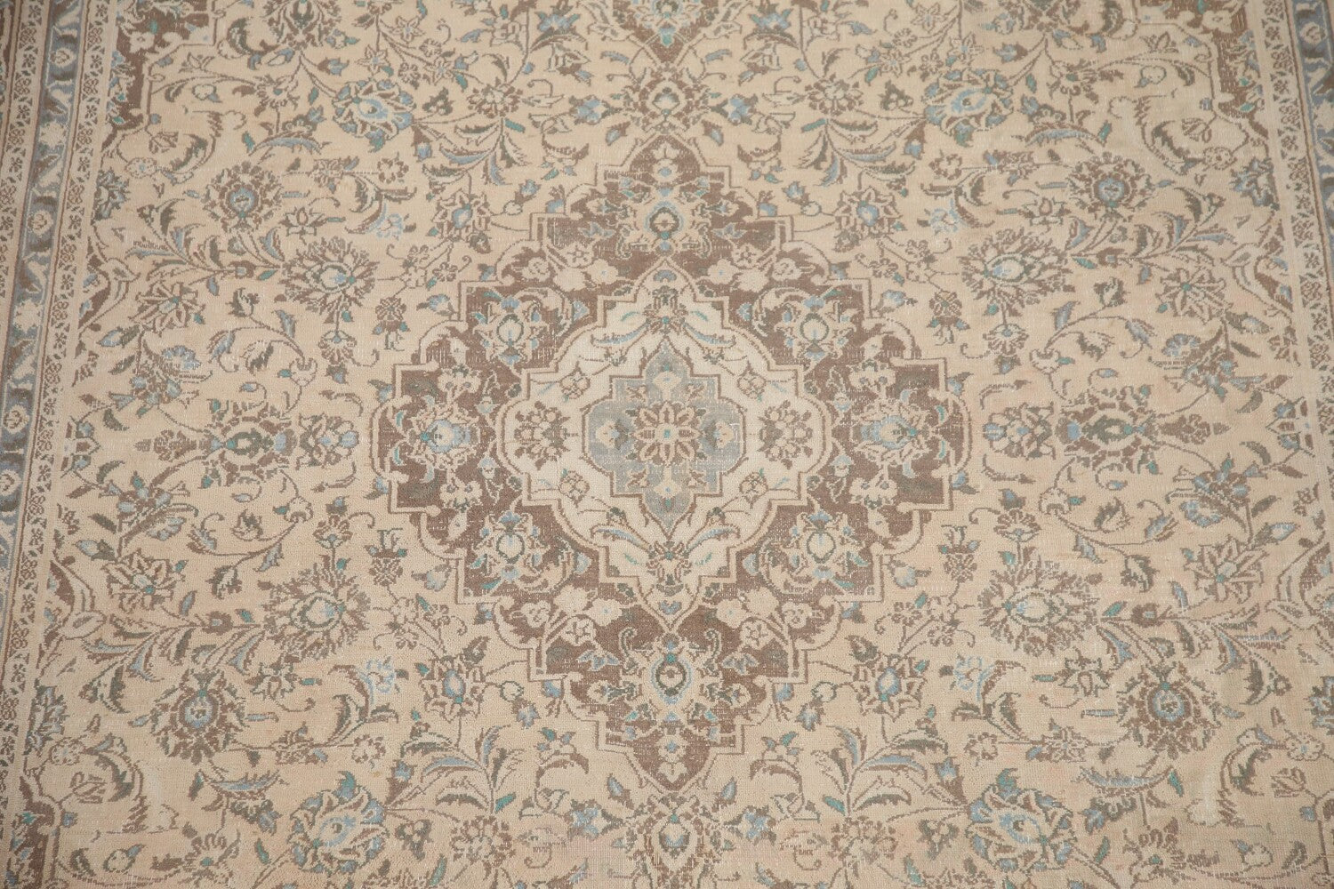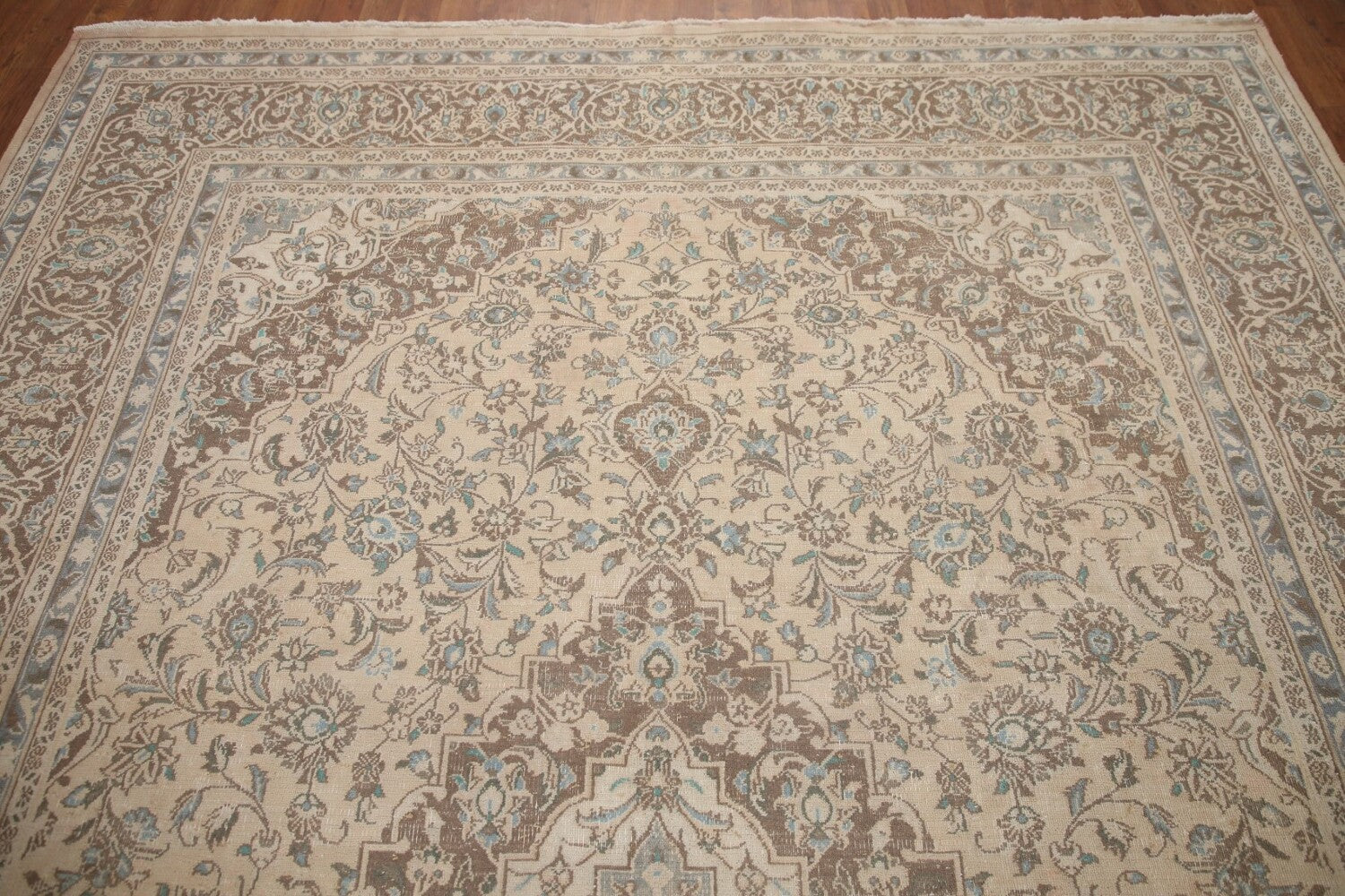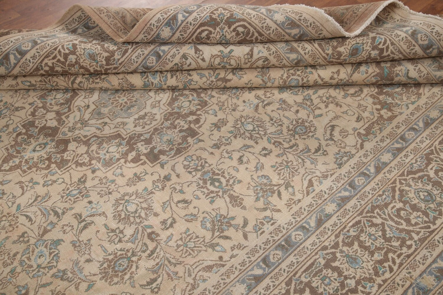 A Beautiful Genuine Persia ( Persia ) Mashad rug is Hand Knotted by skillful weavers in Persia ( Persia ) with 100% Wool Material. This rug is in Very Good (Evenly Low Pile) condition. dimensions are 11' 1'' X 8' 1'' in foot and 338 X 246 in centimeter. the primary color is Beige & Ivories.