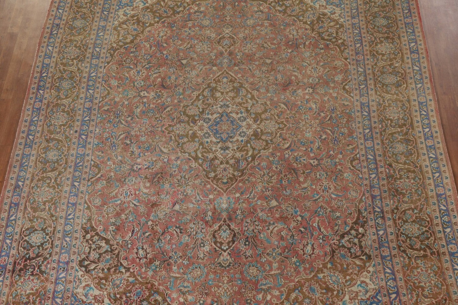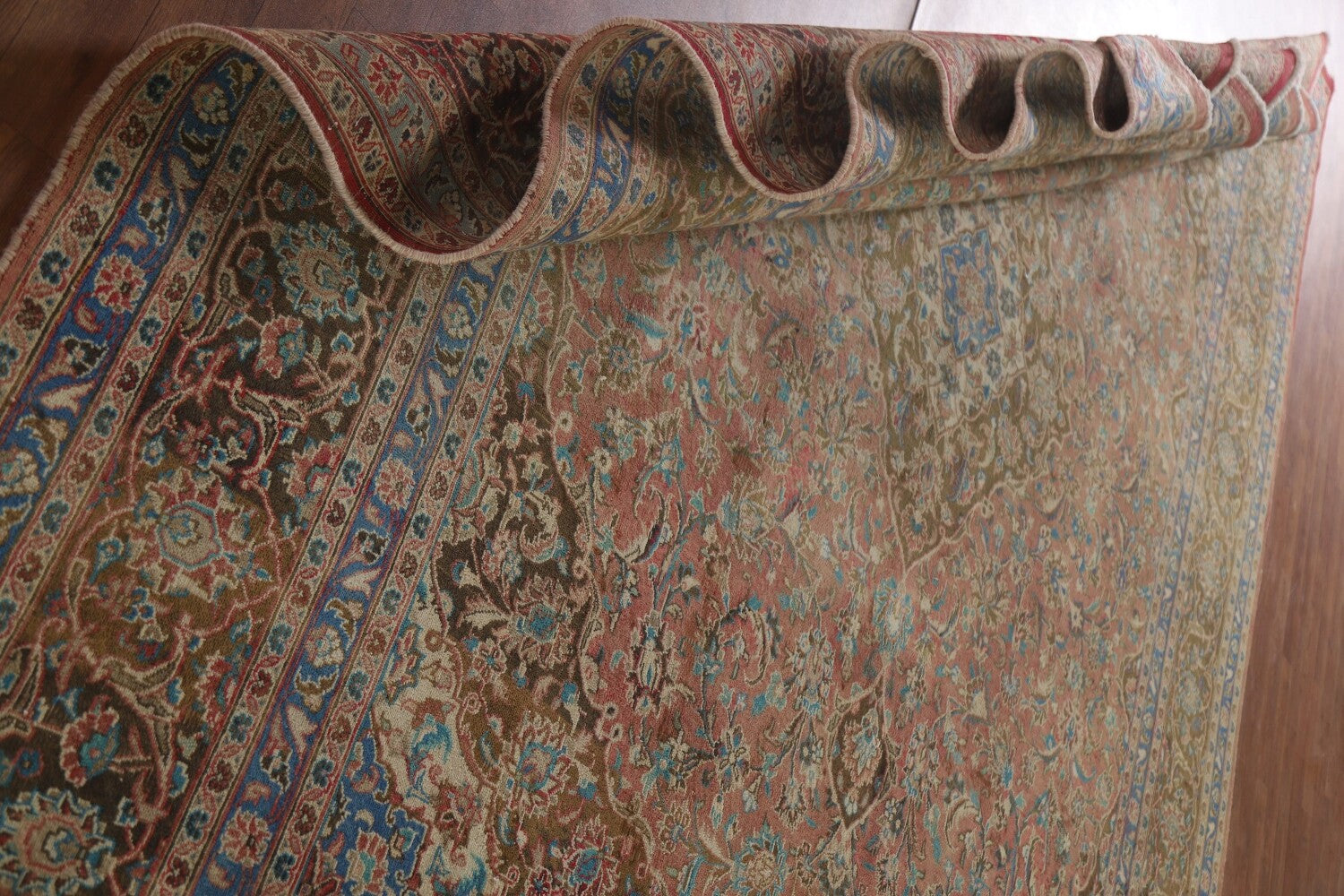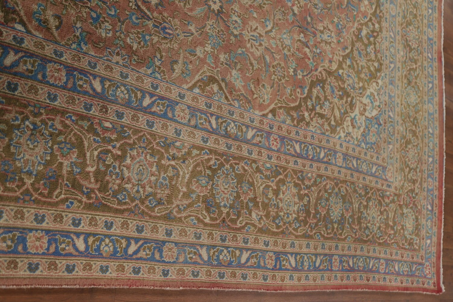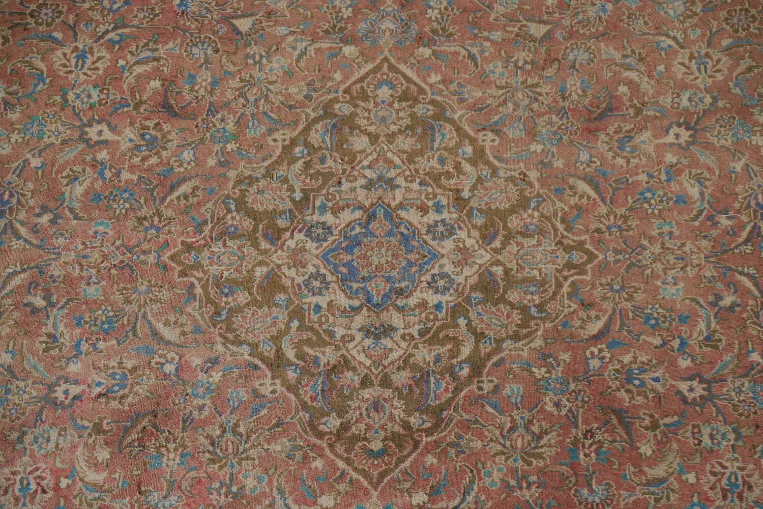 A Beautiful Genuine Persia ( Persia ) Mashad rug is Hand Knotted by skillful weavers in Persia ( Persia ) with 100% Wool Material. This rug is in Very Good (Evenly Low Pile) condition. dimensions are 12' 4'' X 9' 5'' in foot and 376 X 287 in centimeter. the primary color is Pink.