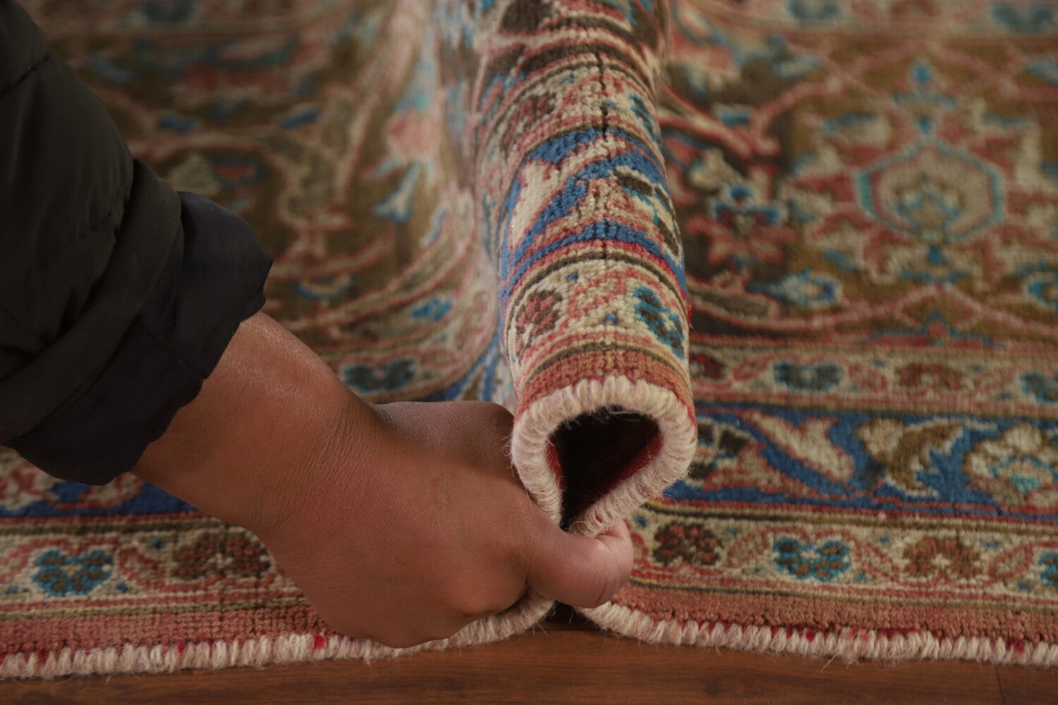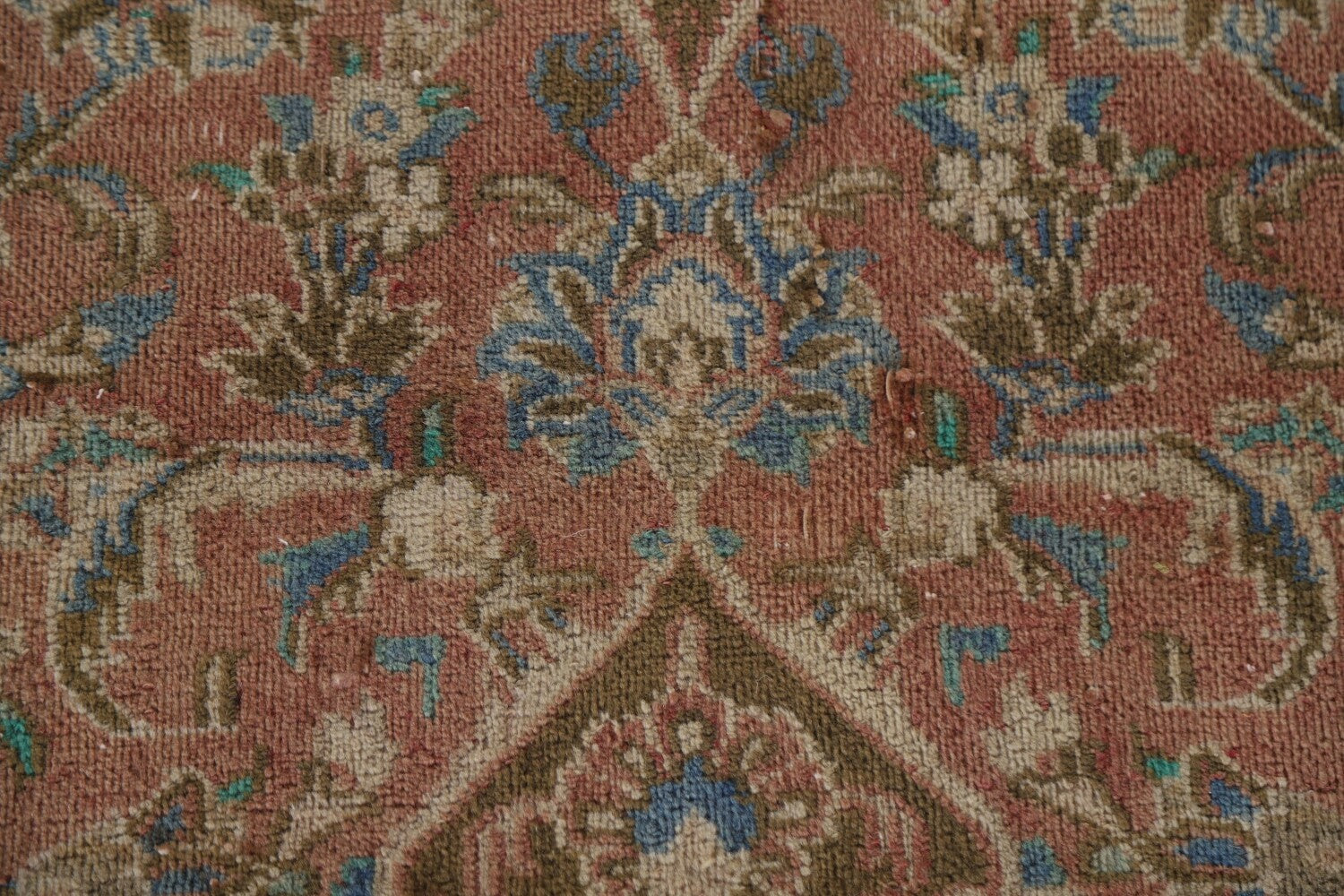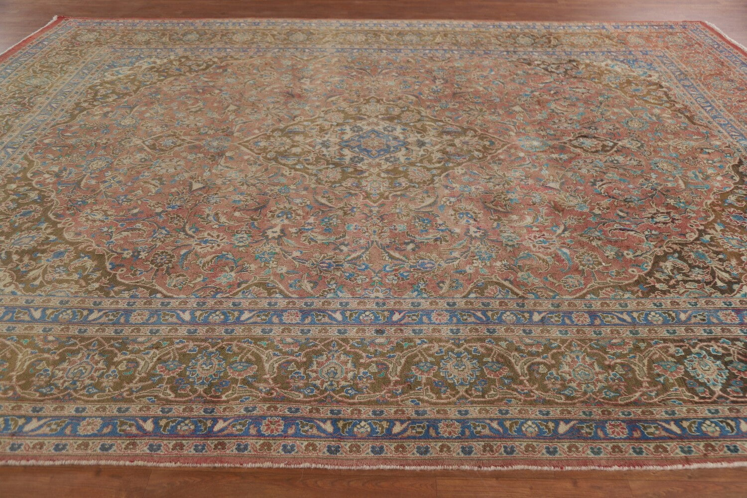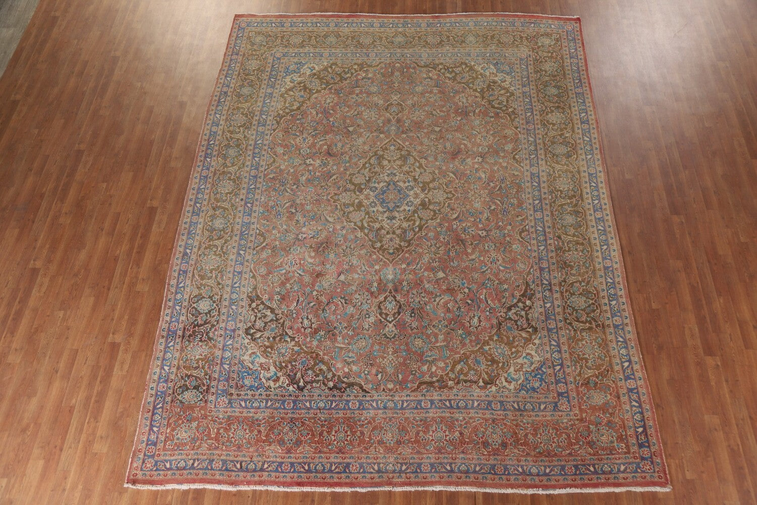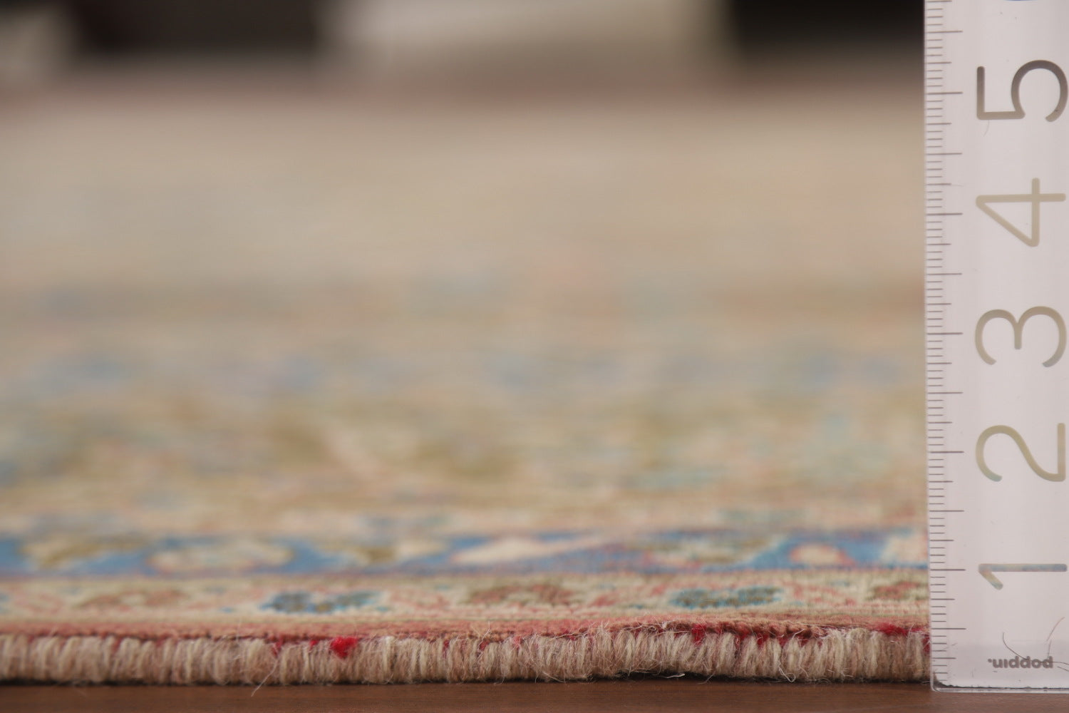 A Beautiful Genuine Persia ( Persia ) Mashad rug is Hand Knotted by skillful weavers in Persia ( Persia ) with 100% Wool Material. This rug is in Very Good (Evenly Low Pile) condition. dimensions are 12' 4'' X 9' 5'' in foot and 376 X 287 in centimeter. the primary color is Pink.