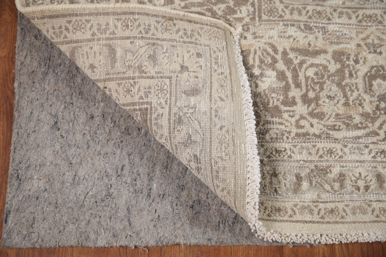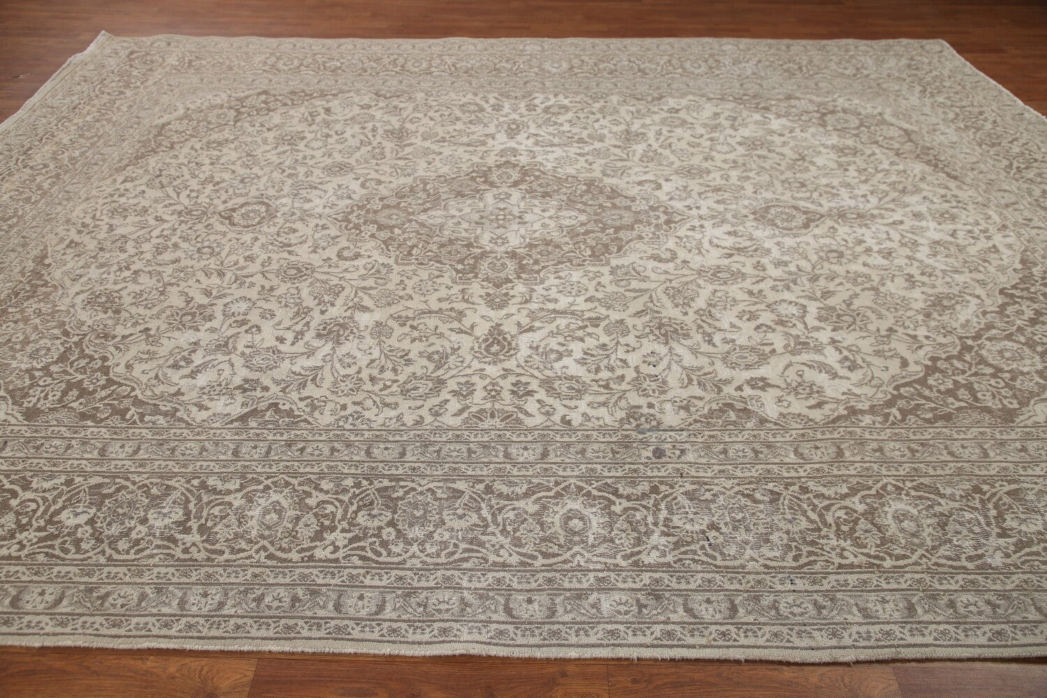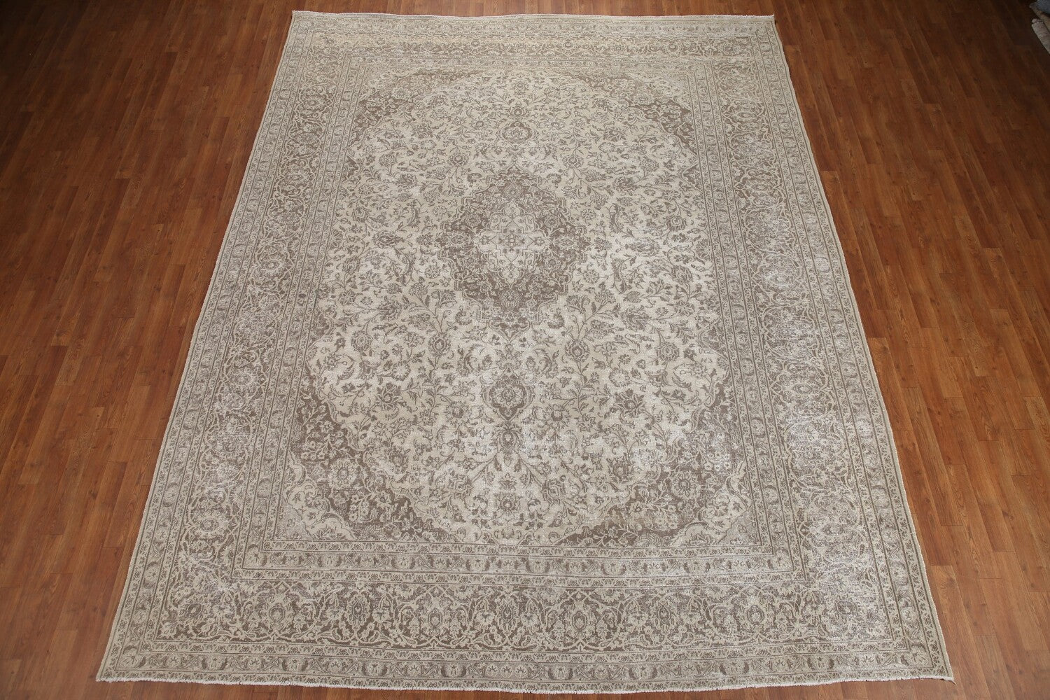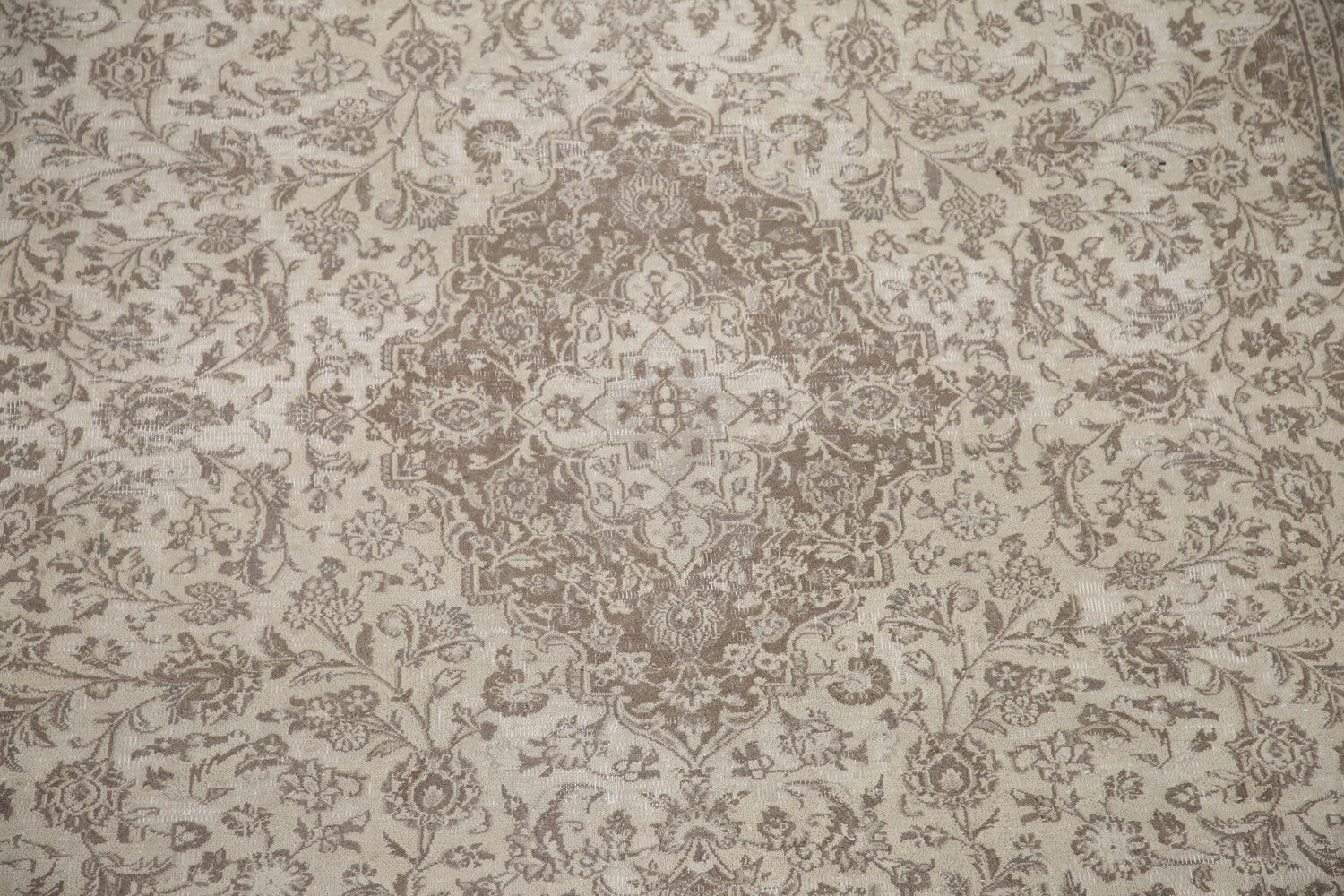 A Beautiful Genuine Persia ( Persia ) Mashad rug is Hand Knotted by skillful weavers in Persia ( Persia ) with 100% Wool Material. This rug is in Very Good (Evenly Low Pile-Repair) condition. dimensions are 12' 1'' X 9' 5'' in foot and 368 X 287 in centimeter. the primary color is Beige & Ivories.