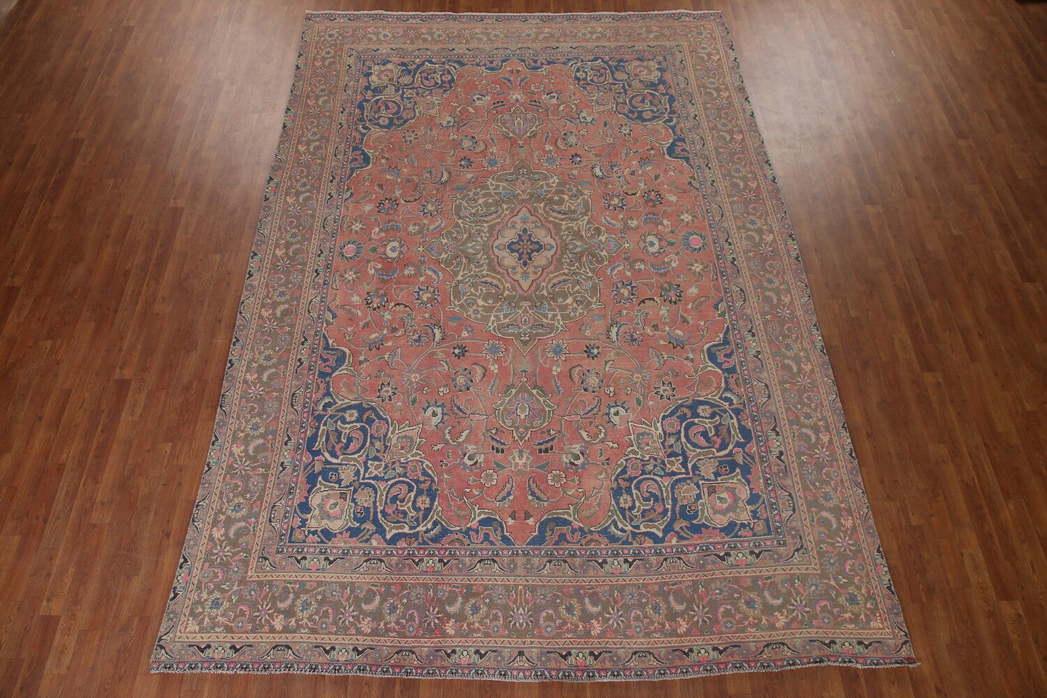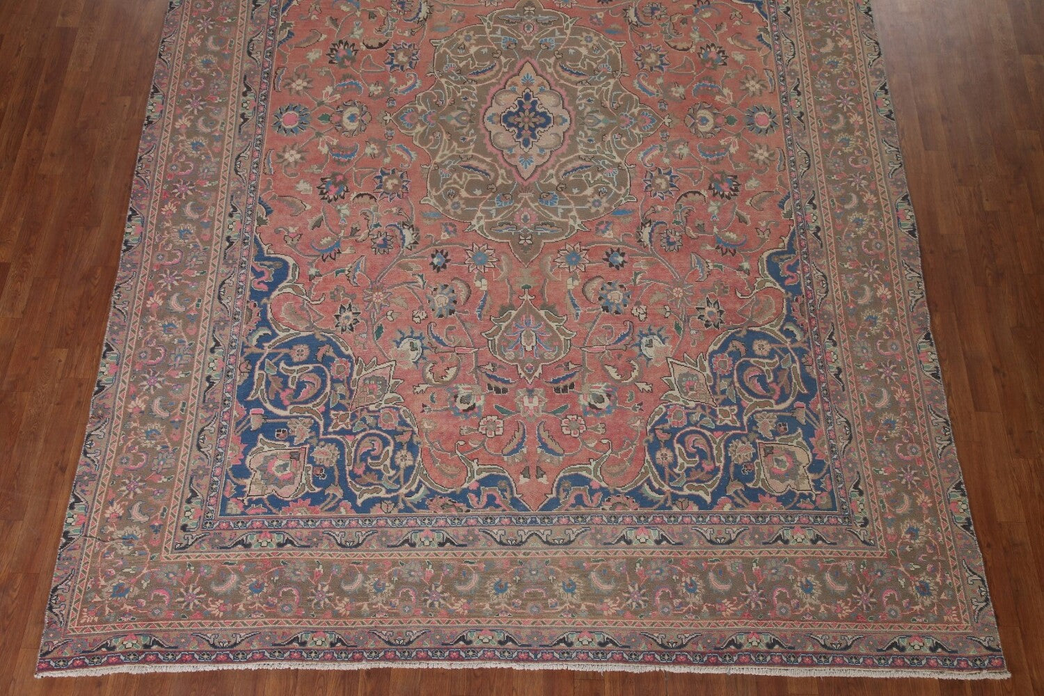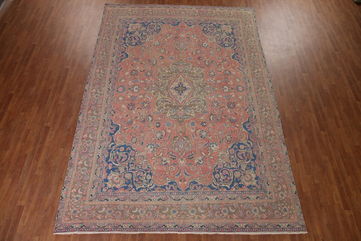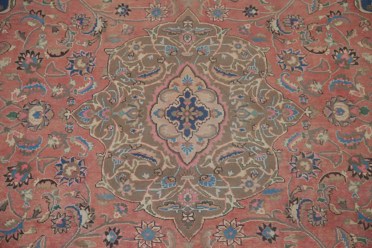 A Beautiful Genuine Persia ( Persia ) Mashad rug is Hand Knotted by skillful weavers in Persia ( Persia ) with 100% Wool Material. This rug is in Very Good (Evenly Low Pile) condition. dimensions are 12' 7'' X 8' 10'' in foot and 384 X 269 in centimeter. the primary color is Pink.