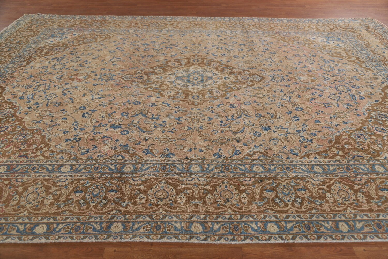 A Beautiful Genuine Persia ( Persia ) Mashad rug is Hand Knotted by skillful weavers in Persia ( Persia ) with 100% Wool Material. This rug is in Very Good (Evenly Low Pile-Abrash) condition. dimensions are 12' 6'' X 9' 2'' in foot and 381 X 279 in centimeter. the primary color is Coral.