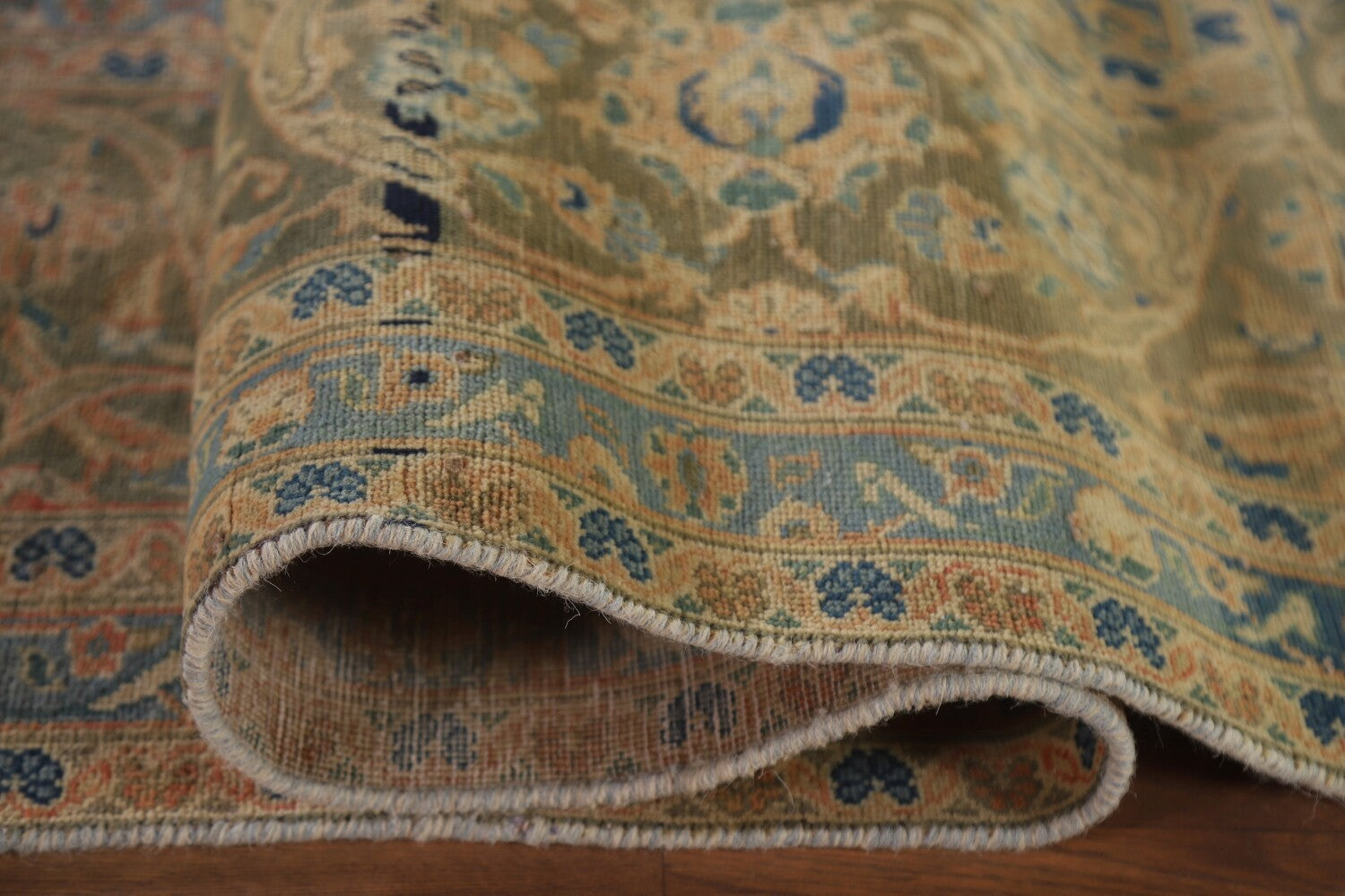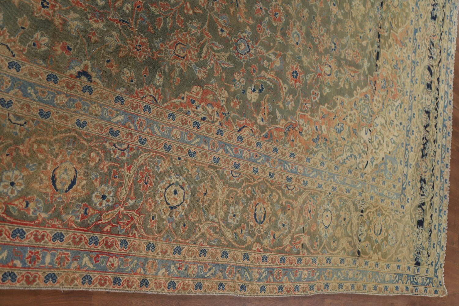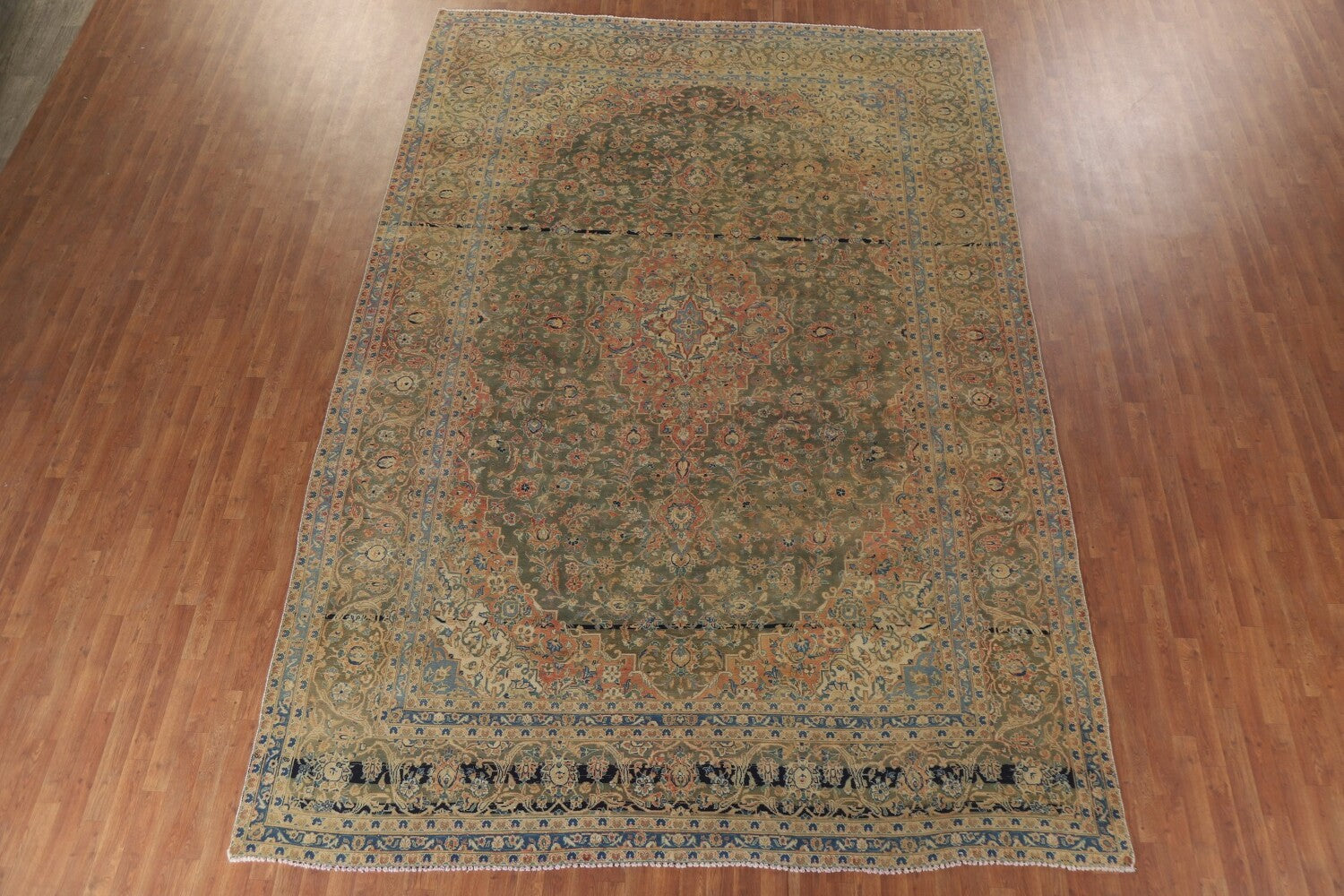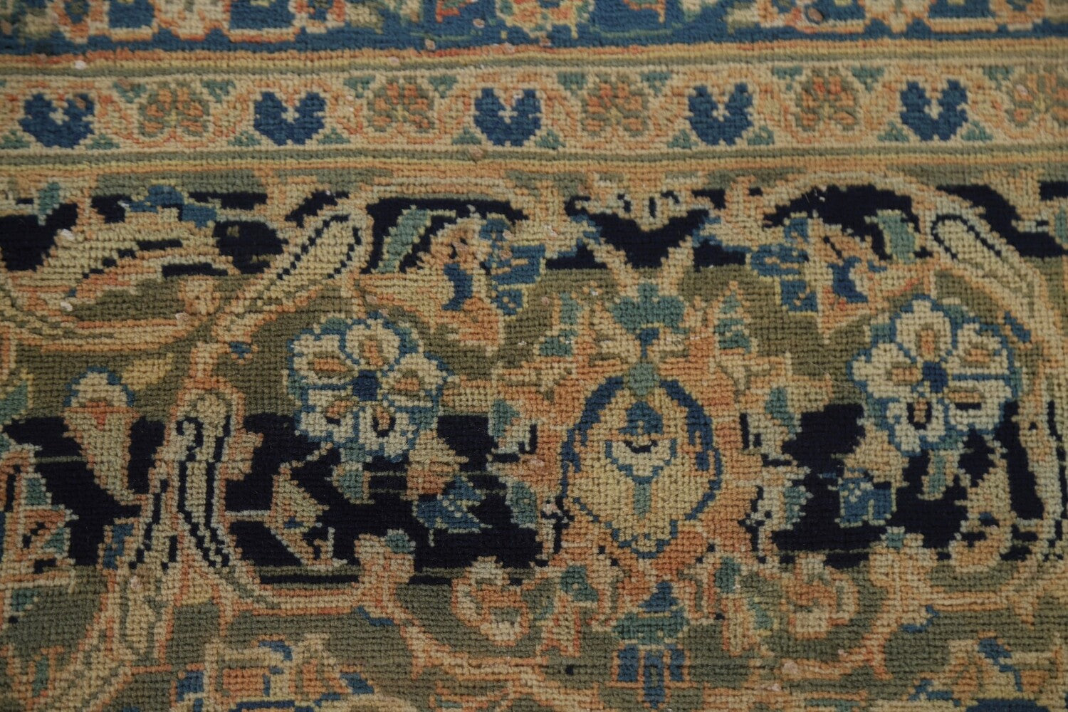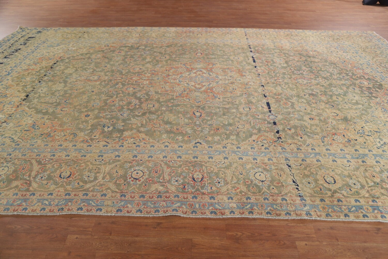 A Beautiful Genuine Persia ( Persia ) Mashad rug is Hand Knotted by skillful weavers in Persia ( Persia ) with 100% Wool Material. This rug is in Very Good (Evenly Low Pile-Abrash) condition. dimensions are 13' 7'' X 9' 4'' in foot and 414 X 284 in centimeter. the primary color is Green.