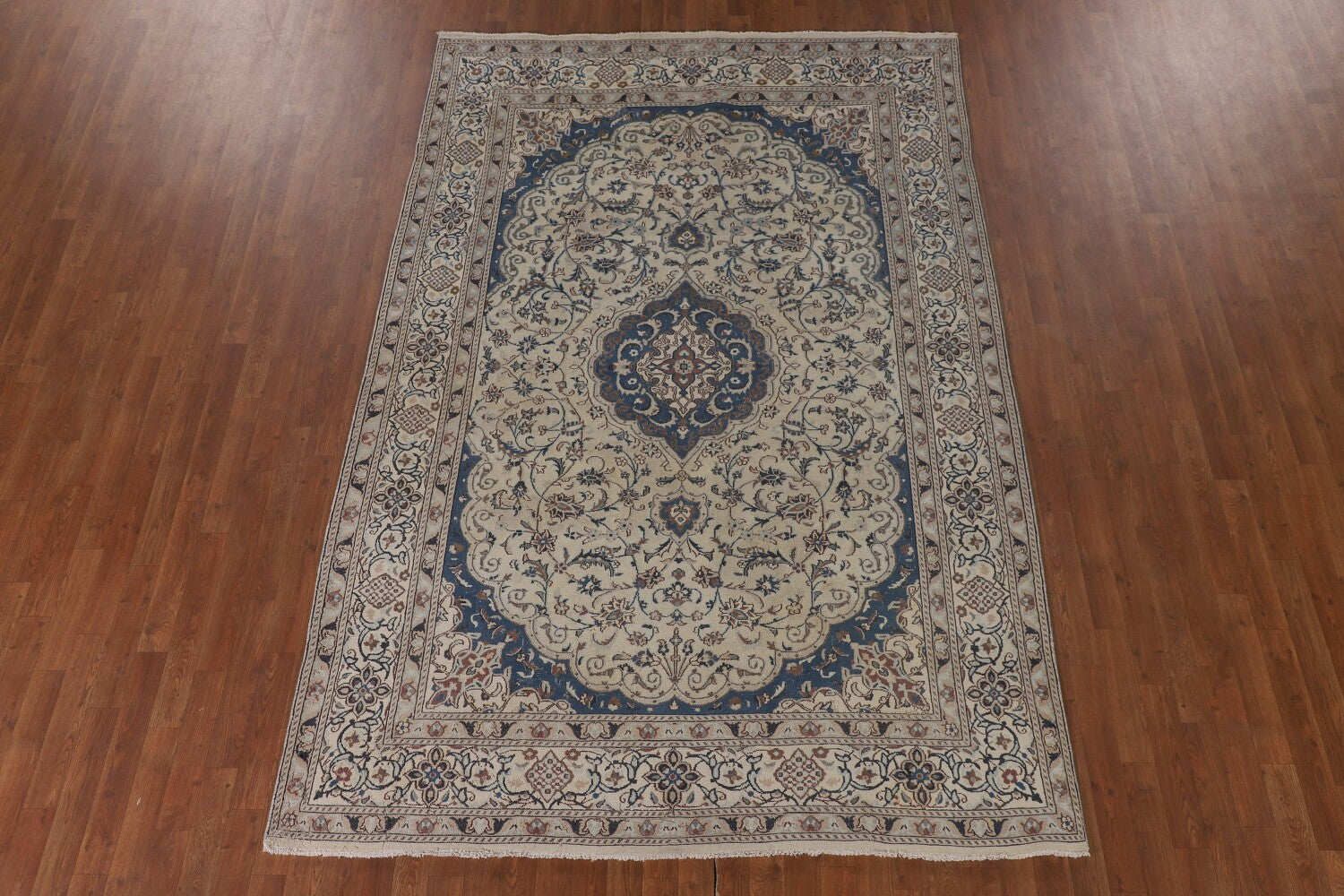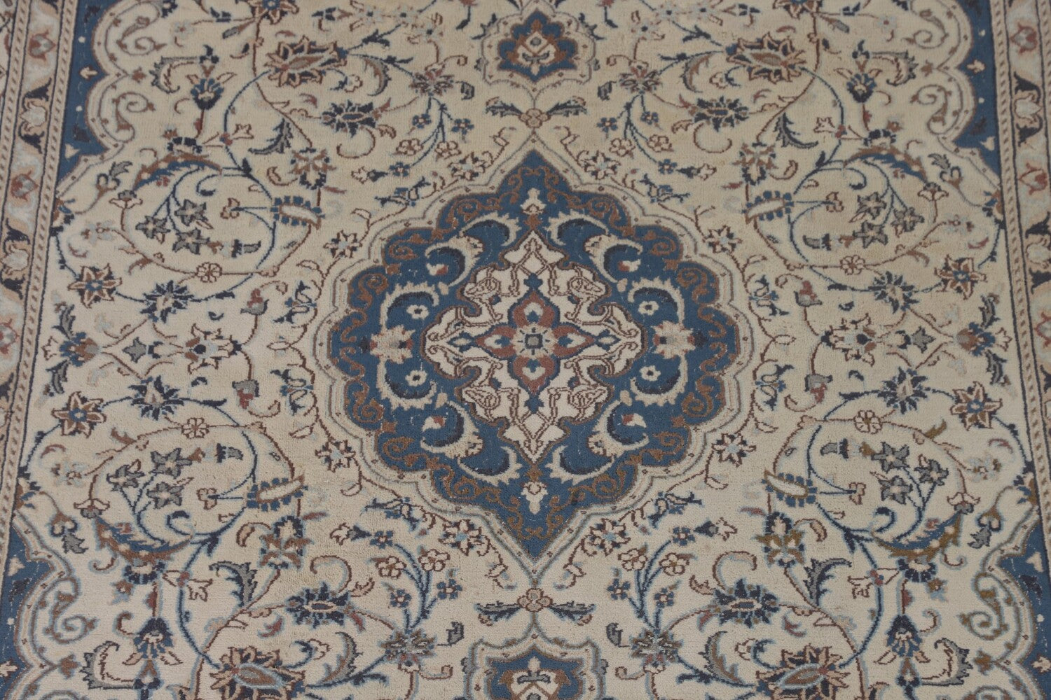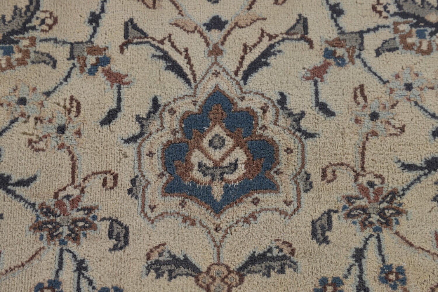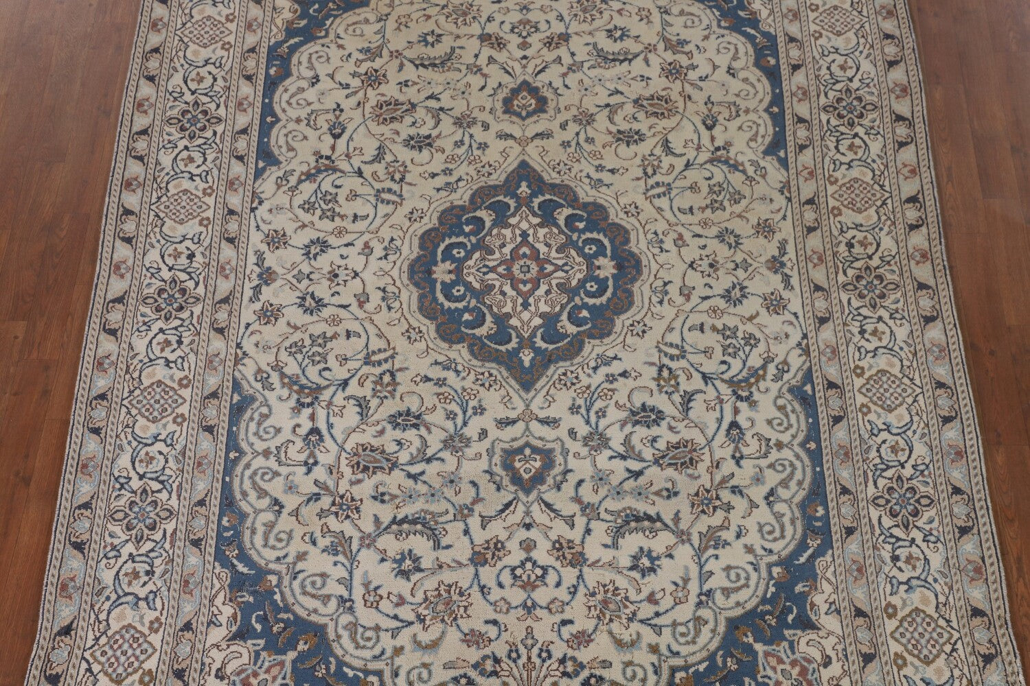 A Beautiful Genuine Persia ( Persia ) Nain rug is Hand Knotted by skillful weavers in Persia ( Persia ) with 100% Wool Material. This rug is in Very Good (Low Pile-Missing Pile) condition. dimensions are 9' 7'' X 6' 4'' in foot and 292 X 193 in centimeter. the primary color is Beige & Ivories.
