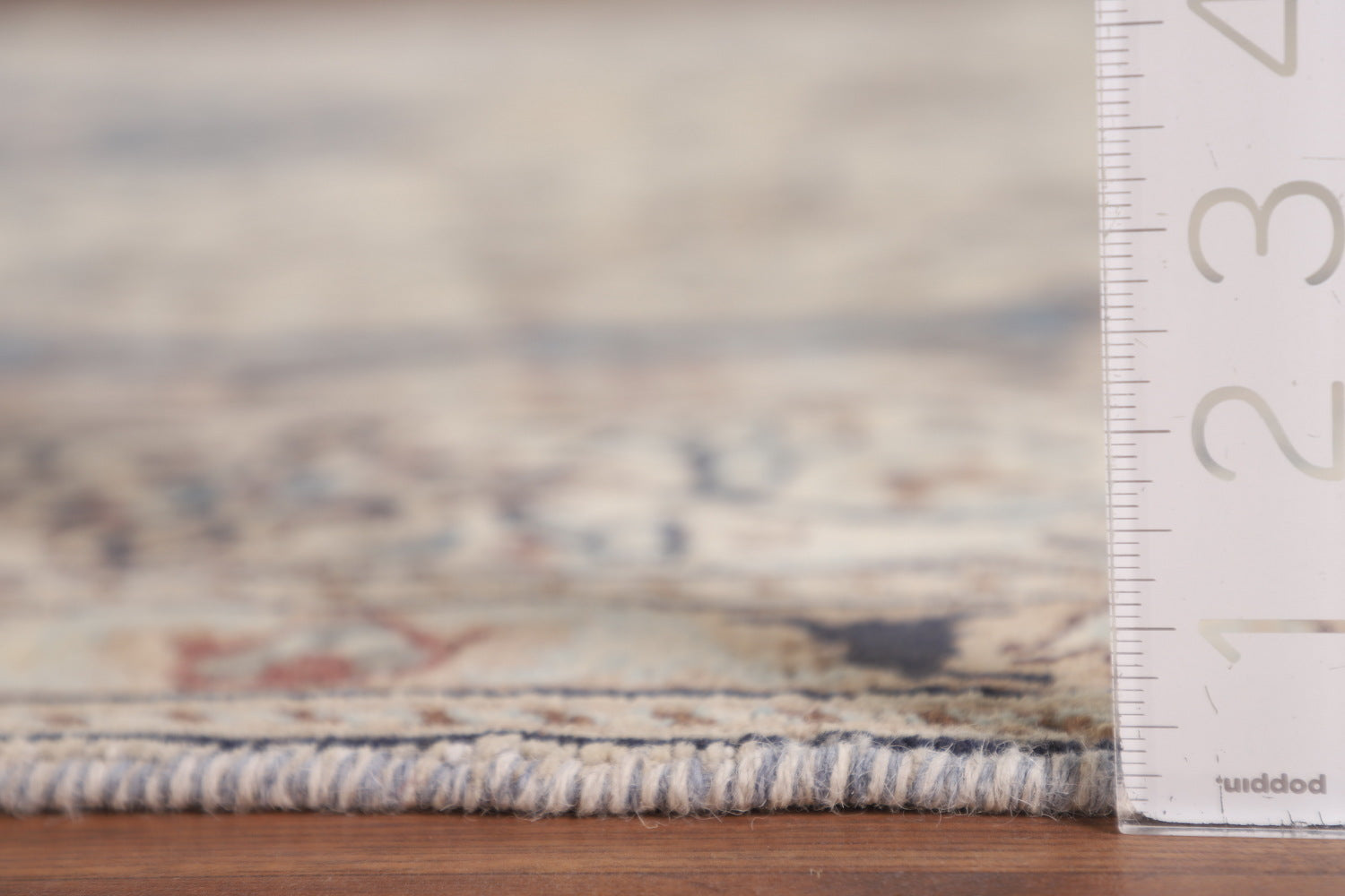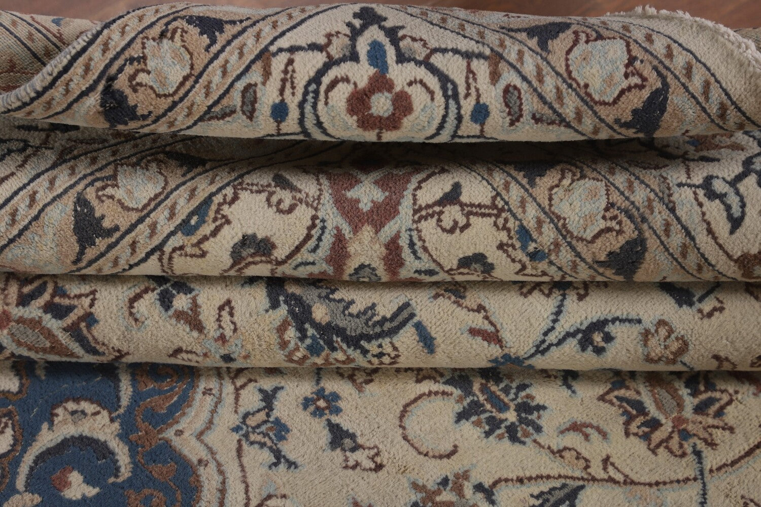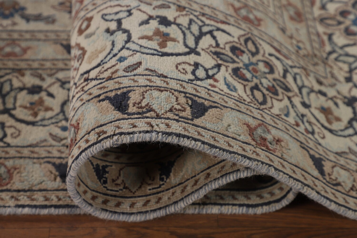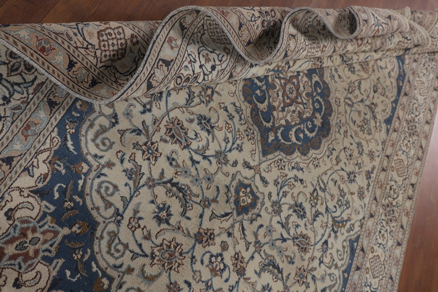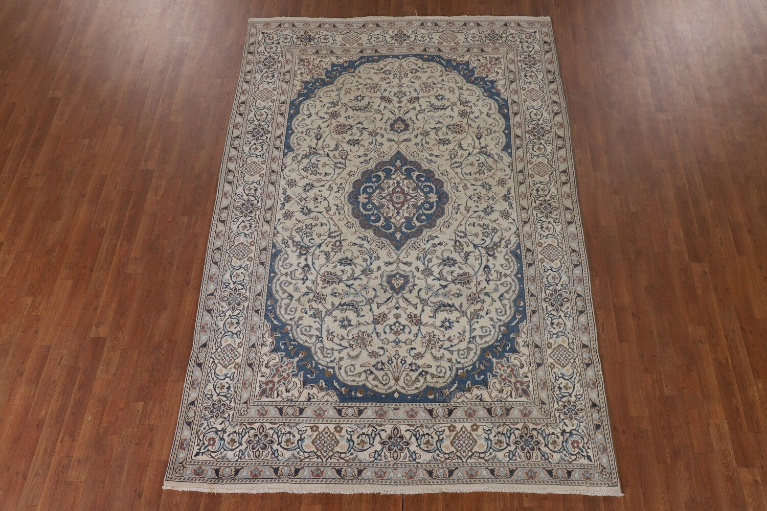 A Beautiful Genuine Persia ( Persia ) Nain rug is Hand Knotted by skillful weavers in Persia ( Persia ) with 100% Wool Material. This rug is in Very Good (Low Pile-Missing Pile) condition. dimensions are 9' 7'' X 6' 4'' in foot and 292 X 193 in centimeter. the primary color is Beige & Ivories.