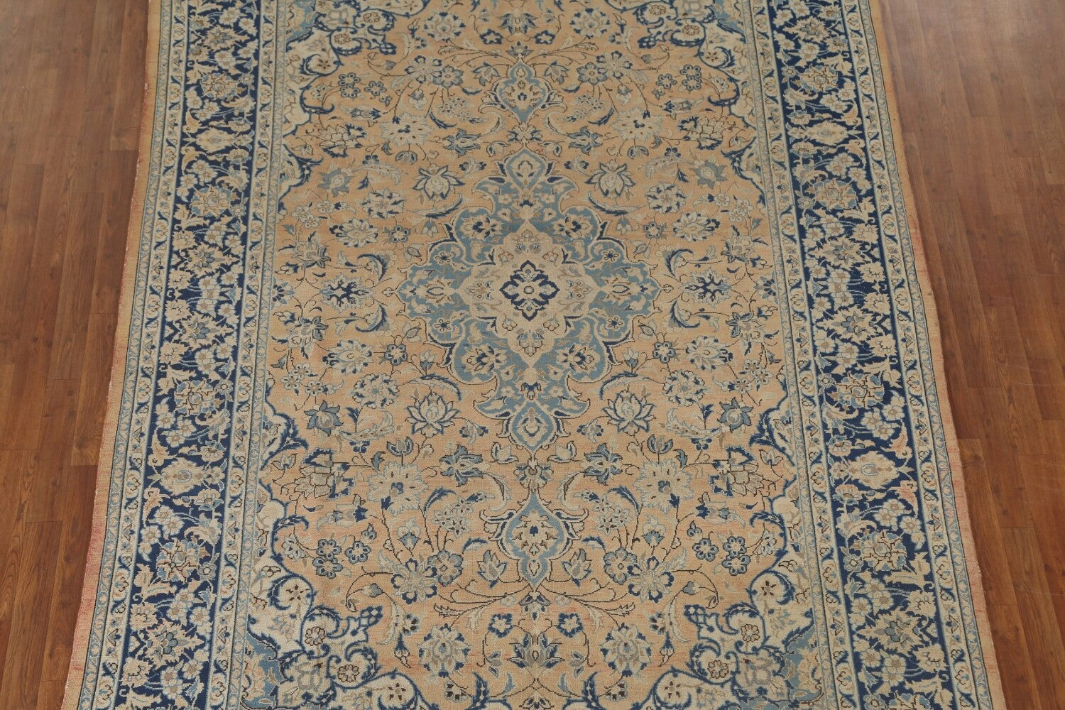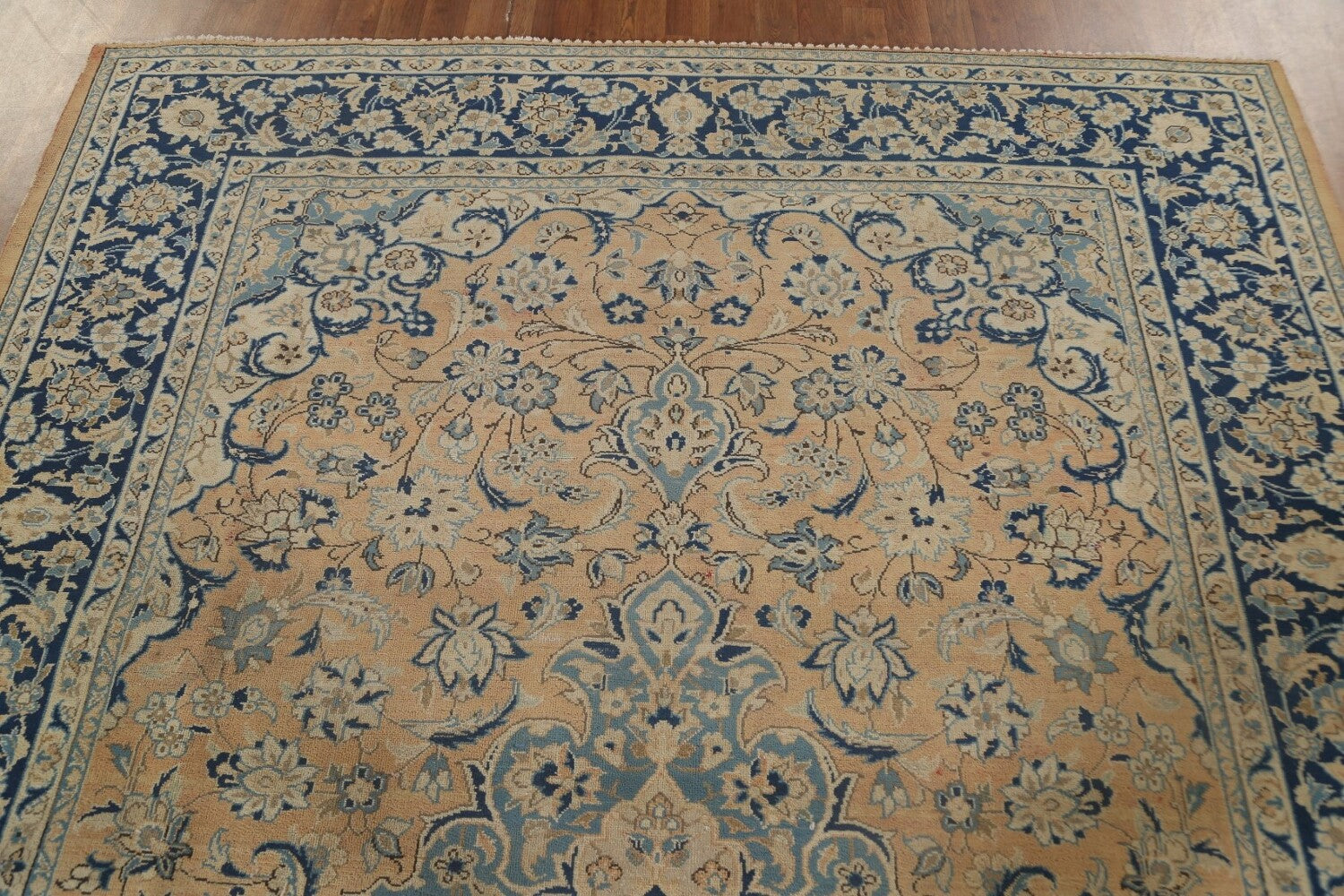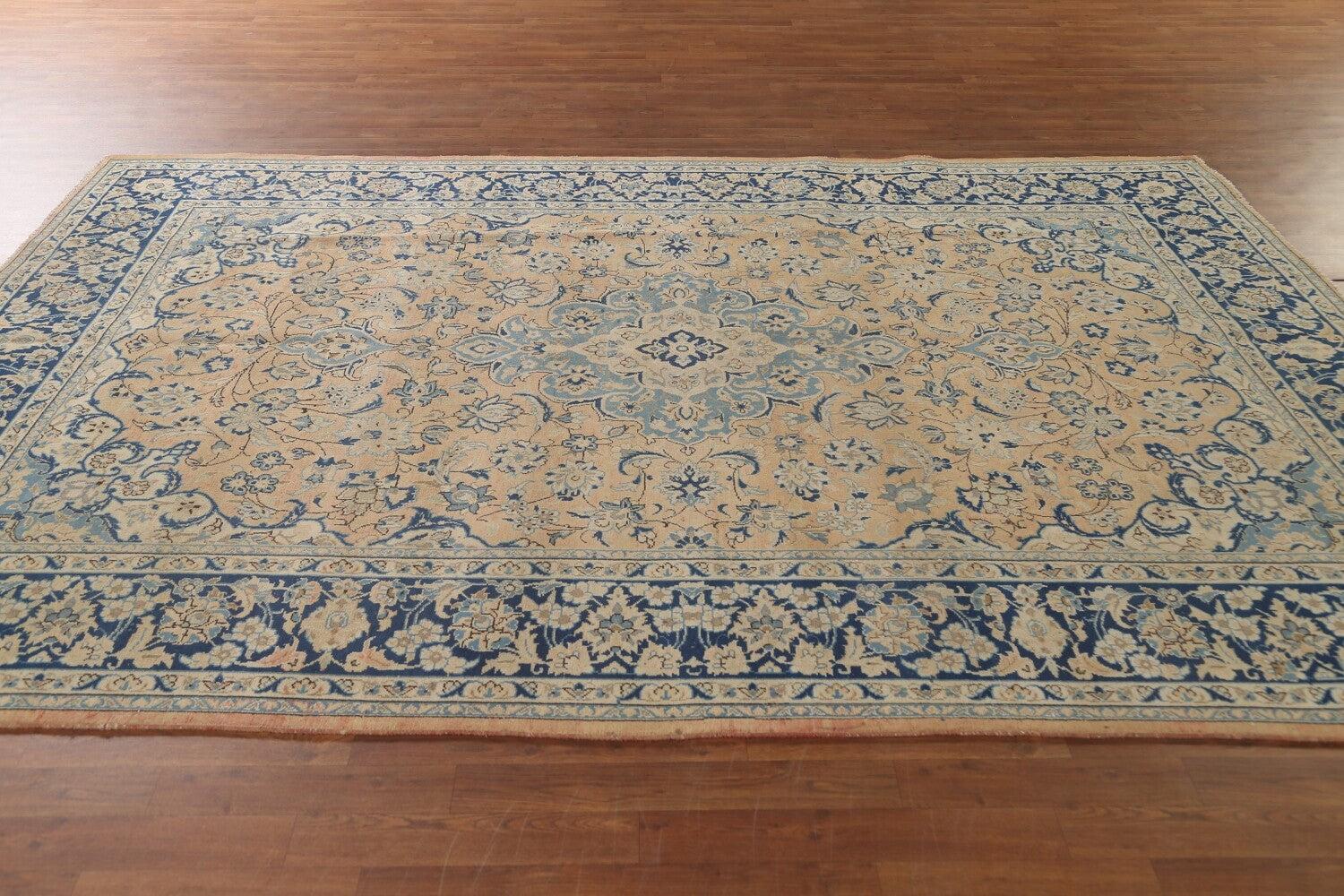 A Beautiful Genuine Persia ( Persia ) Najafabad rug is Hand Knotted by skillful weavers in Persia ( Persia ) with 100% Wool Material. This rug is in Very Good (Evenly Low Pile) condition. dimensions are 10' 3'' X 7' 1'' in foot and 312 X 216 in centimeter. the primary color is Peach.