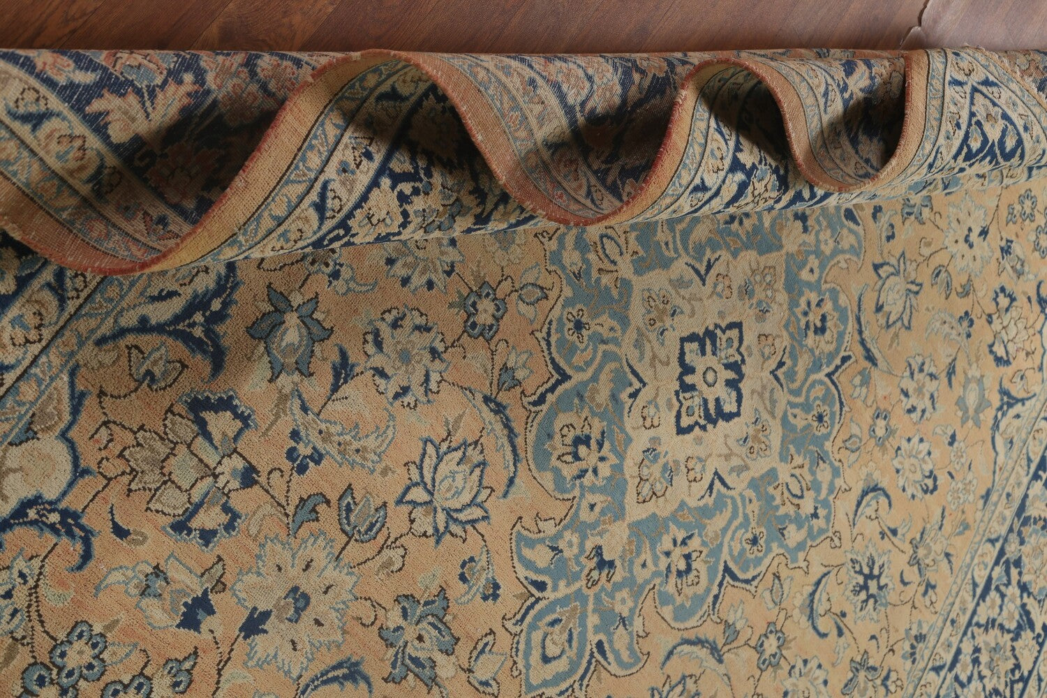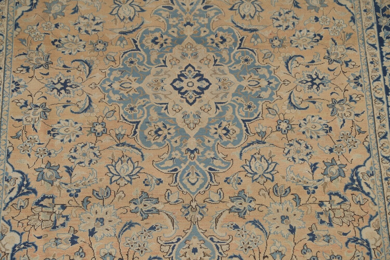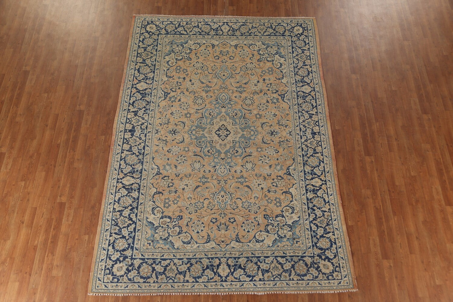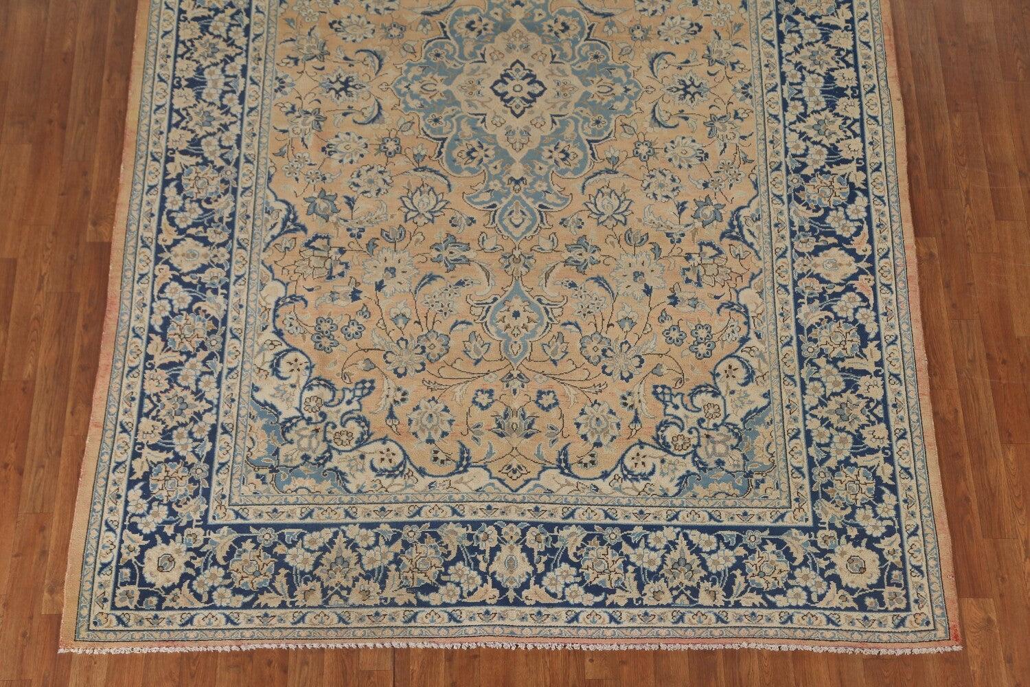 A Beautiful Genuine Persia ( Persia ) Najafabad rug is Hand Knotted by skillful weavers in Persia ( Persia ) with 100% Wool Material. This rug is in Very Good (Evenly Low Pile) condition. dimensions are 10' 3'' X 7' 1'' in foot and 312 X 216 in centimeter. the primary color is Peach.