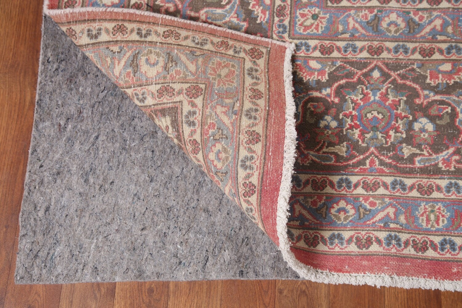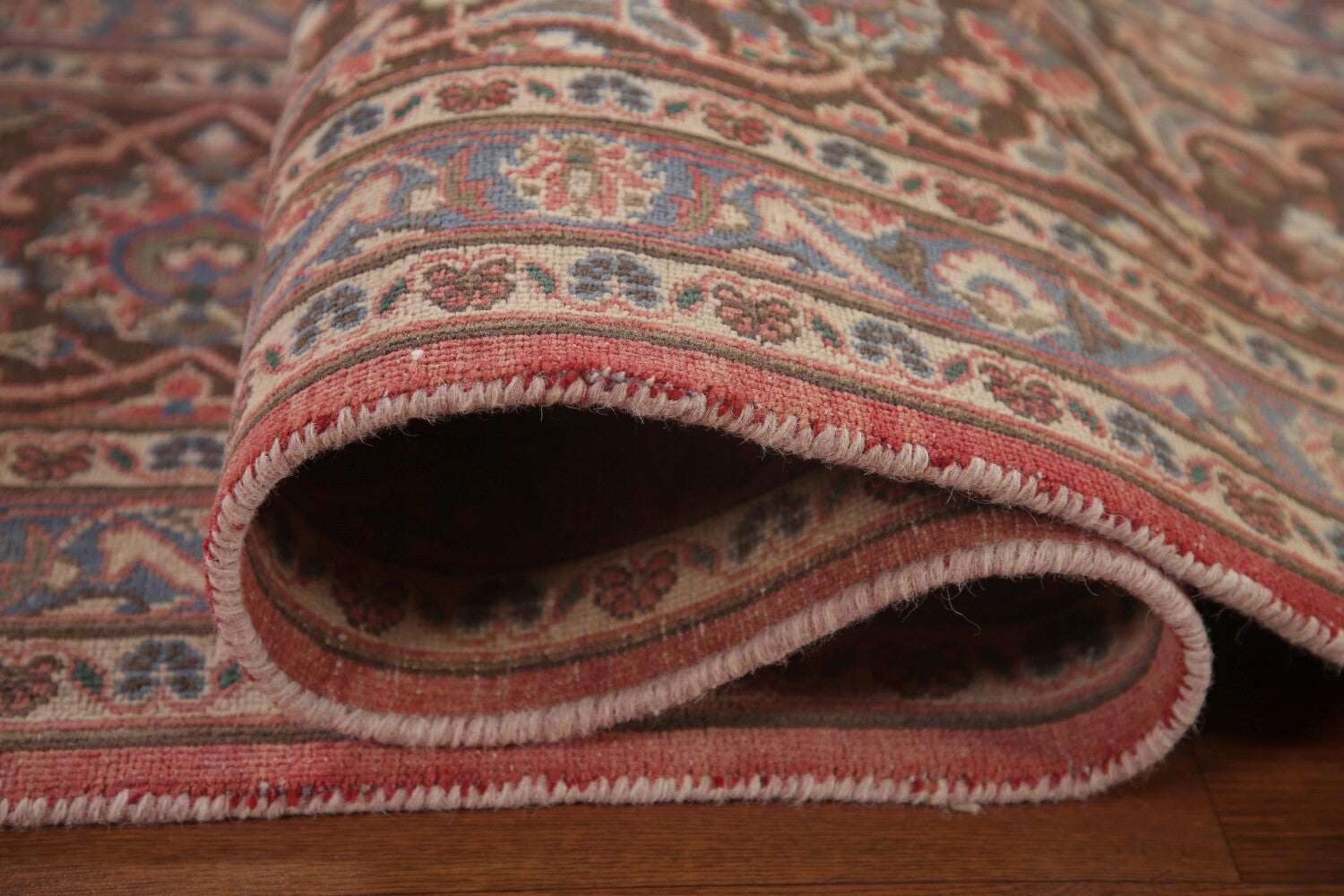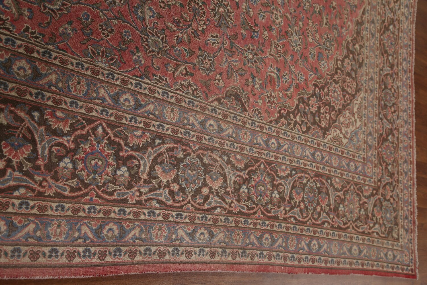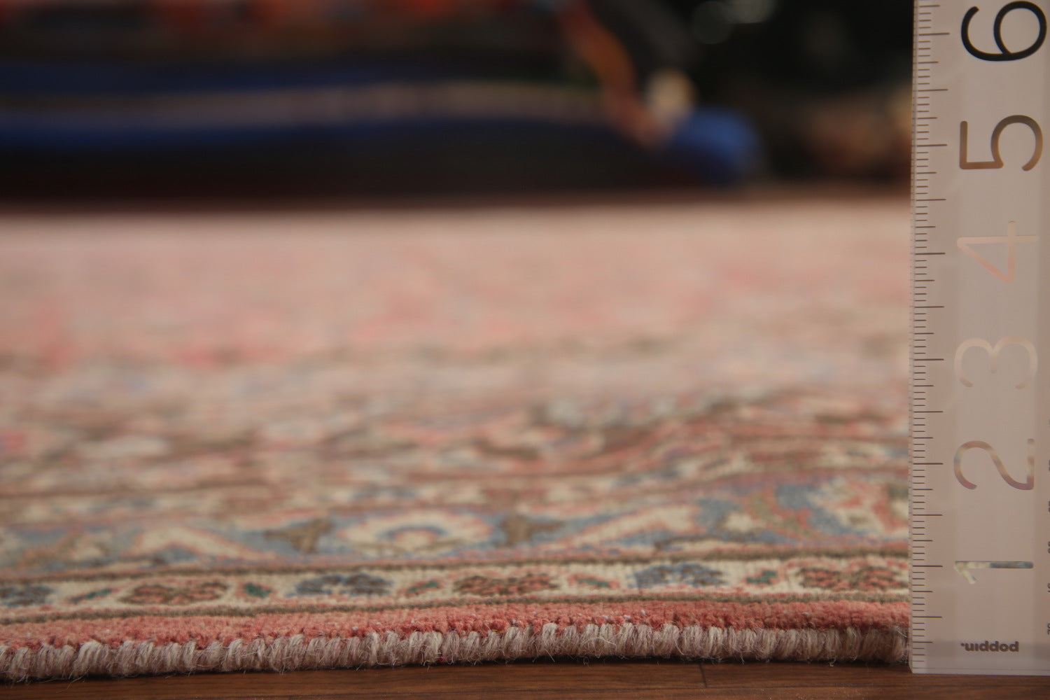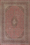 A Beautiful Genuine Persia ( Persia ) Kashan rug is Hand Knotted by skillful weavers in Persia ( Persia ) with 100% Wool Material. This rug is in Very Good (Low Pile) condition. dimensions are 12' 1'' X 9' 8'' in foot and 368 X 295 in centimeter. the primary color is Pink.