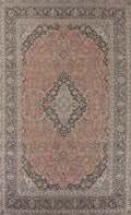 A Beautiful Genuine Persia ( Persia ) Kashan rug is Hand Knotted by skillful weavers in Persia ( Persia ) with 100% Wool Material. This rug is in Very Good (Evenly Low Pile) condition. dimensions are 15' 7'' X 9' 6'' in foot and 475 X 290 in centimeter. the primary color is Pink.
