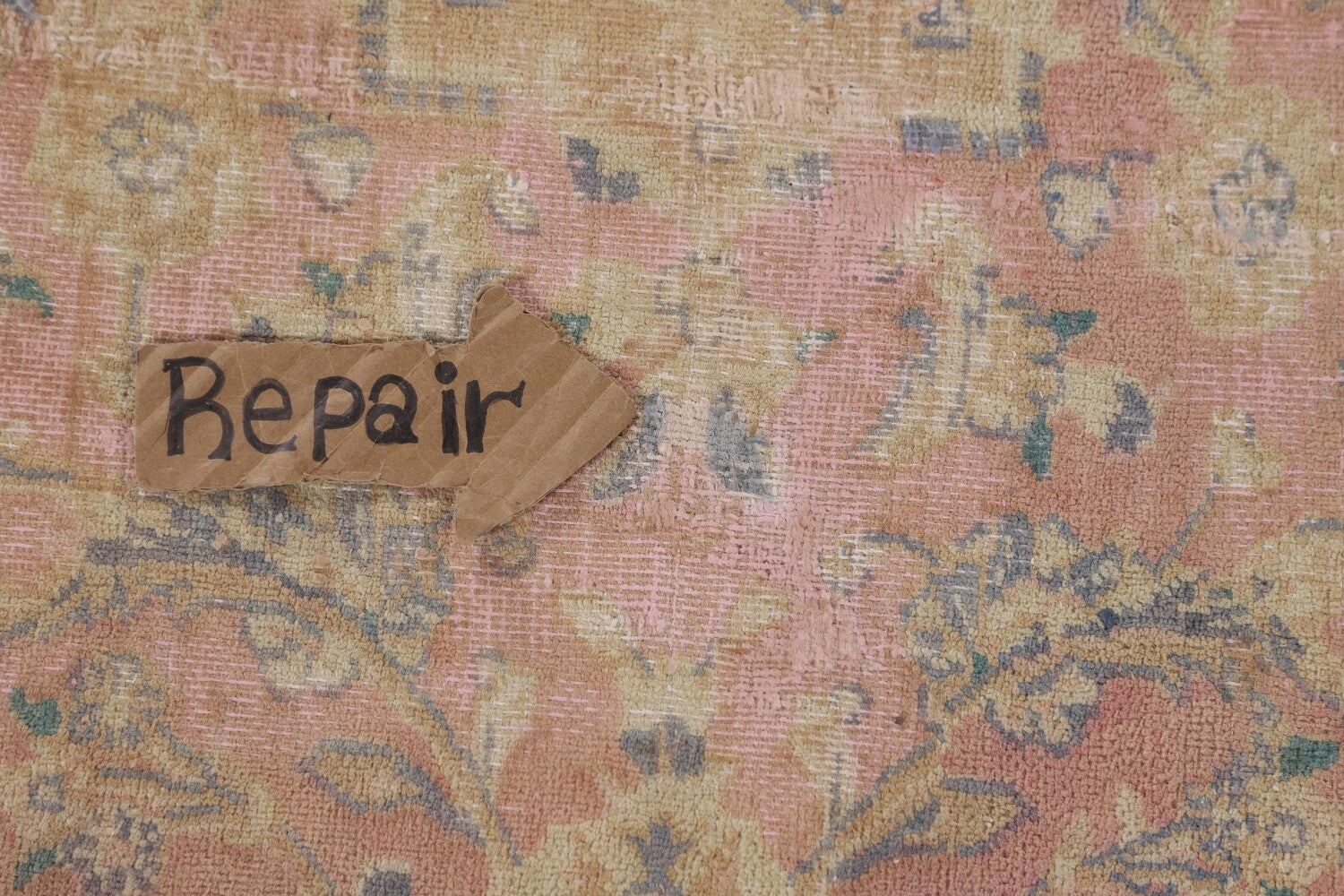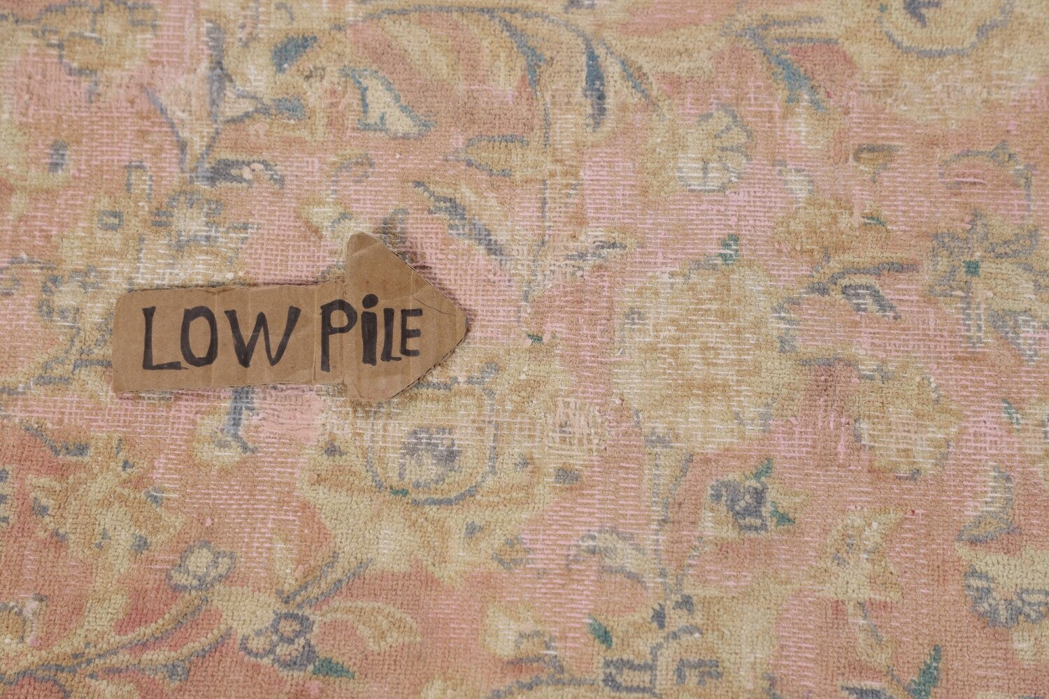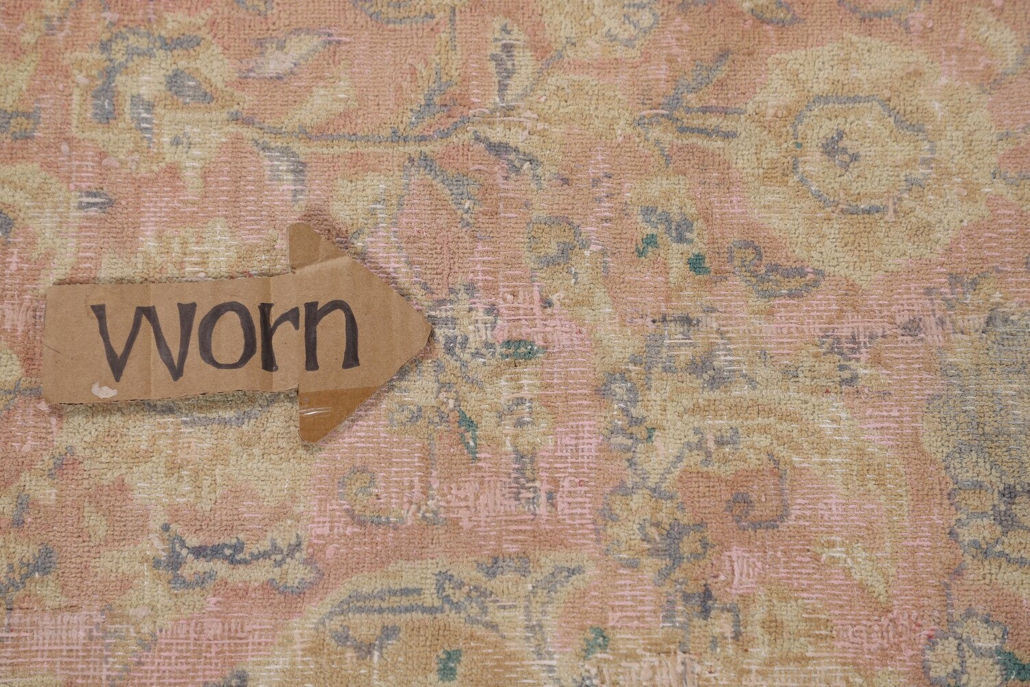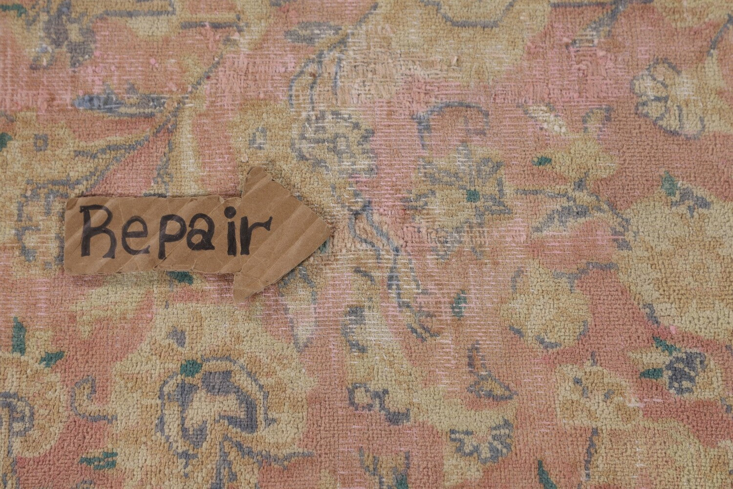 A Beautiful Genuine Persia ( Persia ) Mashad rug is Hand Knotted by skillful weavers in Persia ( Persia ) with 100% Wool Material. This rug is in Very Good ( Low Pile, Worn area, Repair ) condition. dimensions are 12' 2'' X 9' 7'' in foot and 371 X 292 in centimeter. the primary color is Pink.