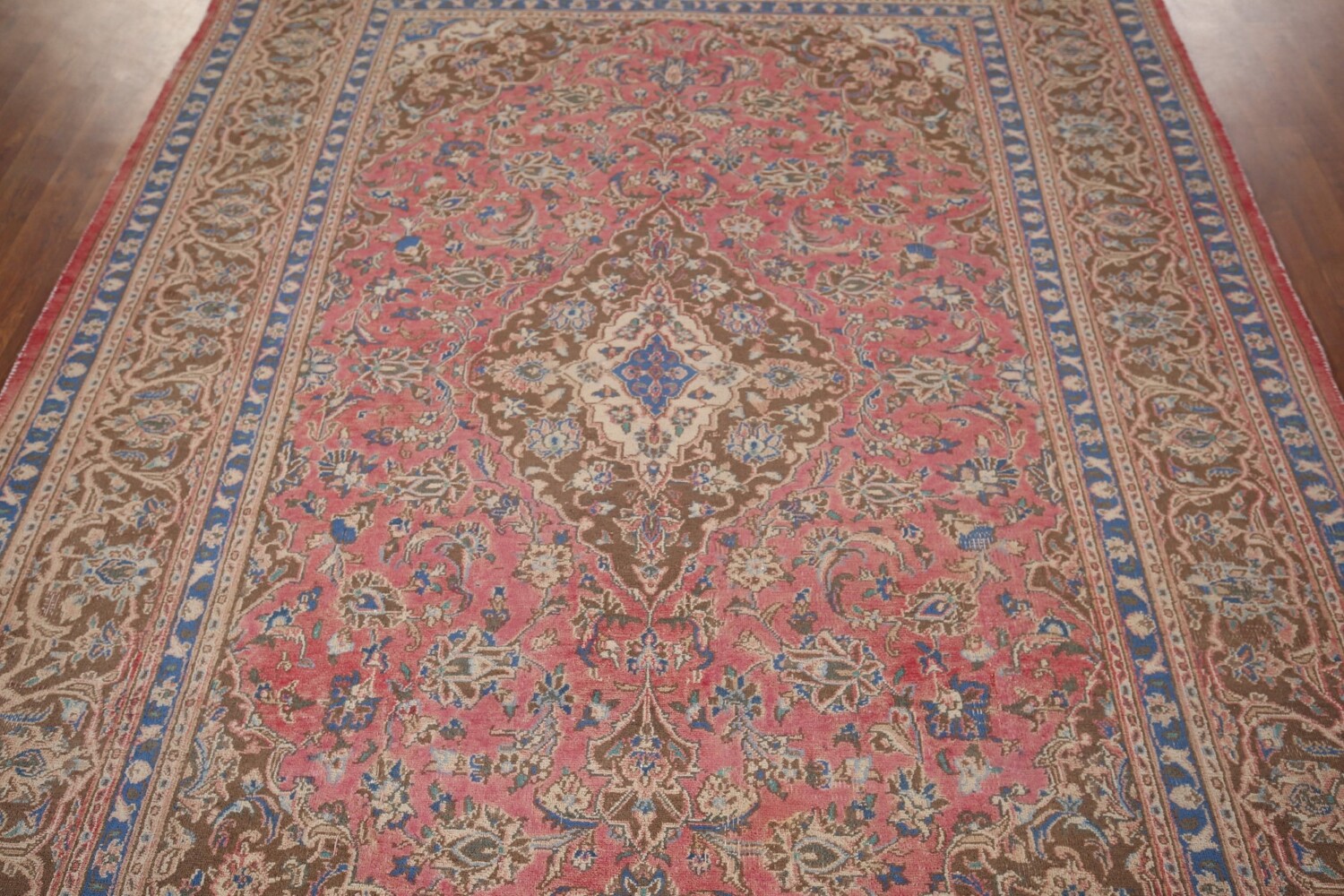 A Beautiful Genuine Persia ( Persia ) Mashad rug is Hand Knotted by skillful weavers in Persia ( Persia ) with 100% Wool Material. This rug is in Very Good (Evenly Low Pile) condition. dimensions are 9' 5'' X 6' 5'' in foot and 287 X 196 in centimeter. the primary color is Pink.
