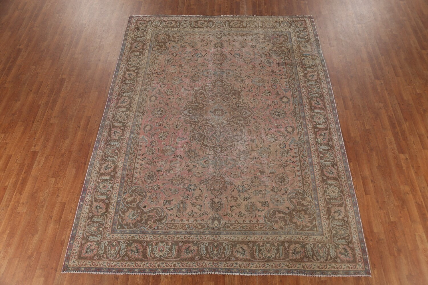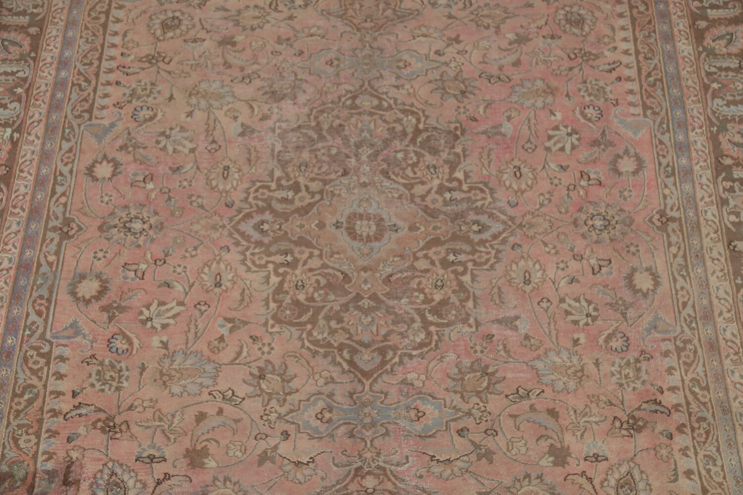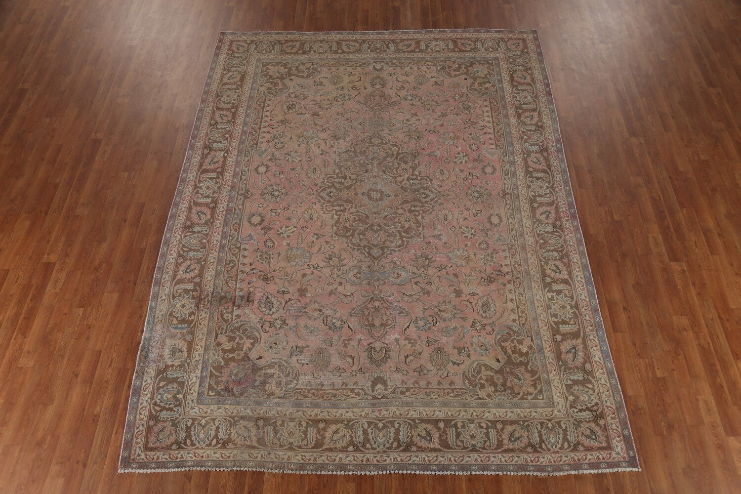 A Beautiful Genuine Persia ( Persia ) Mashad rug is Hand Knotted by skillful weavers in Persia ( Persia ) with 100% Wool Material. This rug is in Very Good (Repair) condition. dimensions are 10' 10'' X 8' 0'' in foot and 330 X 244 in centimeter. the primary color is Pink.