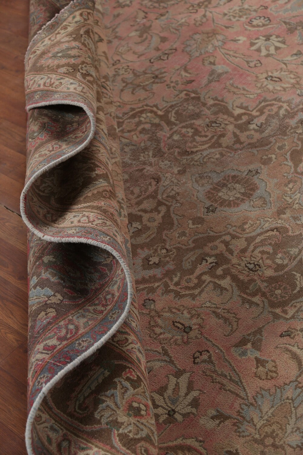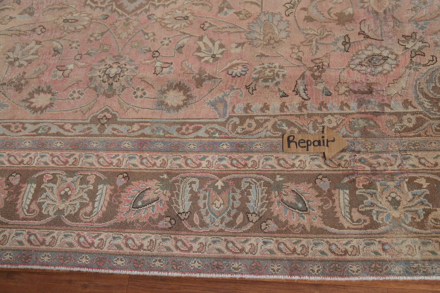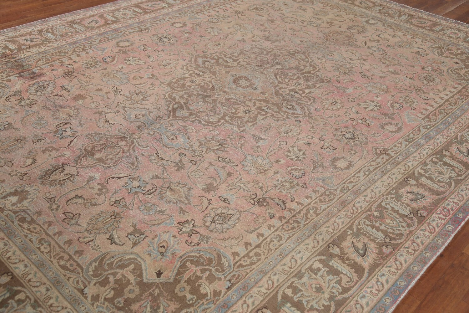 A Beautiful Genuine Persia ( Persia ) Mashad rug is Hand Knotted by skillful weavers in Persia ( Persia ) with 100% Wool Material. This rug is in Very Good (Repair) condition. dimensions are 10' 10'' X 8' 0'' in foot and 330 X 244 in centimeter. the primary color is Pink.