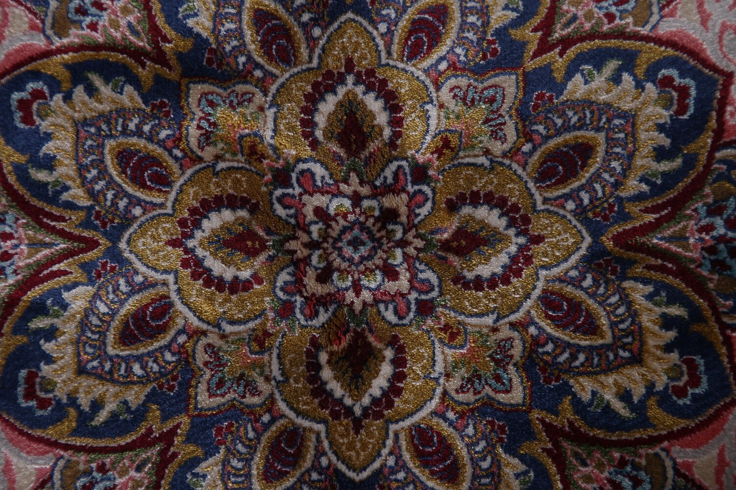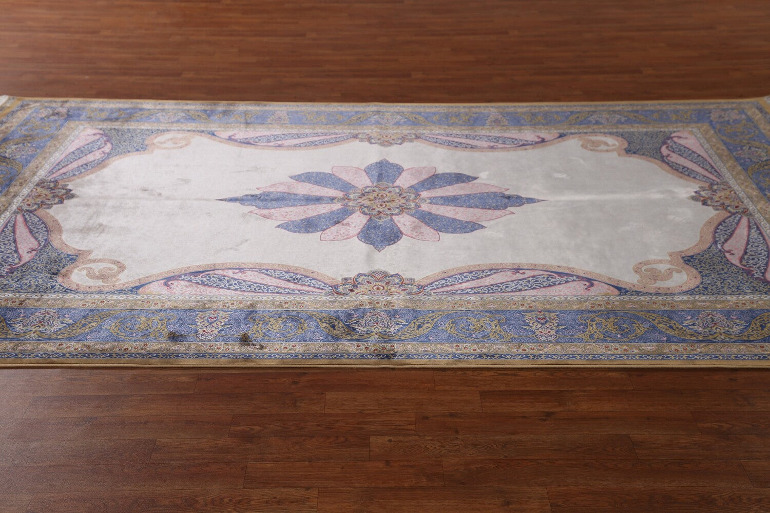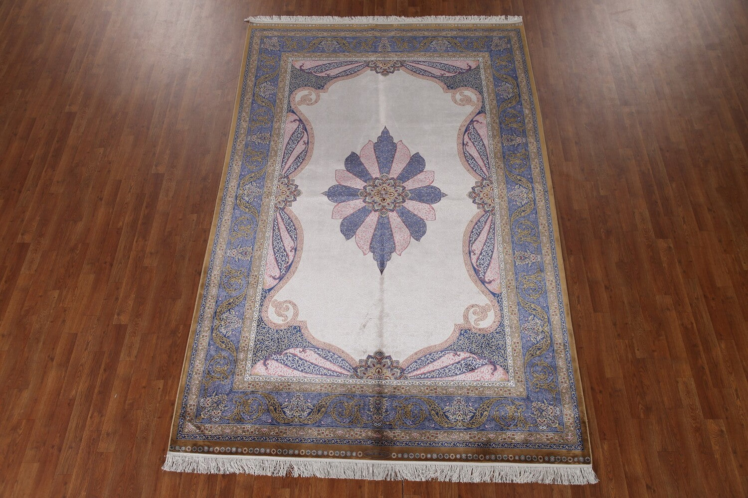 A Beautiful Genuine Turkey Qum rug is Machine Made by skillful weavers in Turkey with 90% Silk - 10% Polyester Material. This rug is in condition. dimensions are 10' 0'' X 6' 5'' in foot and 305 X 196 in centimeter. the primary color is Beige & Ivories.