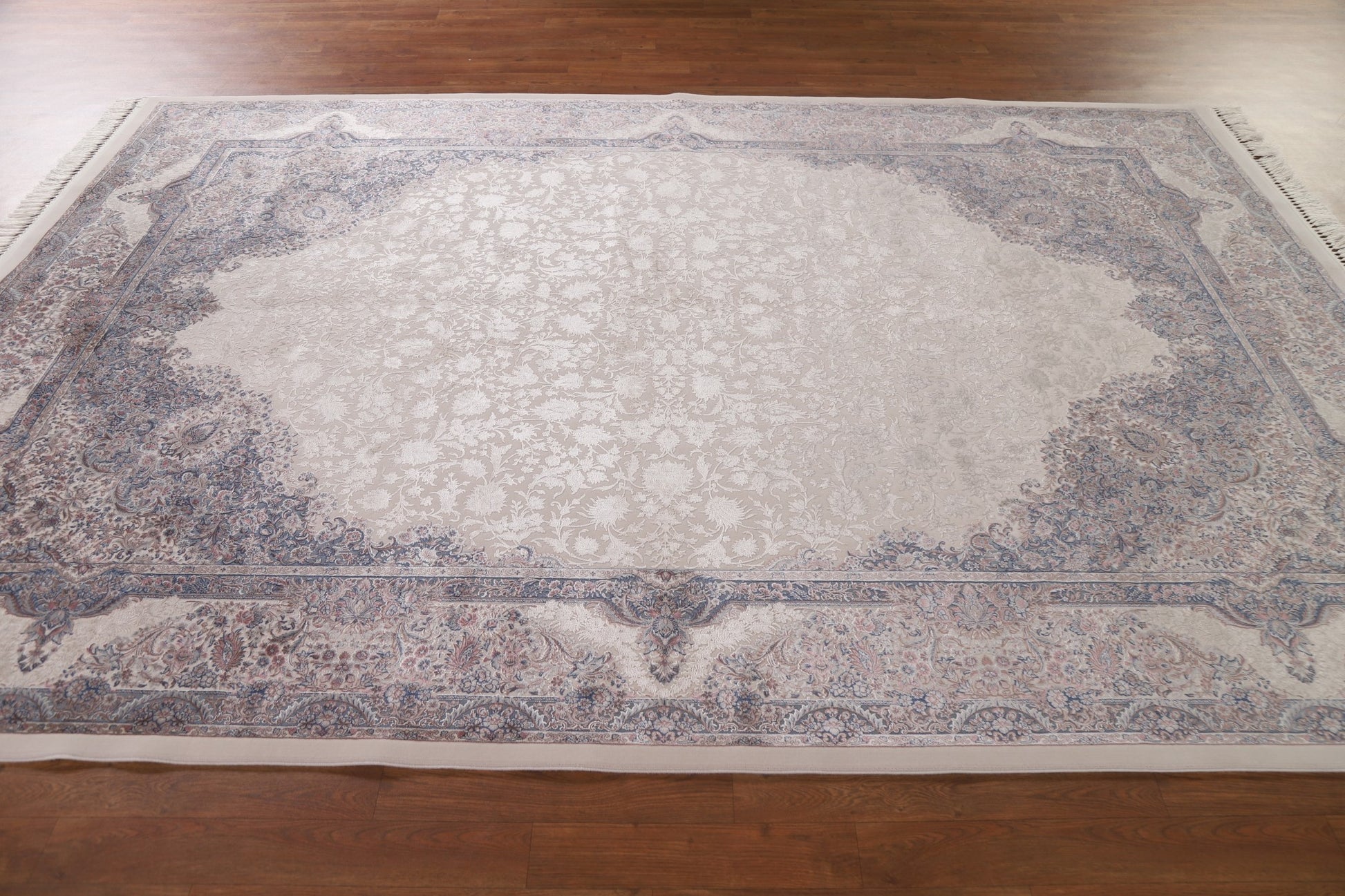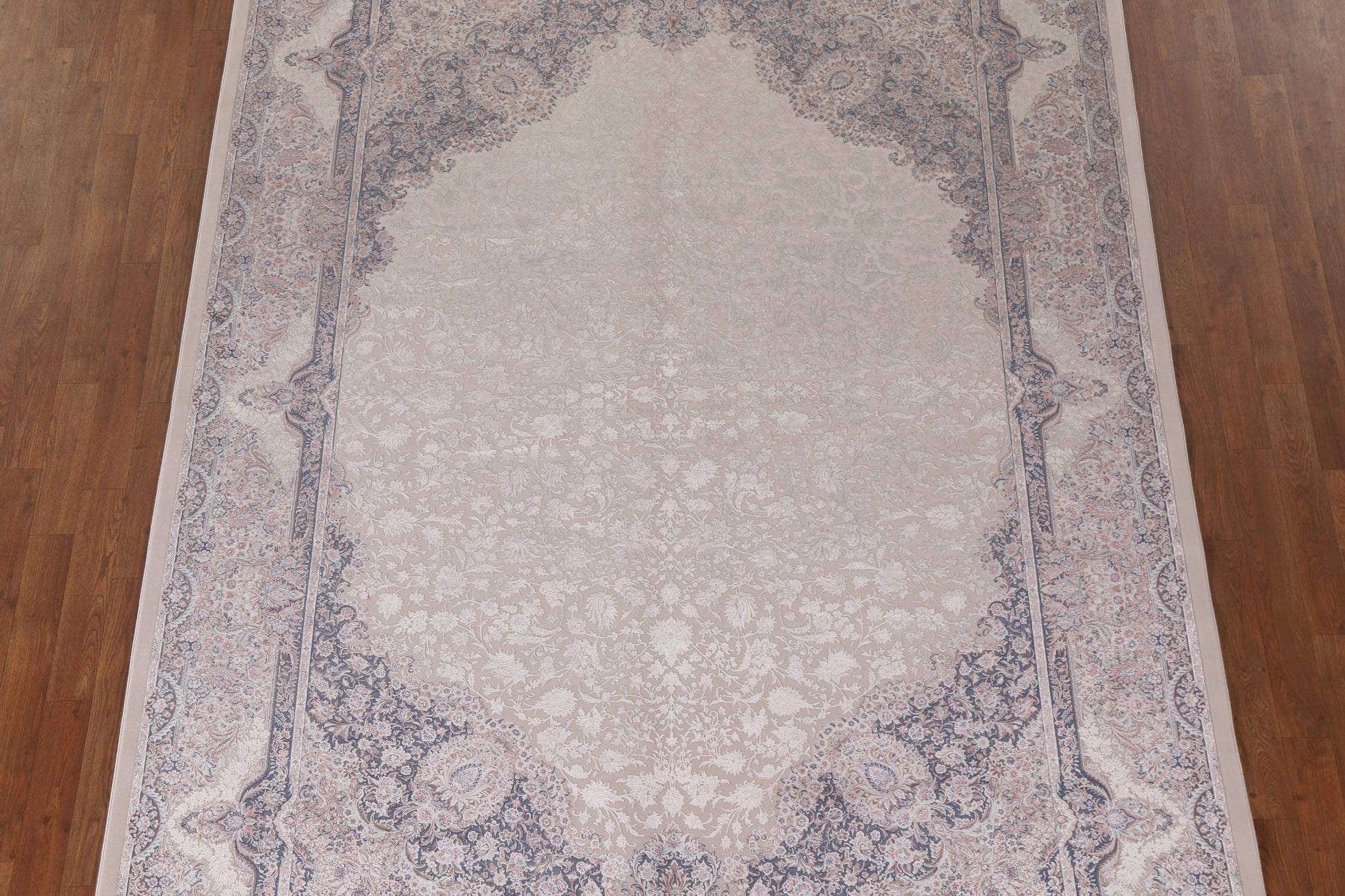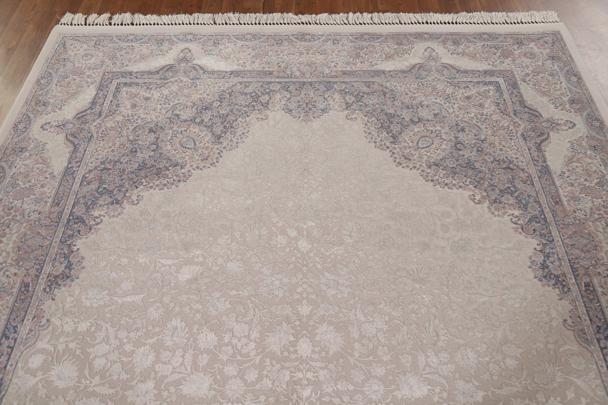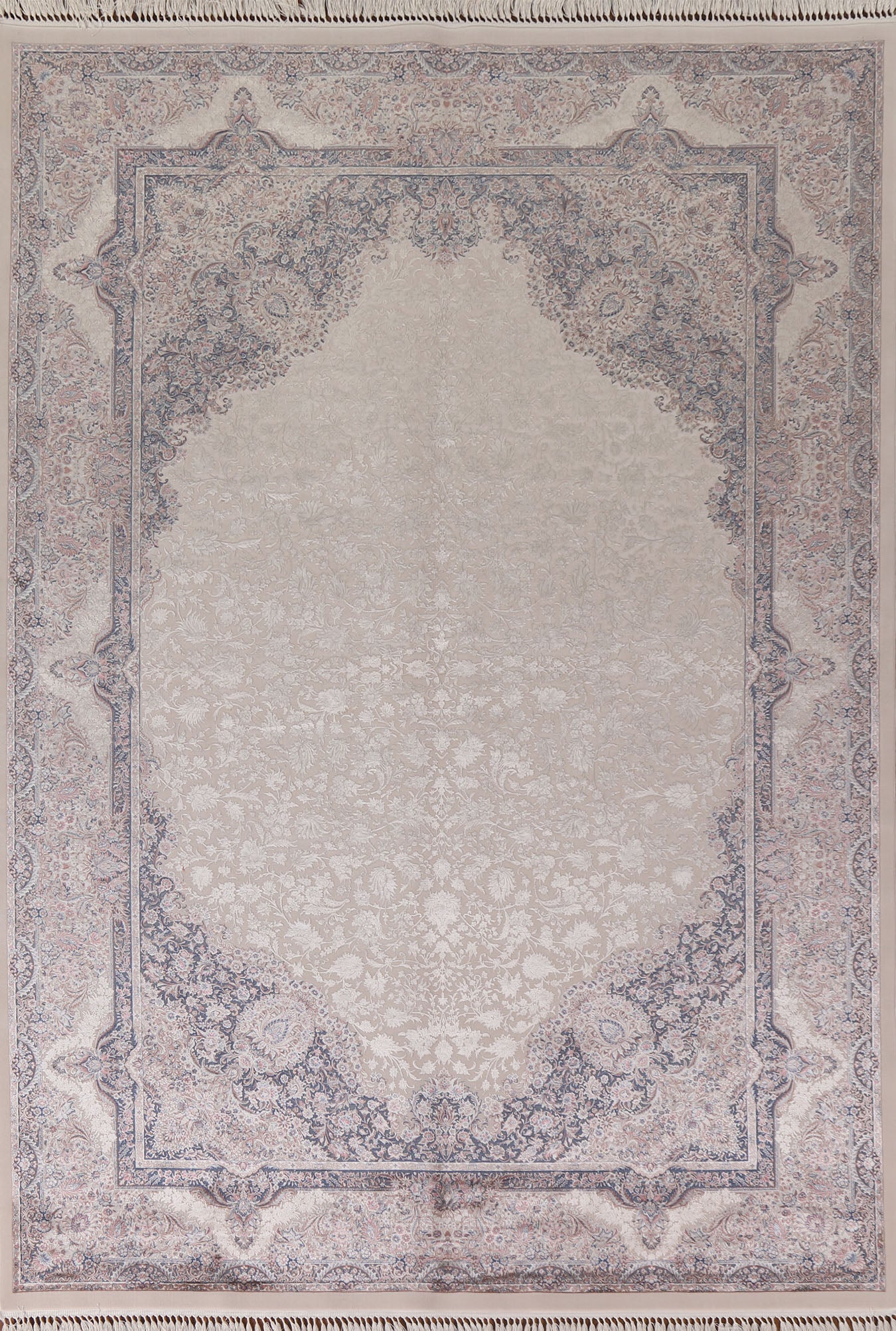 A Beautiful Genuine Turkey Qum rug is Machine Made by skillful weavers in Turkey with 90% Silk - 10% Polyester Material. This rug is in condition. dimensions are 9' 7'' X 6' 7'' in foot and 292 X 201 in centimeter. the primary color is Beige & Ivories.