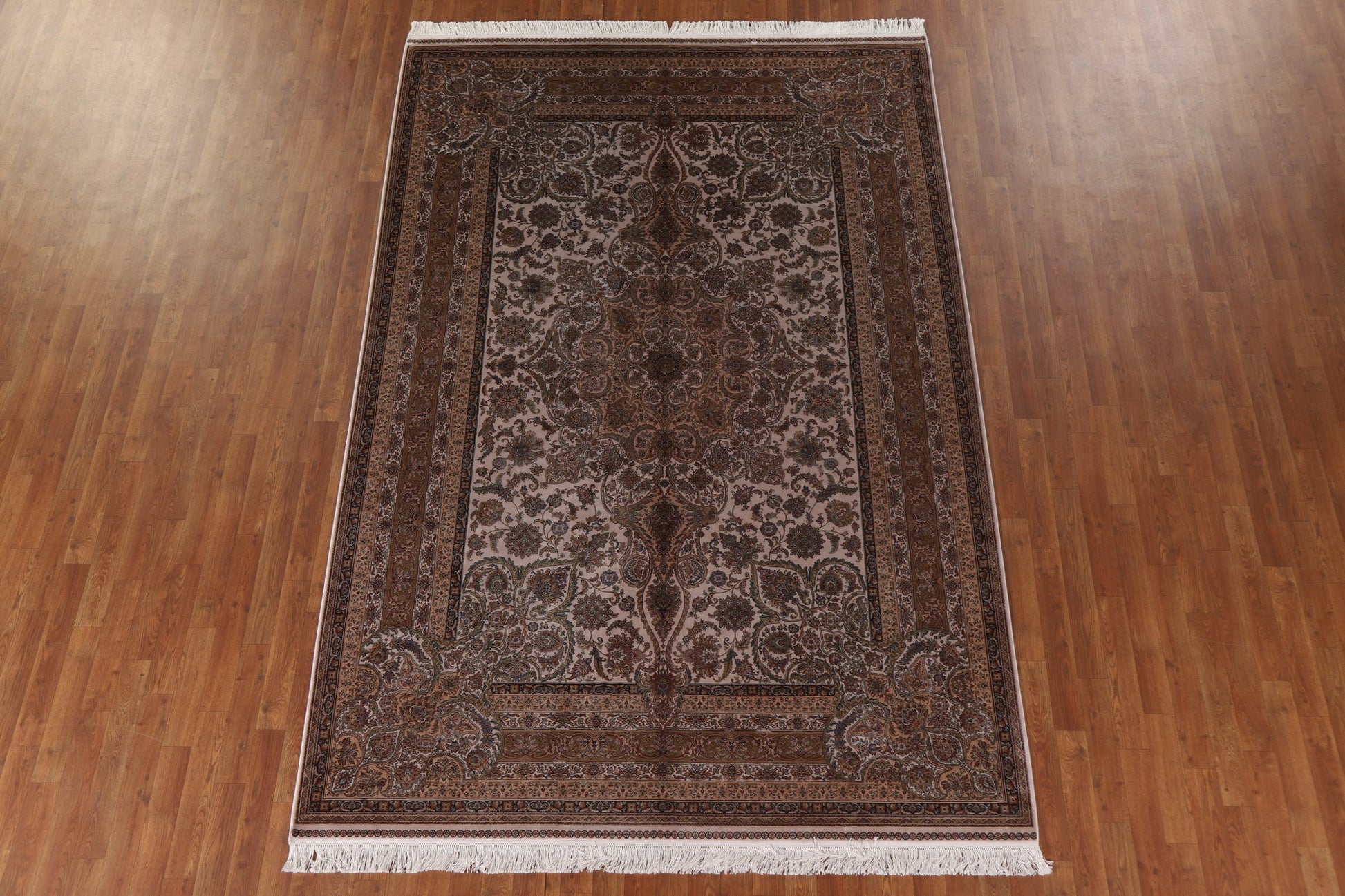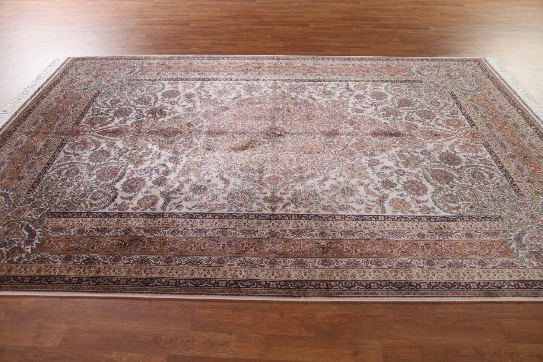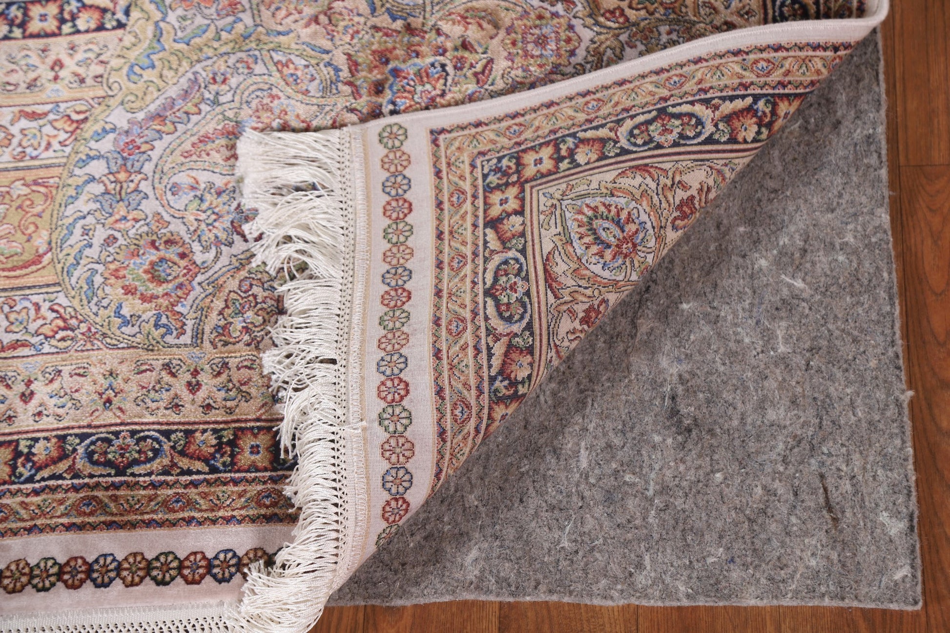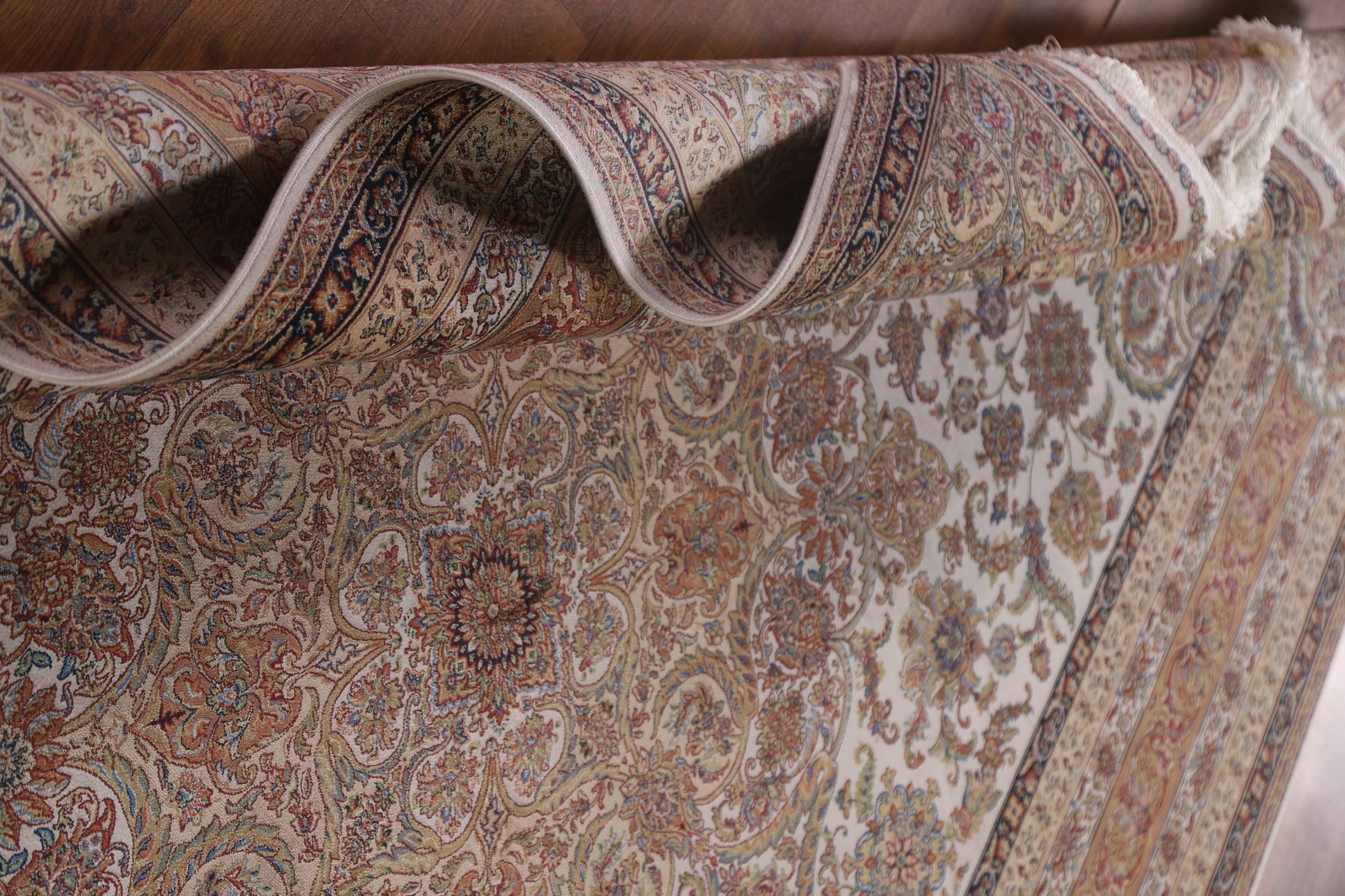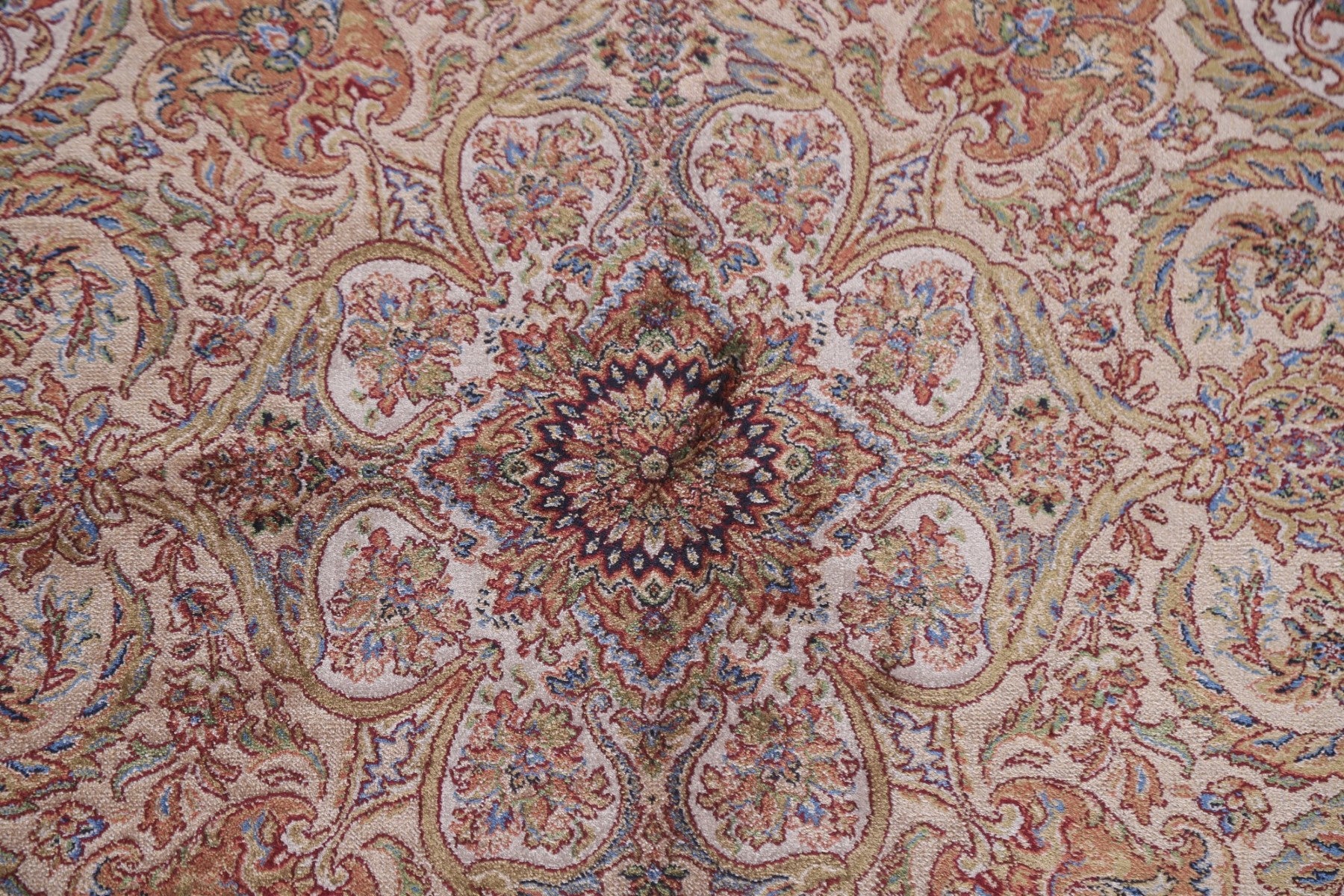 A Beautiful Genuine Turkey Qum rug is Machine Made by skillful weavers in Turkey with 90% Silk - 10% Polyester Material. This rug is in condition. dimensions are 10' 1'' X 6' 7'' in foot and 307 X 201 in centimeter. the primary color is Beige & Ivories.