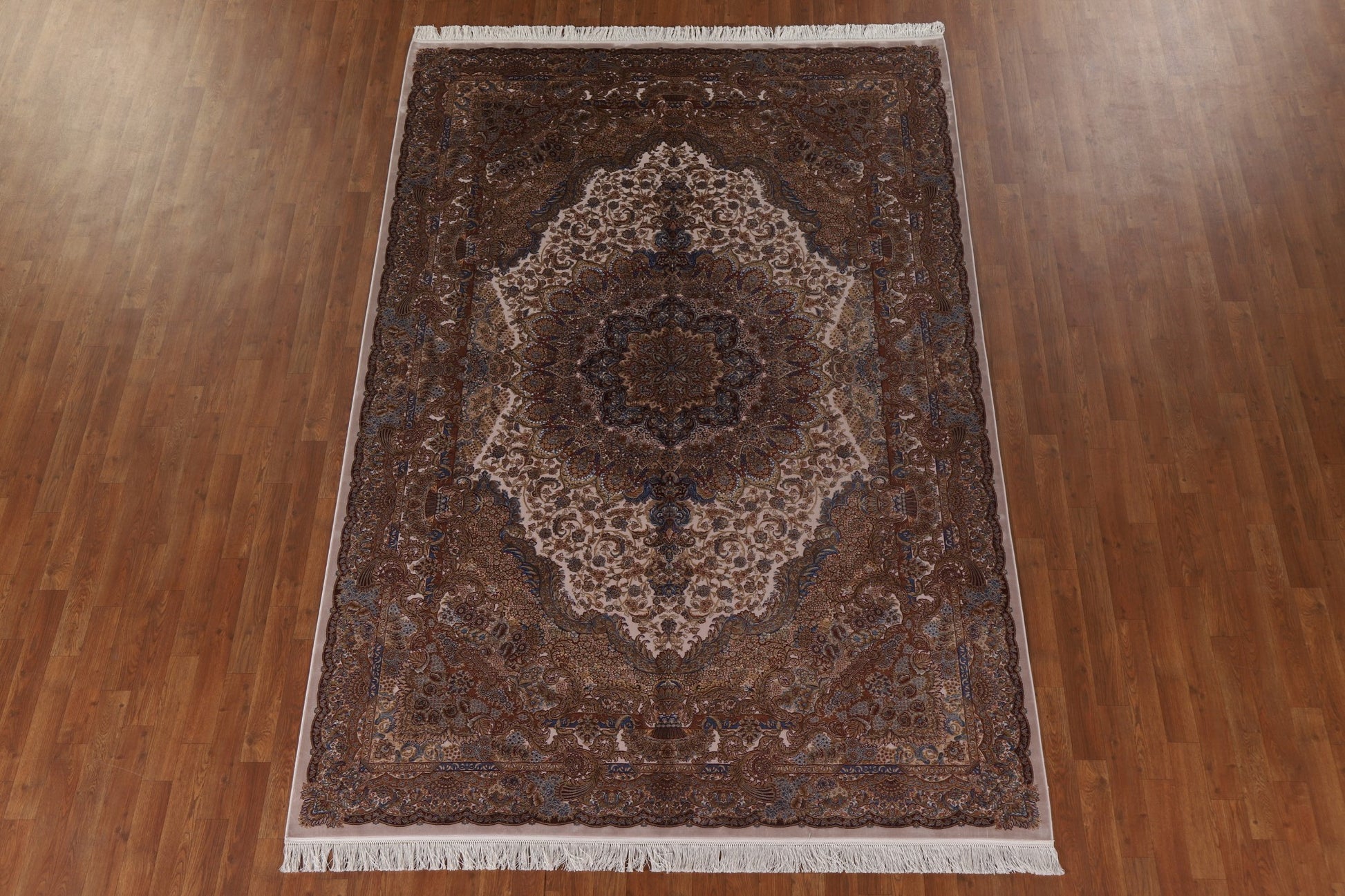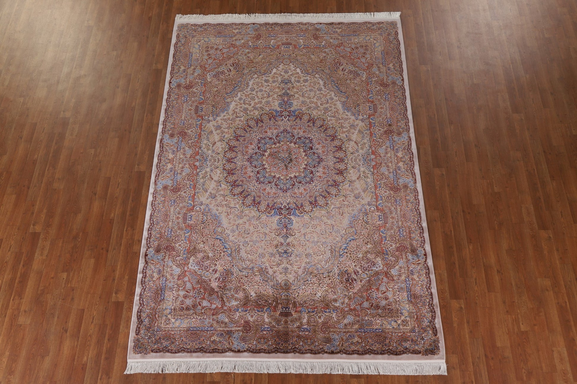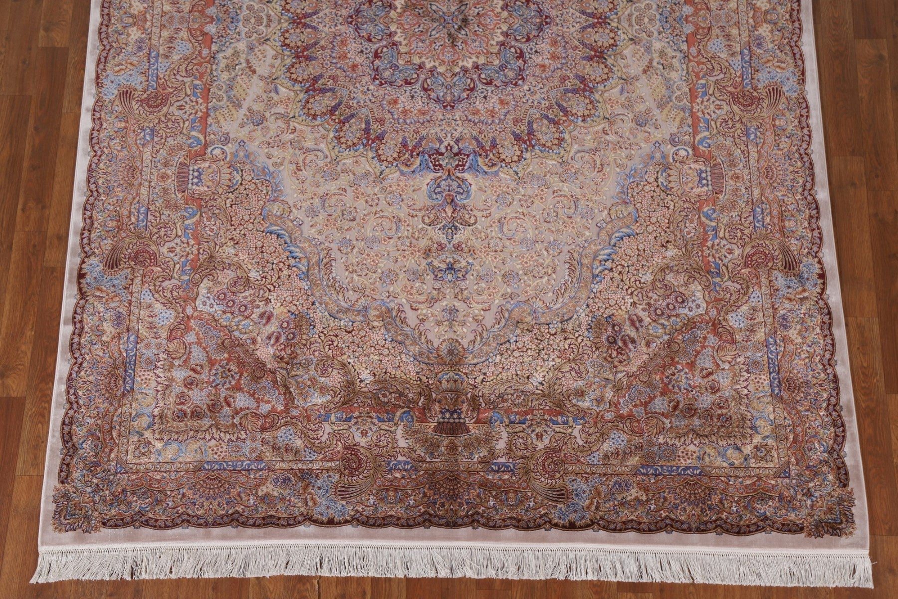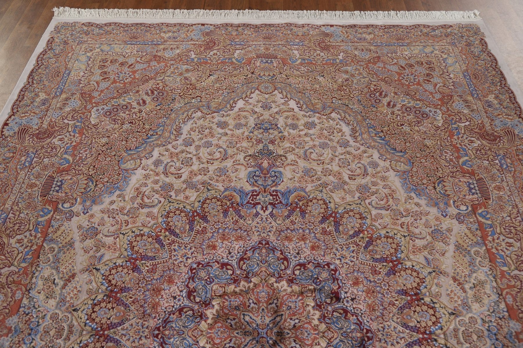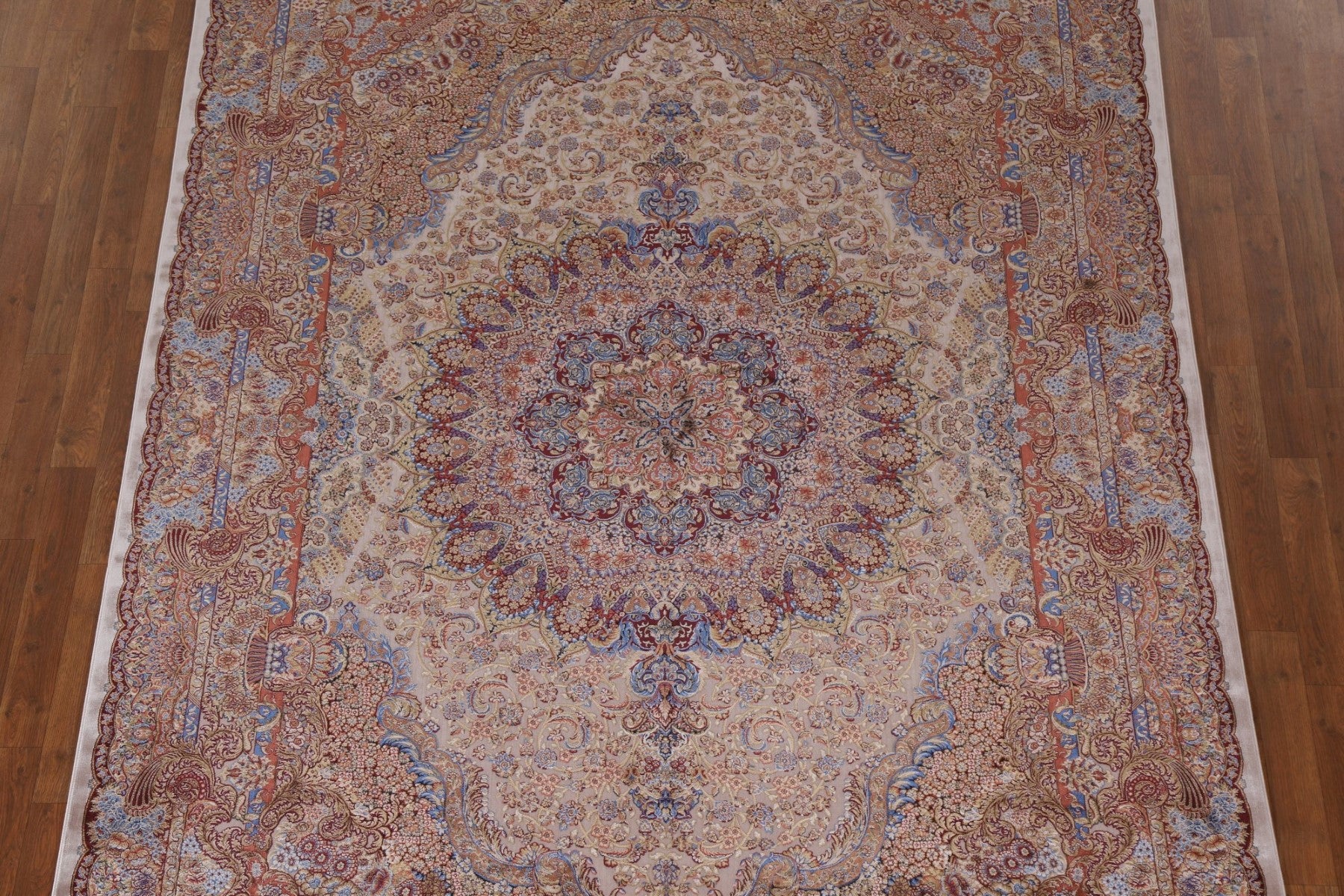 A Beautiful Genuine Turkey Qum rug is Machine Made by skillful weavers in Turkey with 90% Silk - 10% Polyester Material. This rug is in condition. dimensions are 9' 8'' X 6' 6'' in foot and 295 X 198 in centimeter. the primary color is Beige & Ivories.