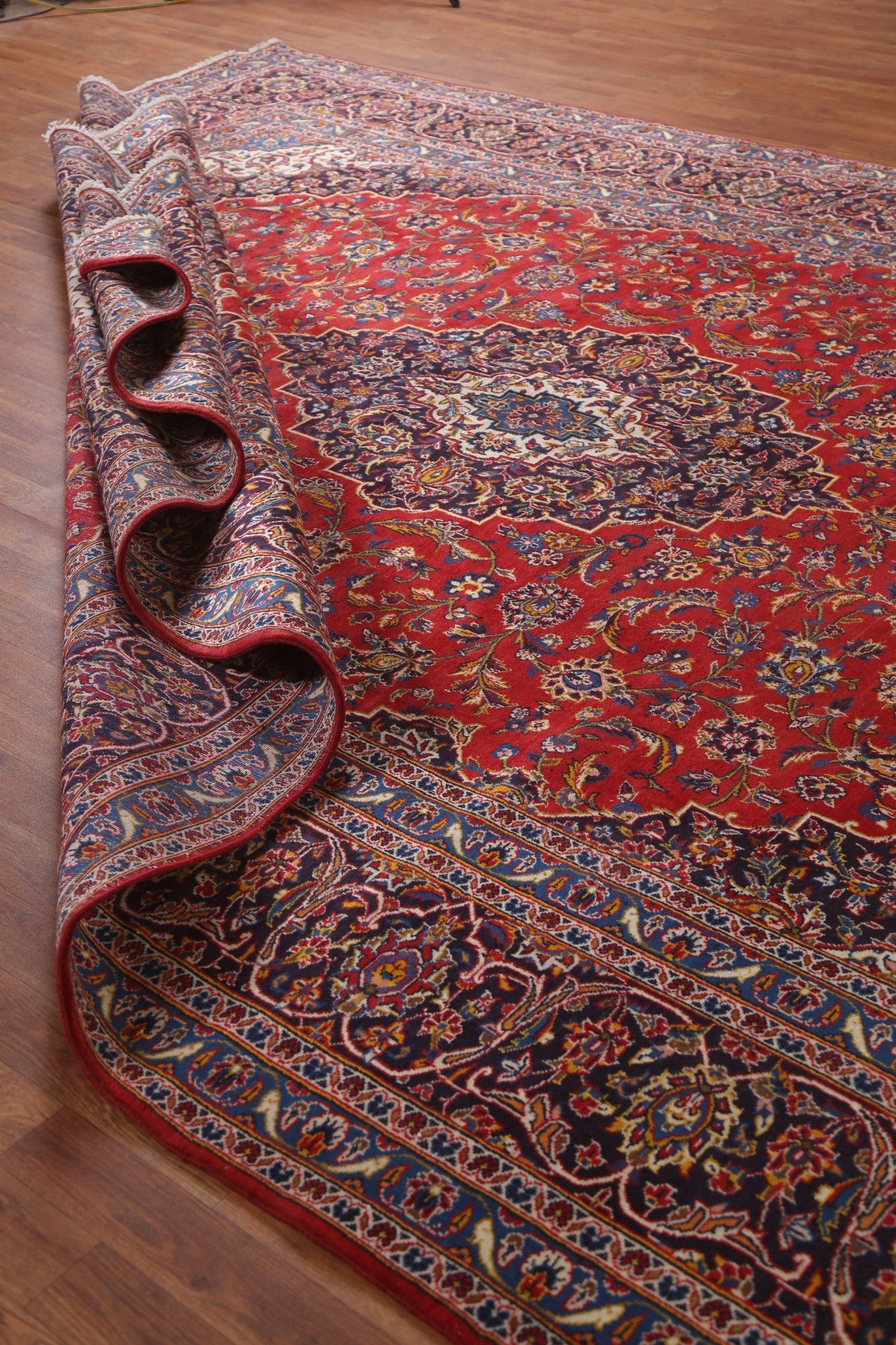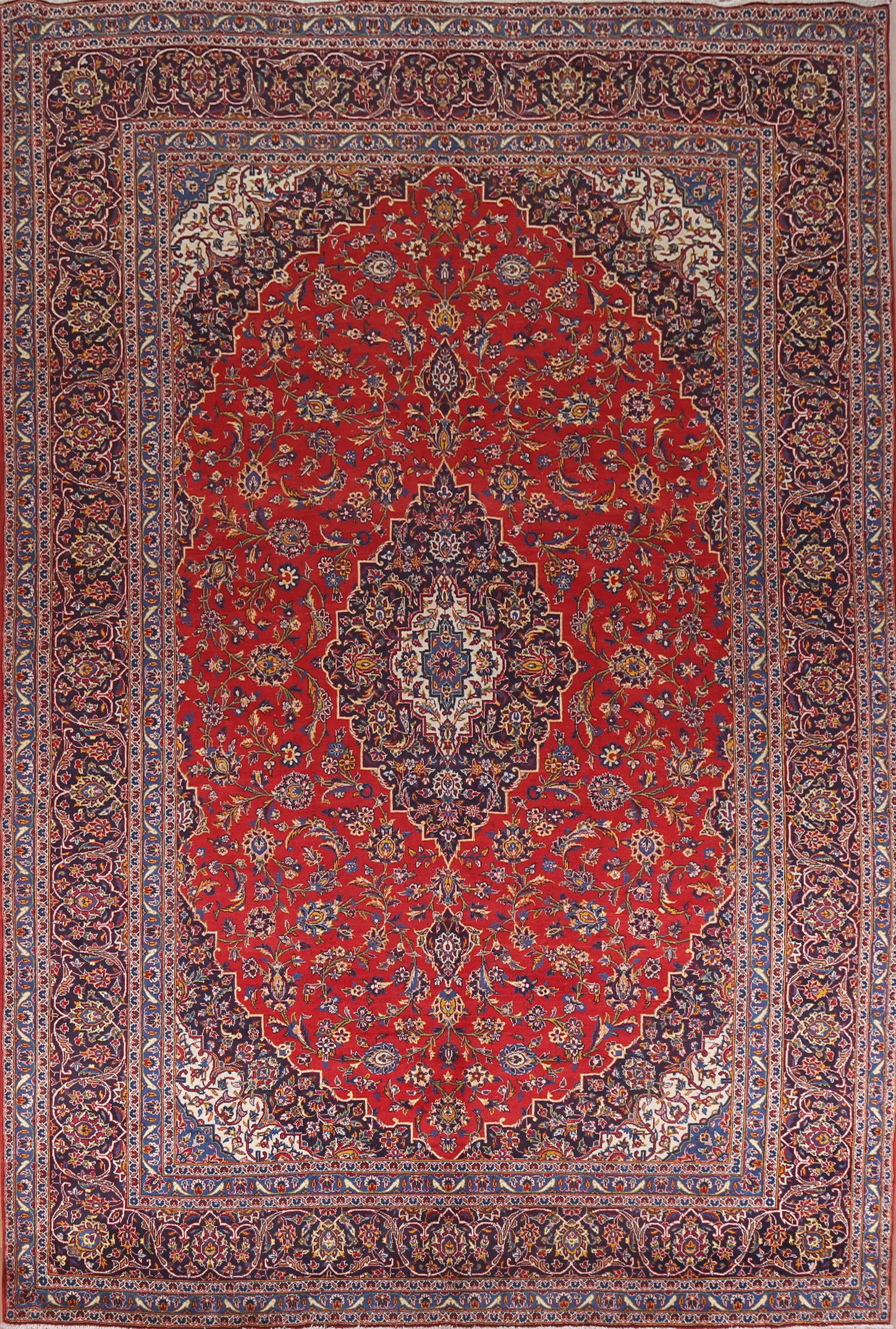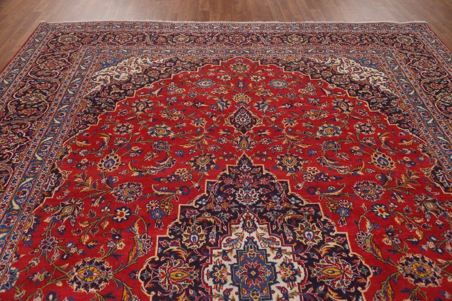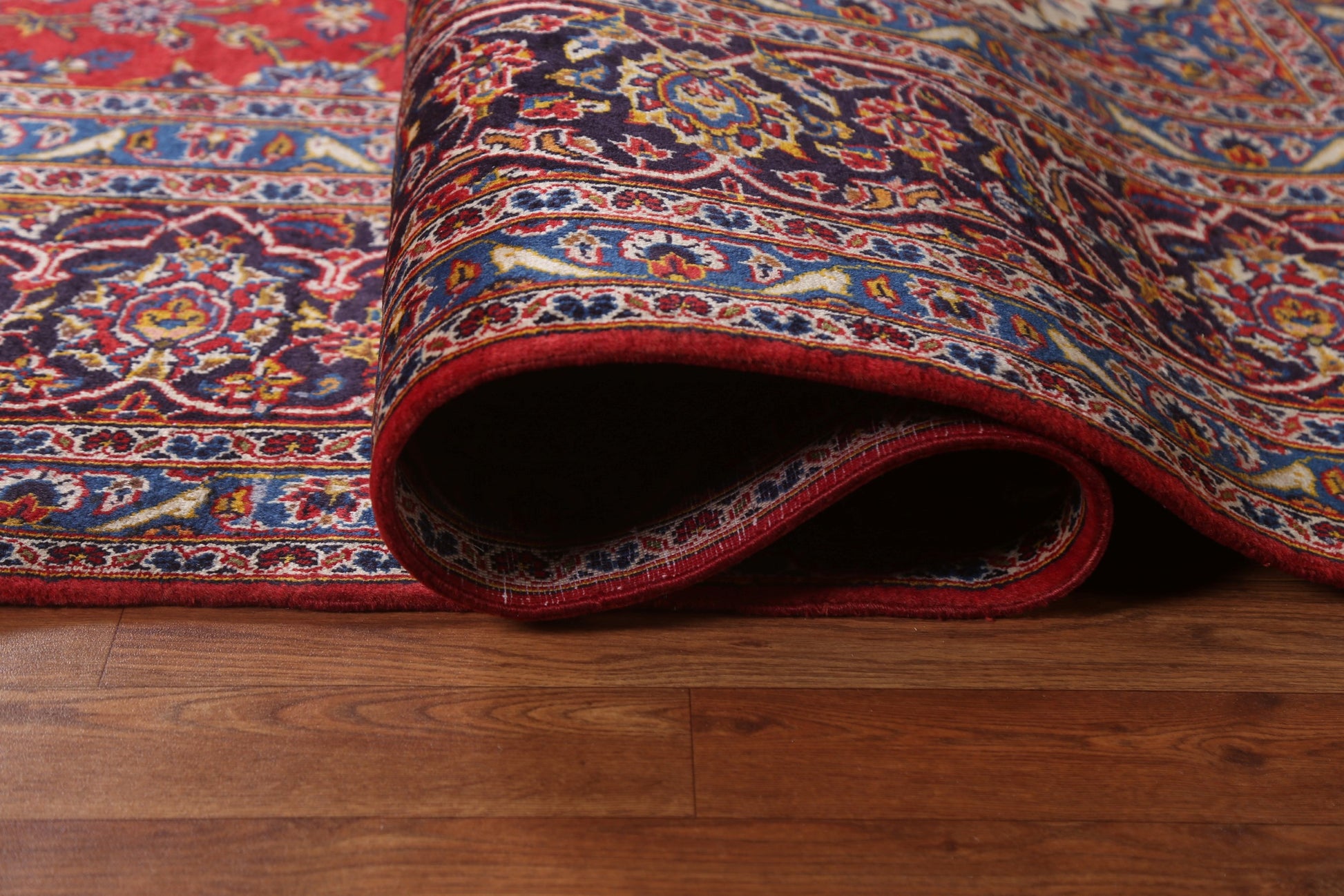 A Beautiful Genuine Persia ( Persia ) Kashan rug is Hand Knotted by skillful weavers in Persia ( Persia ) with 100% Wool Material. This rug is in Very Good condition. dimensions are 12' 11'' X 9' 8'' in foot and 394 X 295 in centimeter. the primary color is Red.
