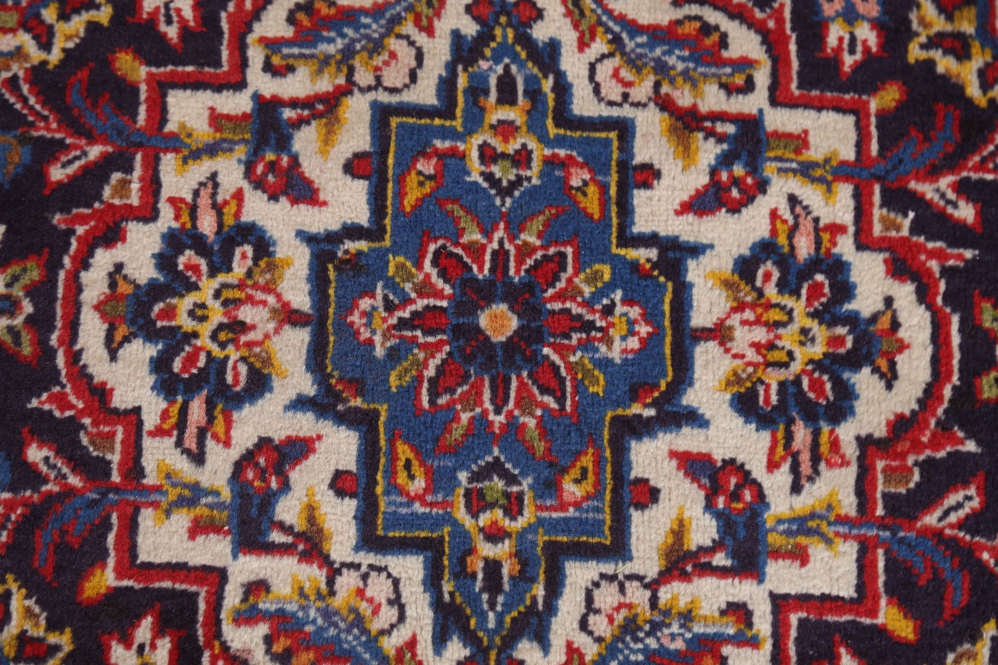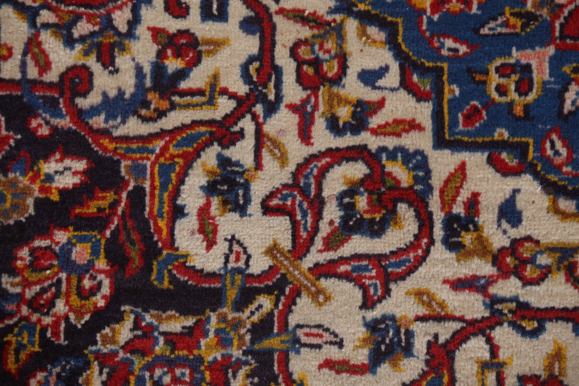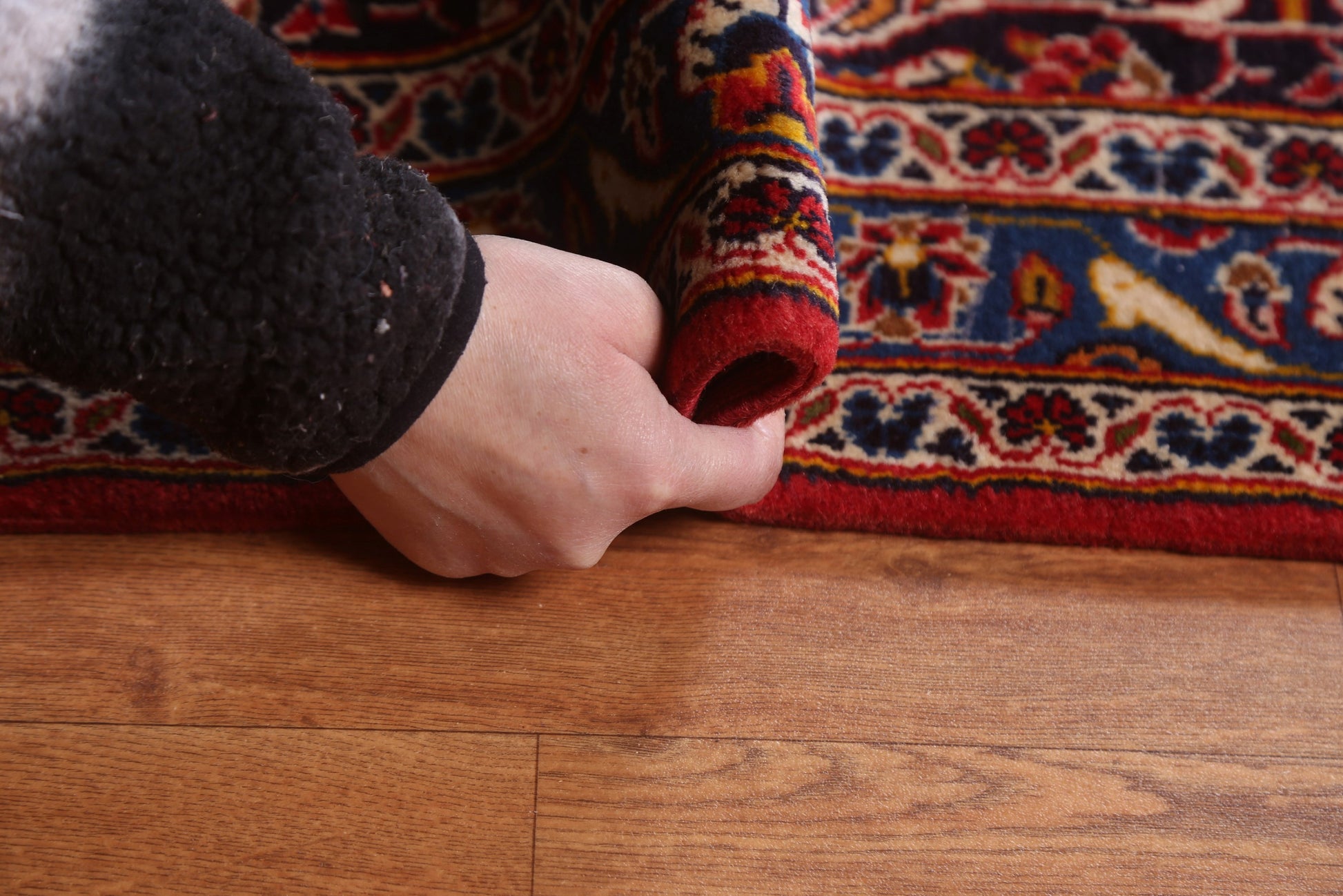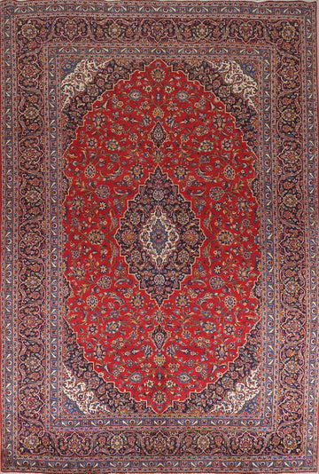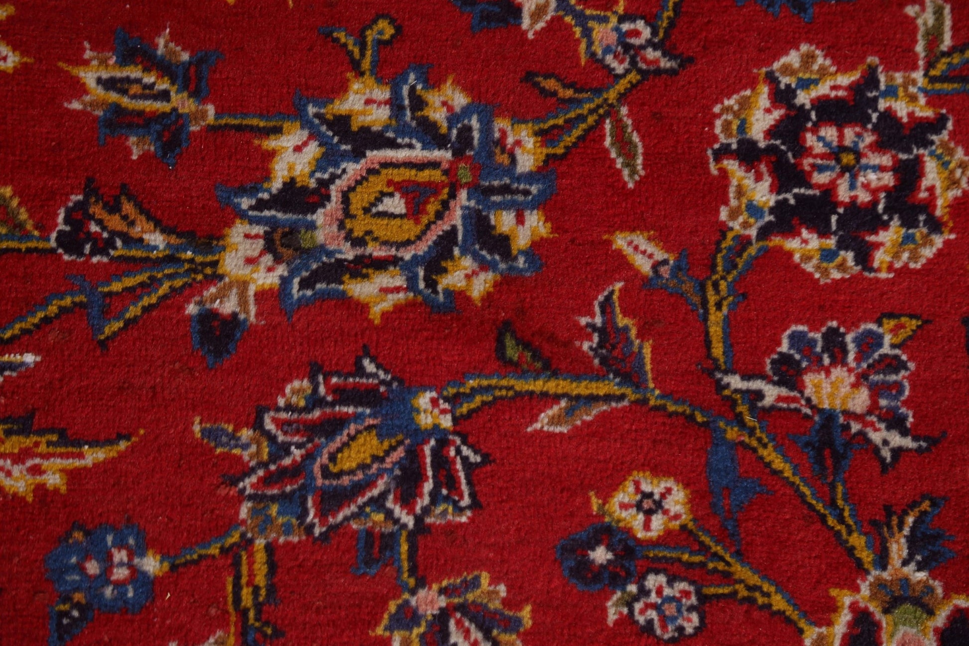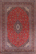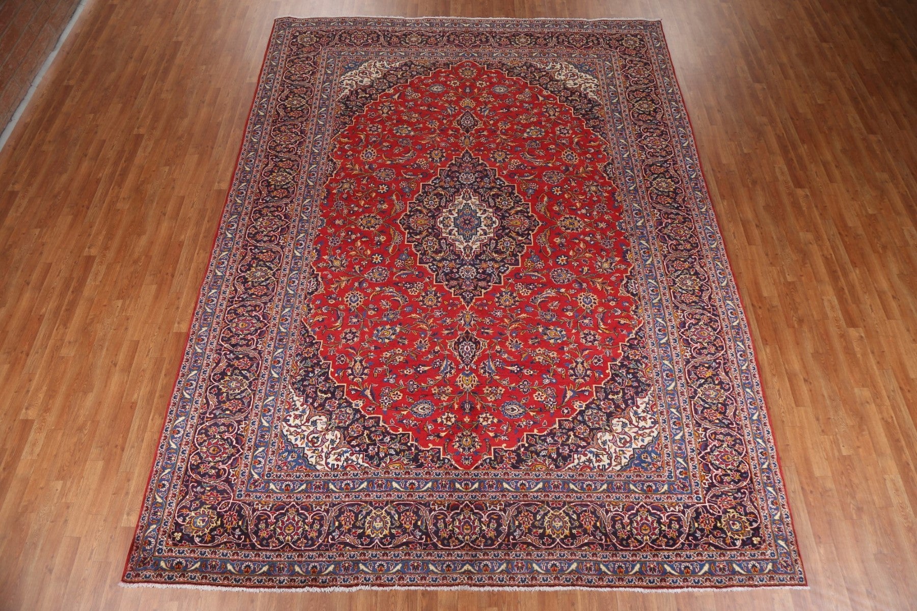 A Beautiful Genuine Persia ( Persia ) Kashan rug is Hand Knotted by skillful weavers in Persia ( Persia ) with 100% Wool Material. This rug is in Very Good condition. dimensions are 12' 11'' X 9' 8'' in foot and 394 X 295 in centimeter. the primary color is Red.