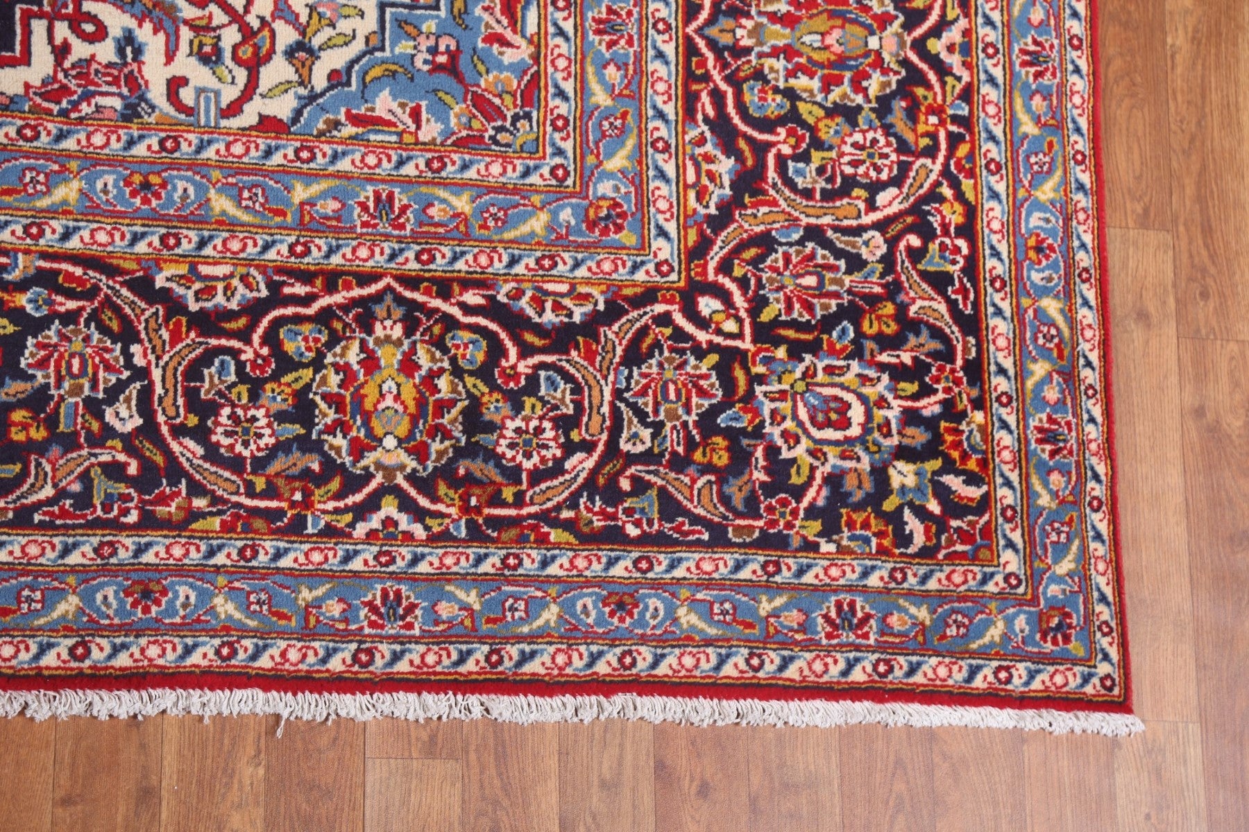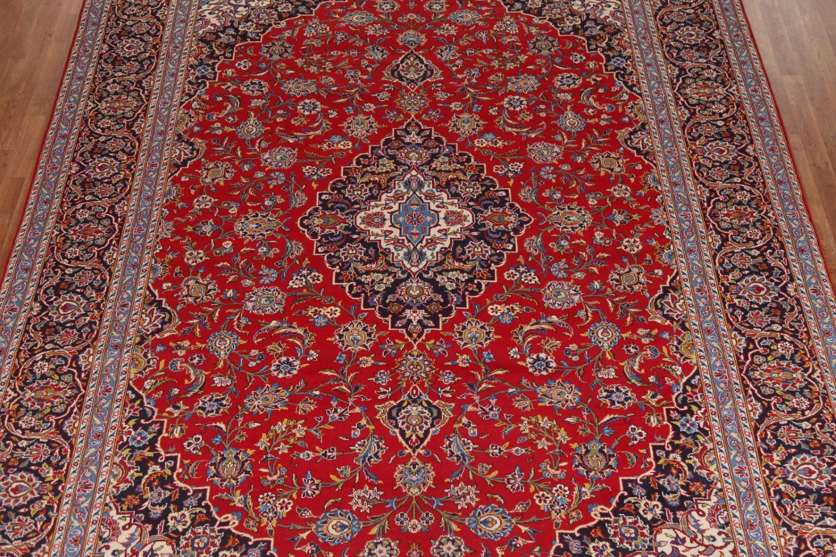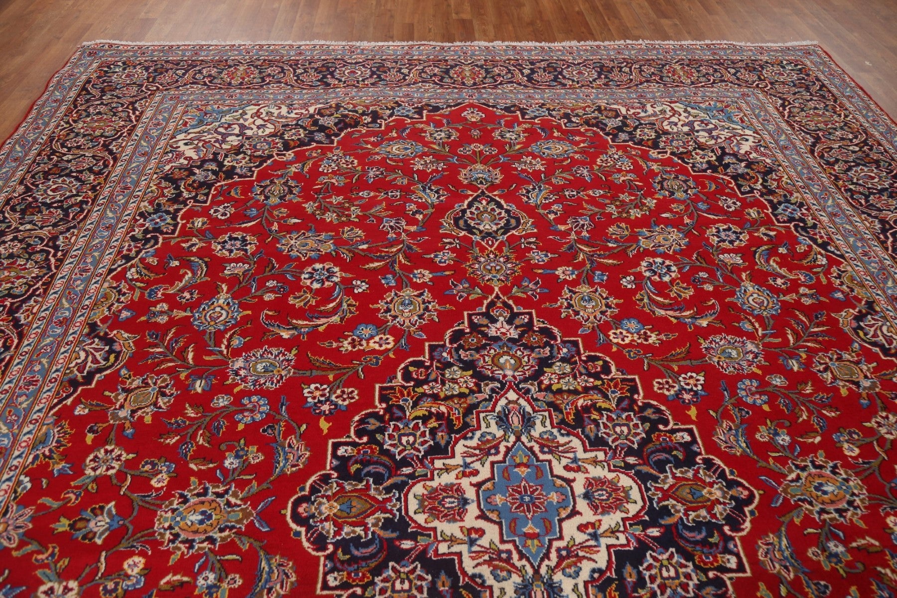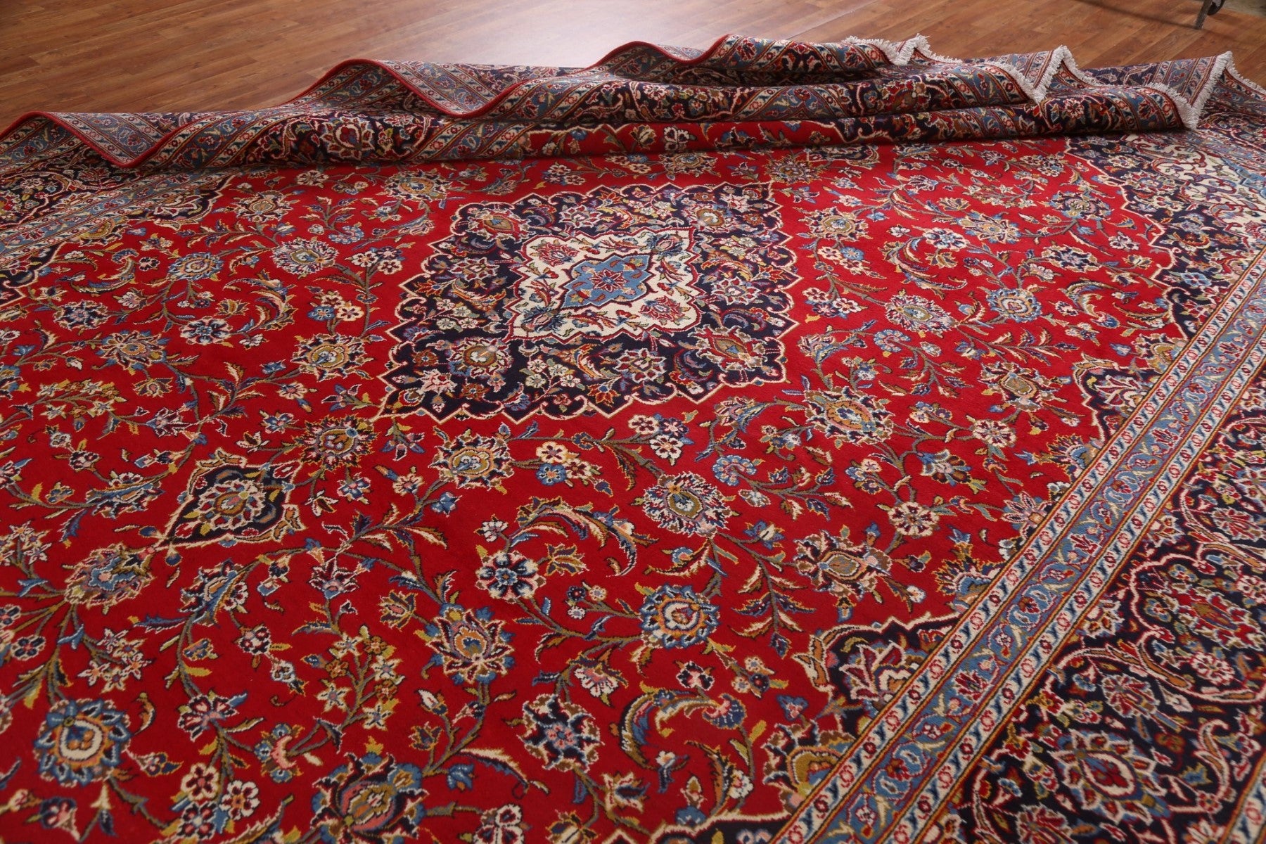 A Beautiful Genuine Persia ( Persia ) Kashan rug is Hand Knotted by skillful weavers in Persia ( Persia ) with 100% Wool Material. This rug is in Excellent condition. dimensions are 13' 0'' X 9' 10'' in foot and 396 X 300 in centimeter. the primary color is Red.
