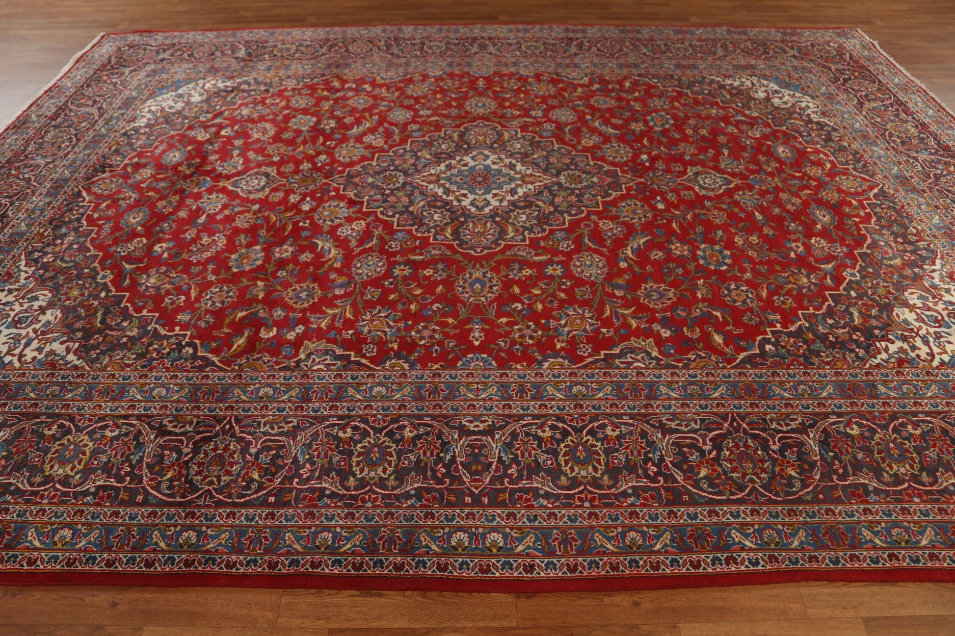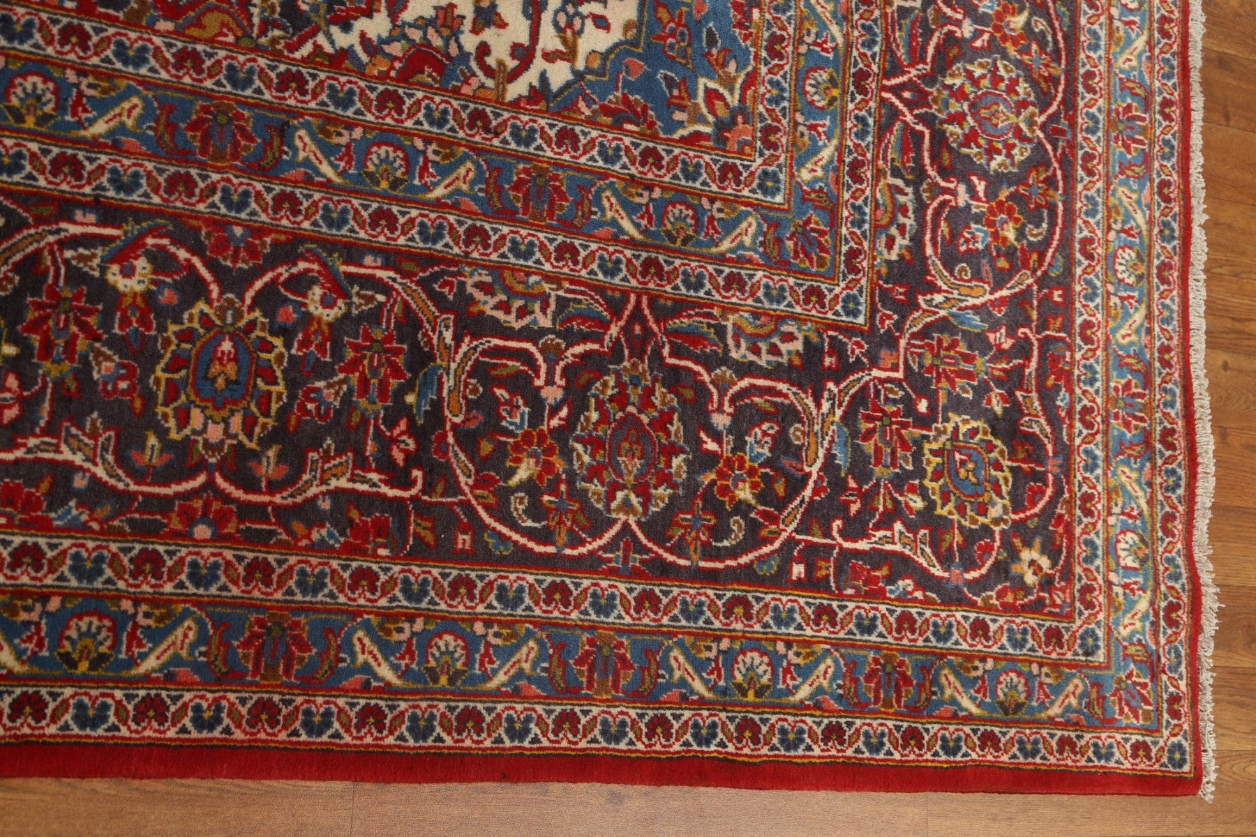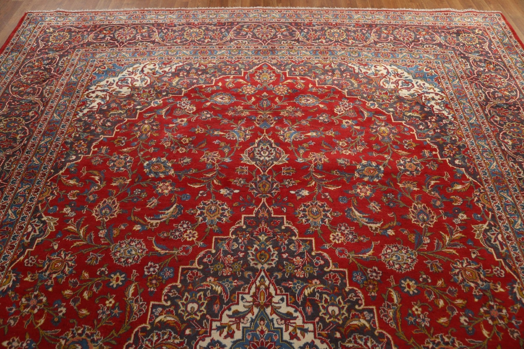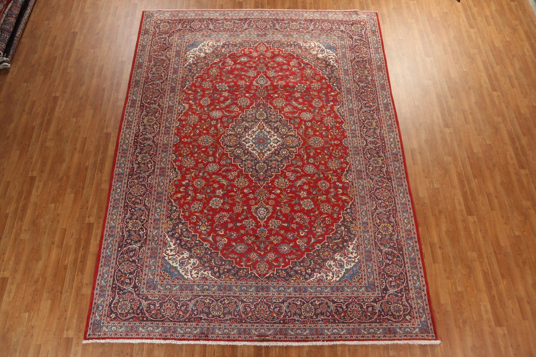 A Beautiful Genuine Persia ( Persia ) Kashan rug is Hand Knotted by skillful weavers in Persia ( Persia ) with 100% Wool Material. This rug is in Very Good condition. dimensions are 12' 9'' X 9' 7'' in foot and 389 X 292 in centimeter. the primary color is Red.