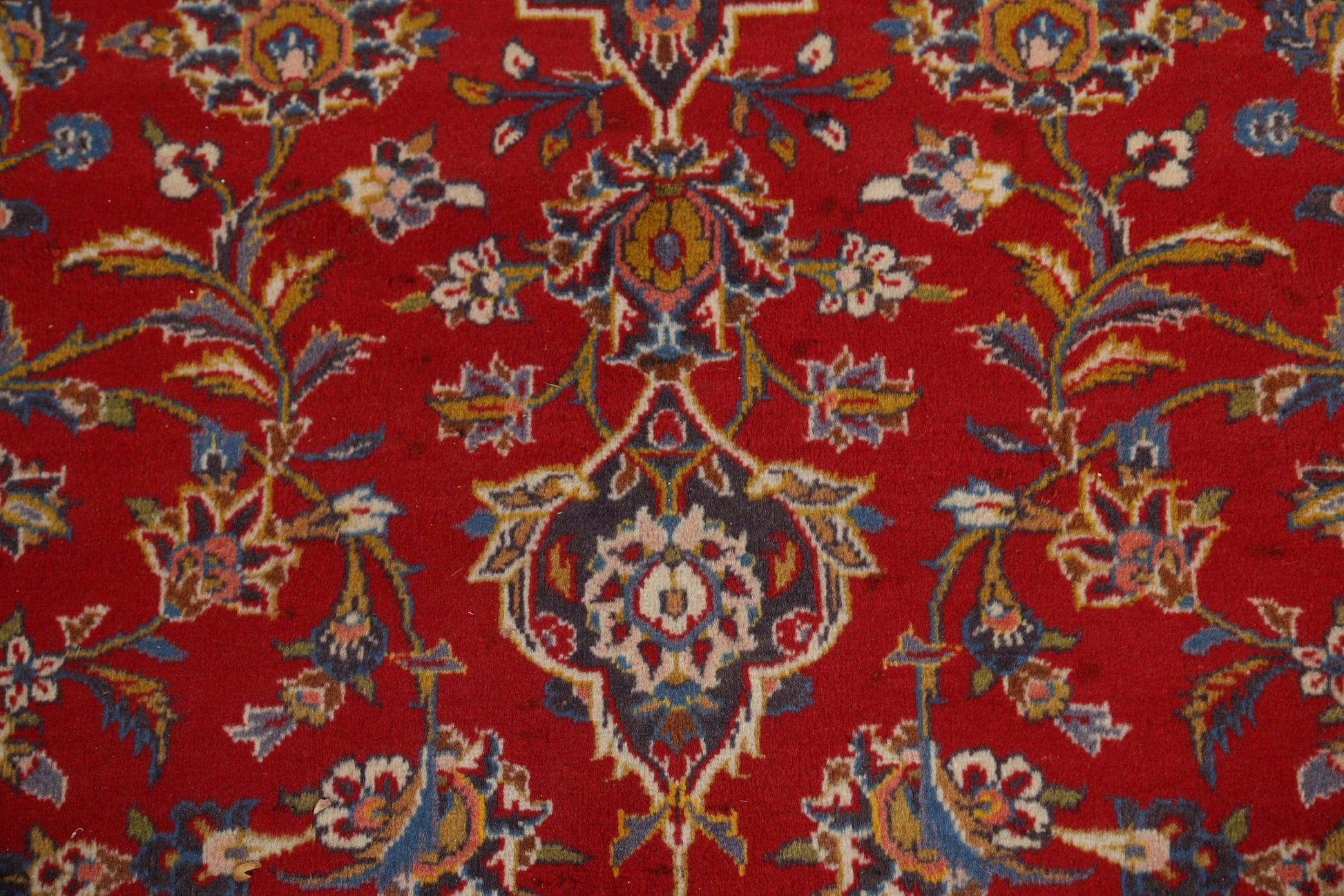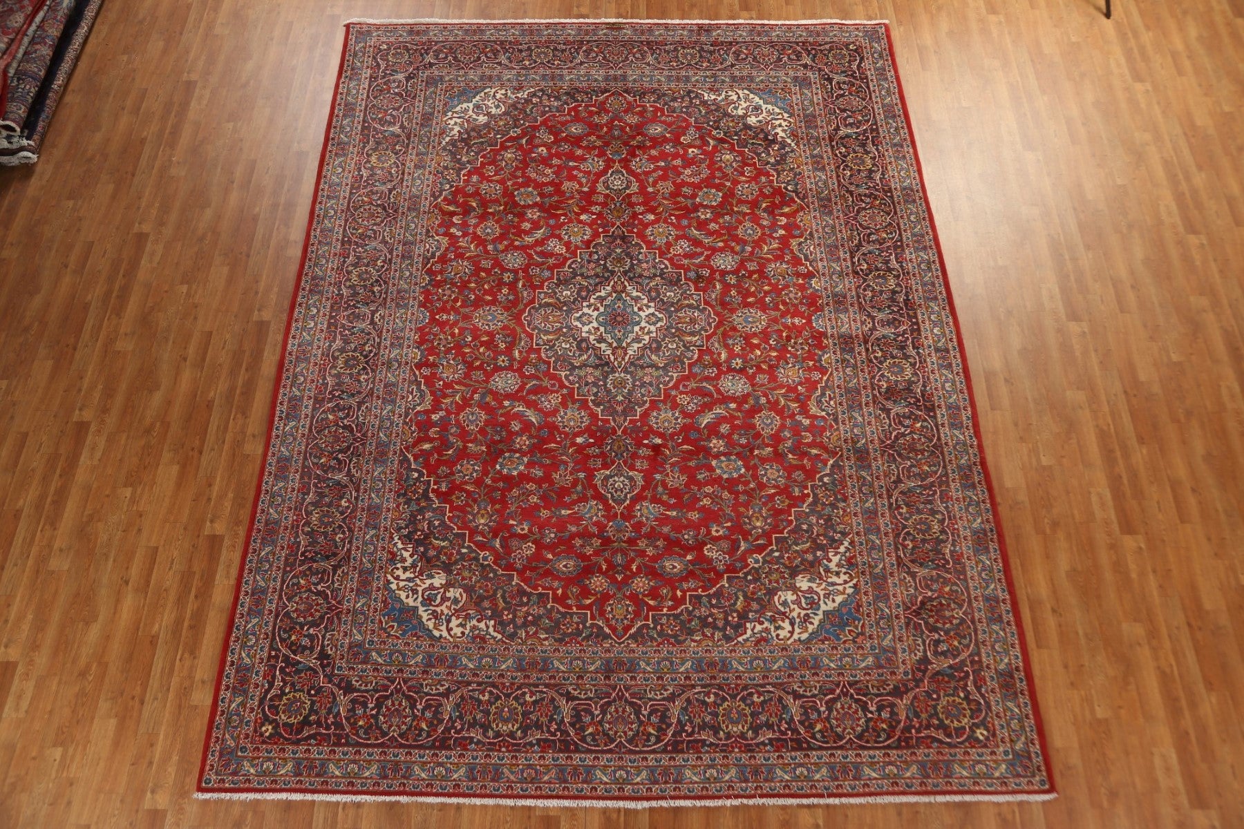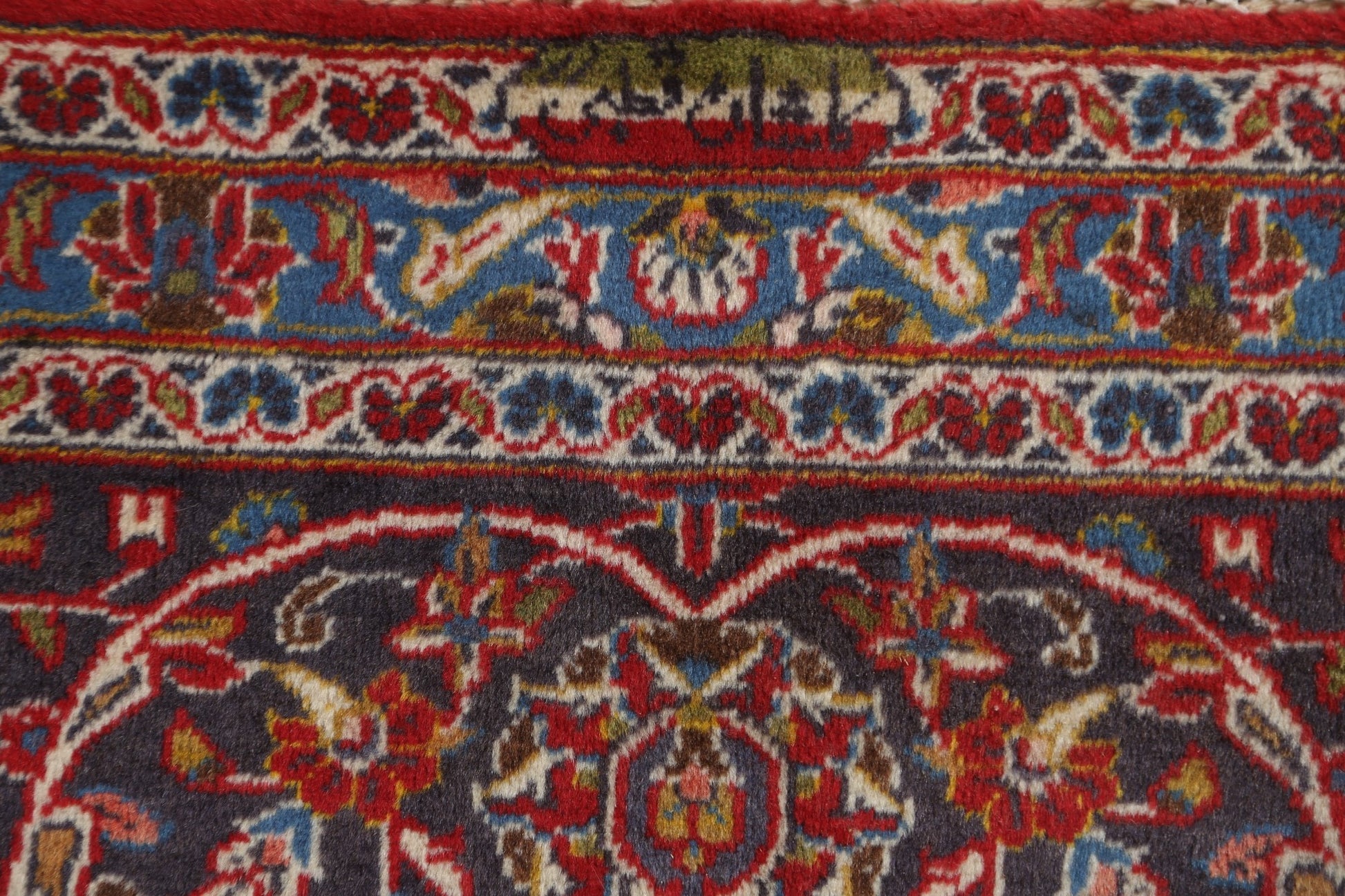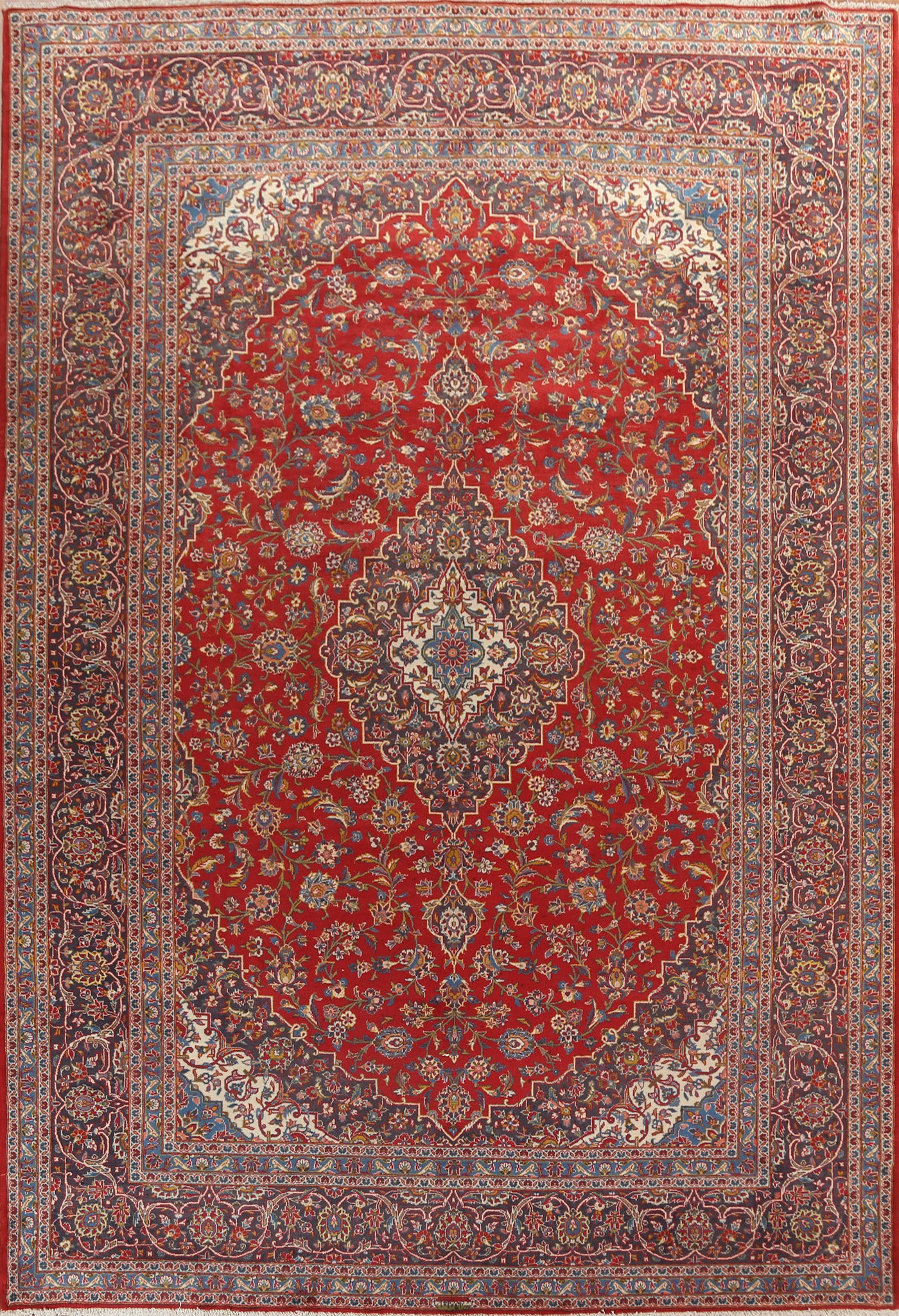 A Beautiful Genuine Persia ( Persia ) Kashan rug is Hand Knotted by skillful weavers in Persia ( Persia ) with 100% Wool Material. This rug is in Very Good condition. dimensions are 12' 9'' X 9' 7'' in foot and 389 X 292 in centimeter. the primary color is Red.