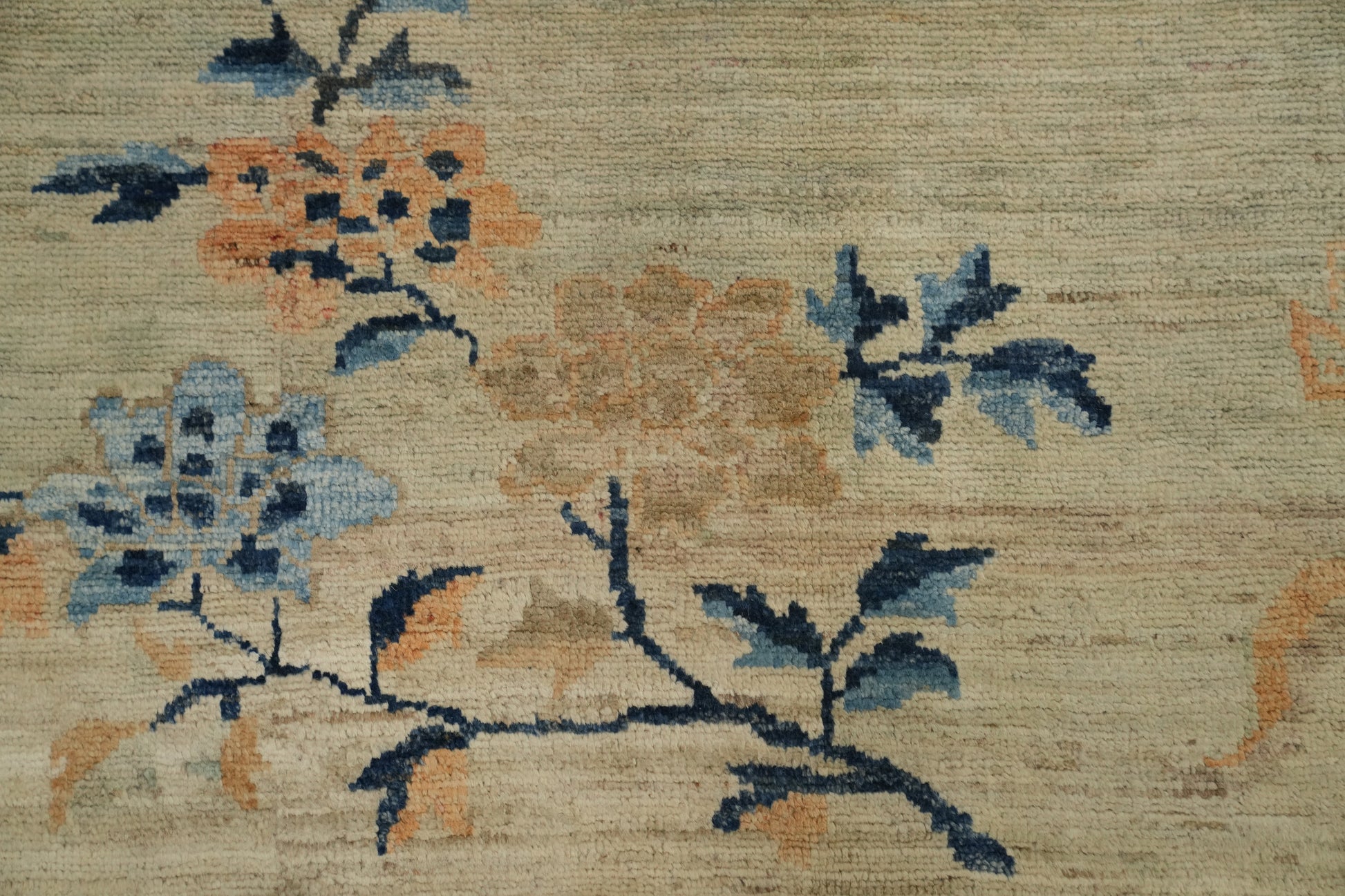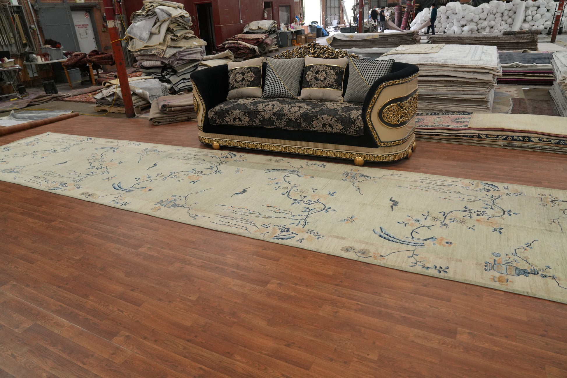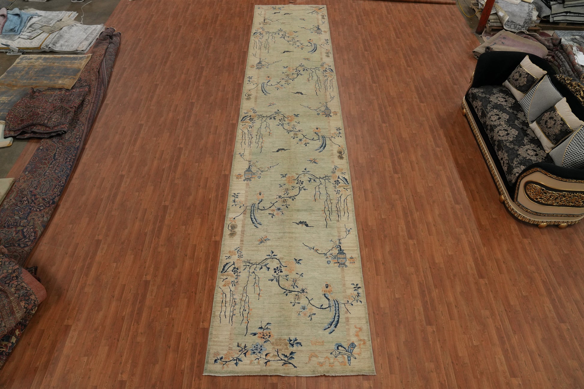 A Beautiful Genuine Pakistan Ziegler rug is Hand Knotted by skillful weavers in Pakistan with 100% Wool Material. This rug is in New, First Quality condition. dimensions are 23' 10'' X 4' 10'' in foot and 726 X 147 in centimeter. the primary color is Green.