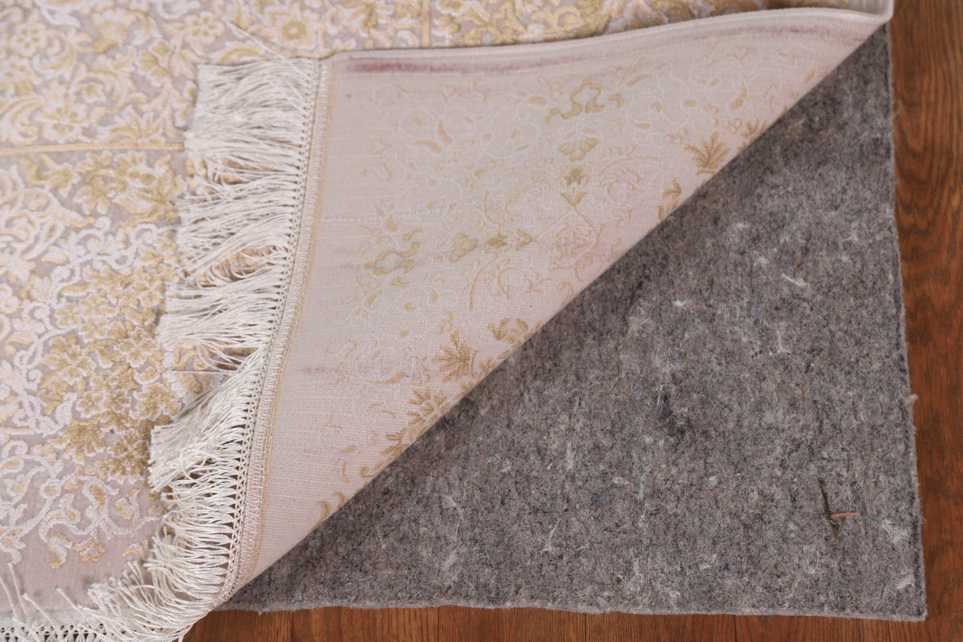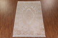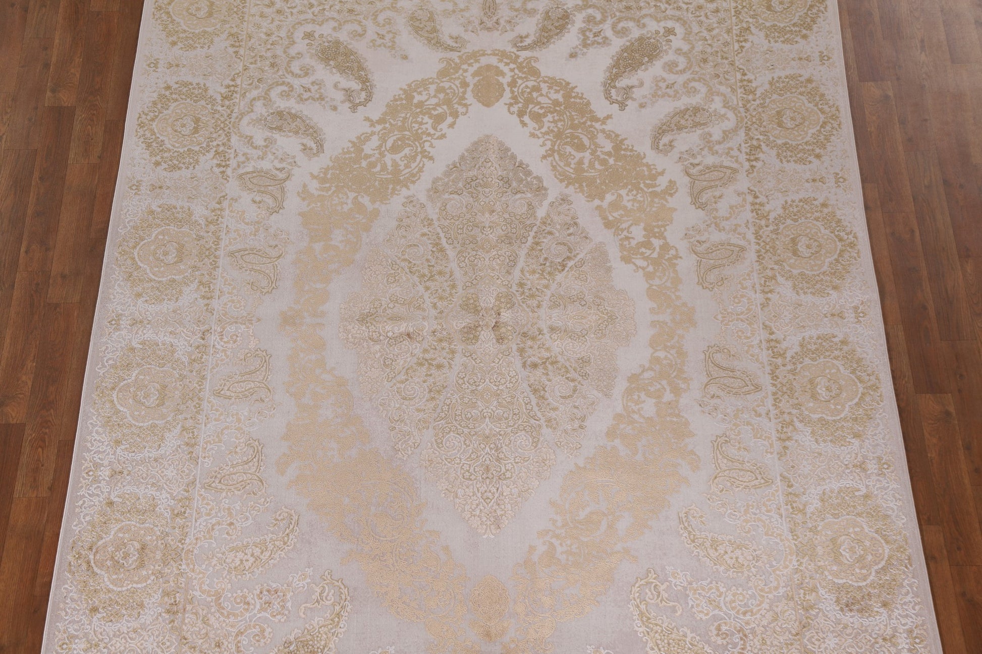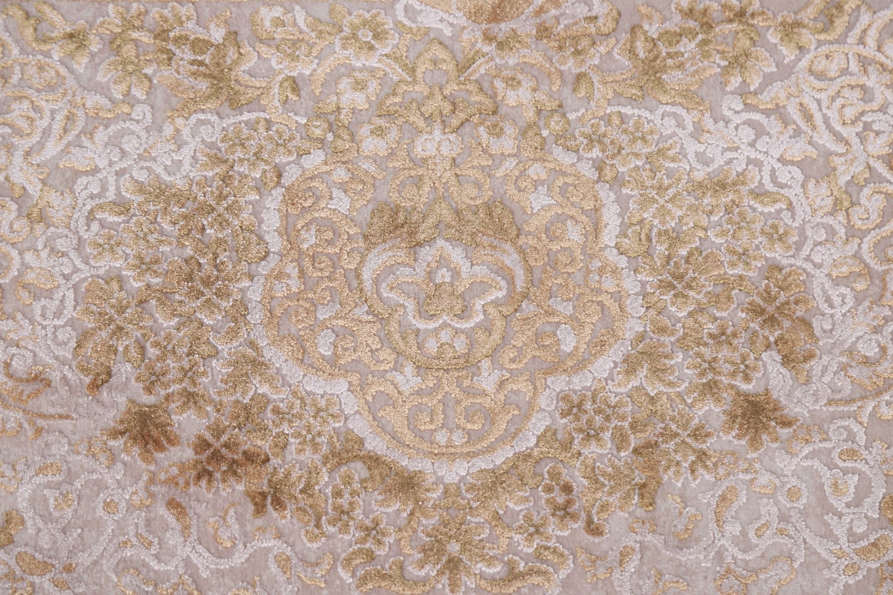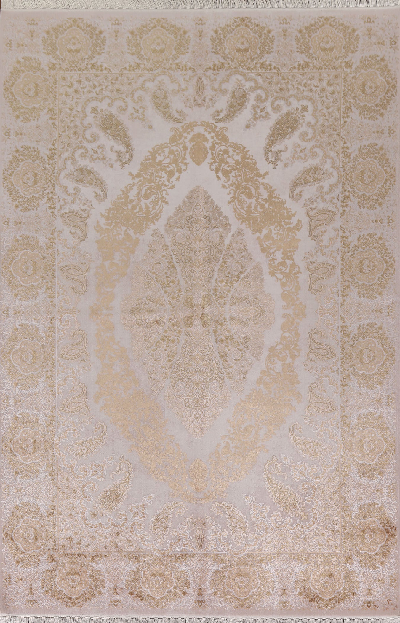 A Beautiful Genuine Turkey Qum rug is Machine Made by skillful weavers in Turkey with 90% Silk - 10% Polyester Material. This rug is in condition. dimensions are 9' 7'' X 6' 5'' in foot and 292 X 196 in centimeter. the primary color is Beige & Ivories.