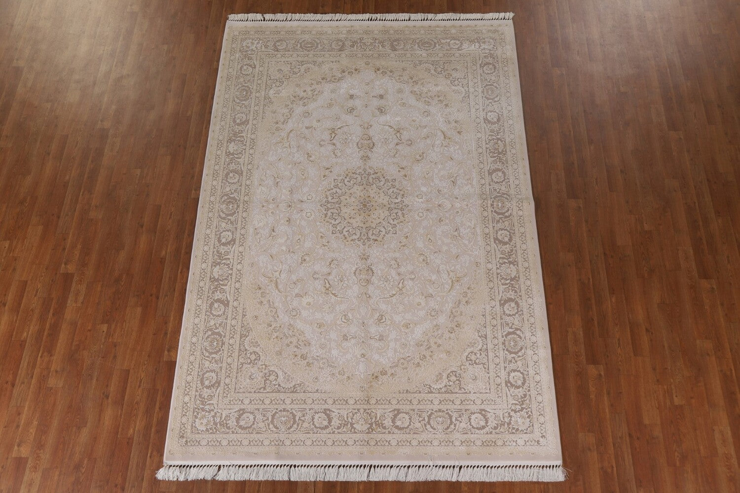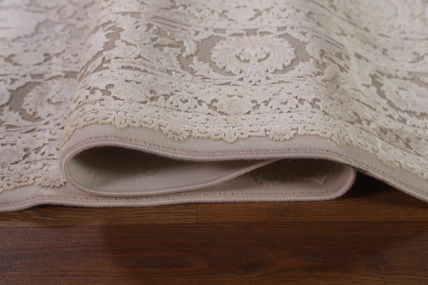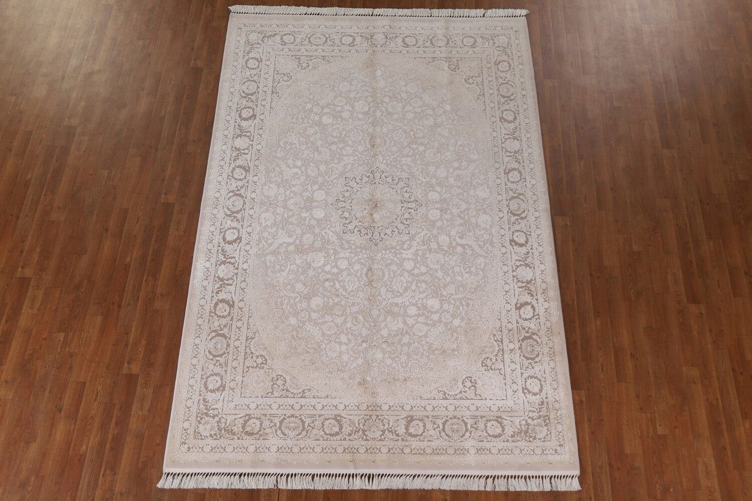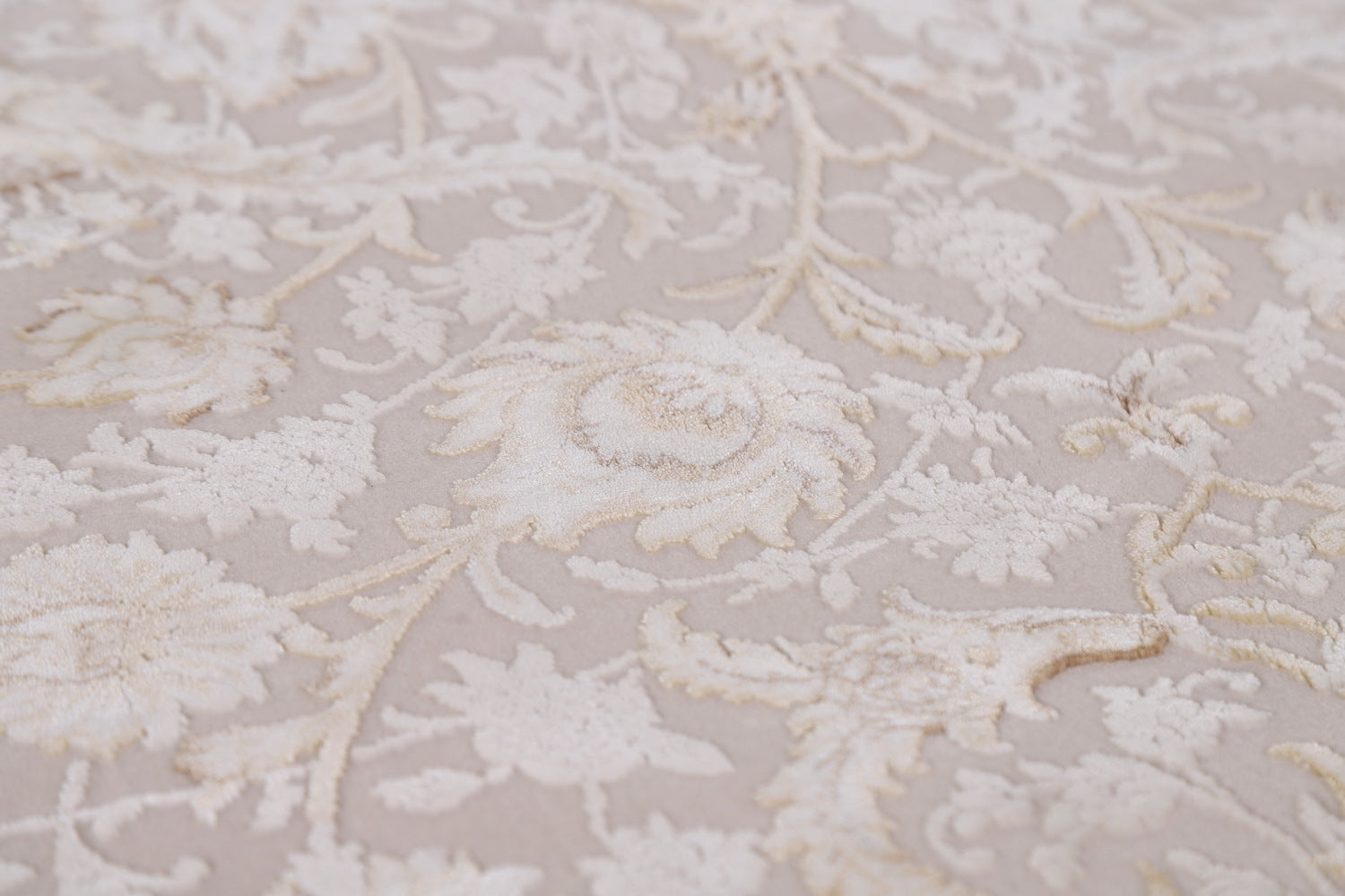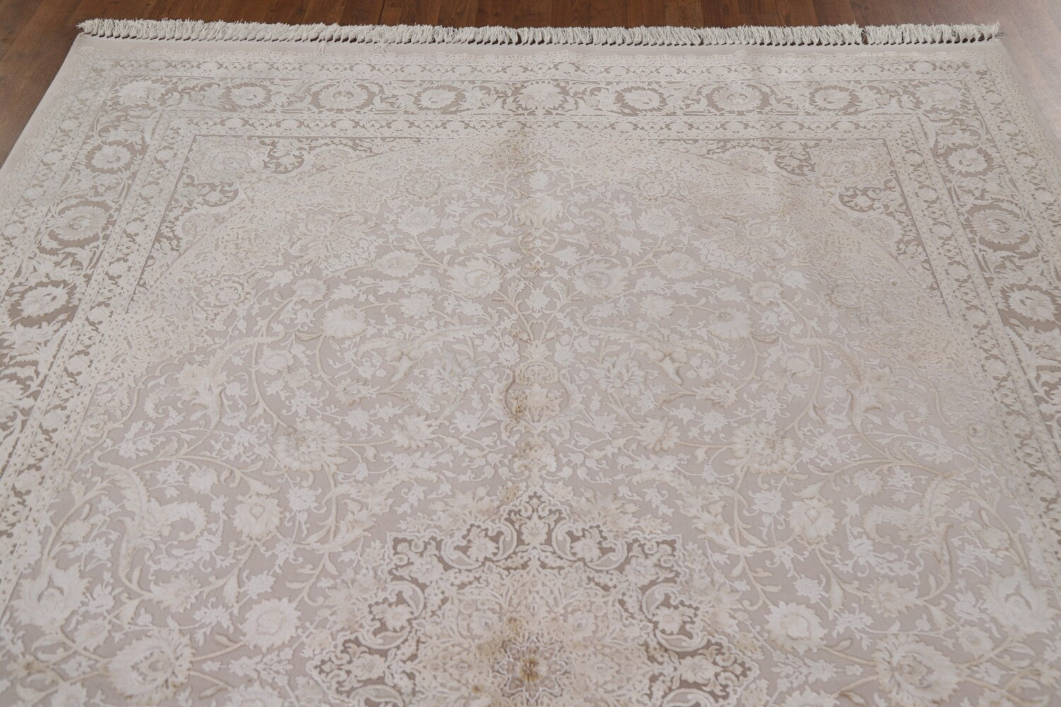 A Beautiful Genuine Turkey Tabriz rug is Machine Made by skillful weavers in Turkey with 90% Silk - 10% Polyester Material. This rug is in condition. dimensions are 9' 7'' X 6' 5'' in foot and 292 X 196 in centimeter. the primary color is Beige & Ivories.