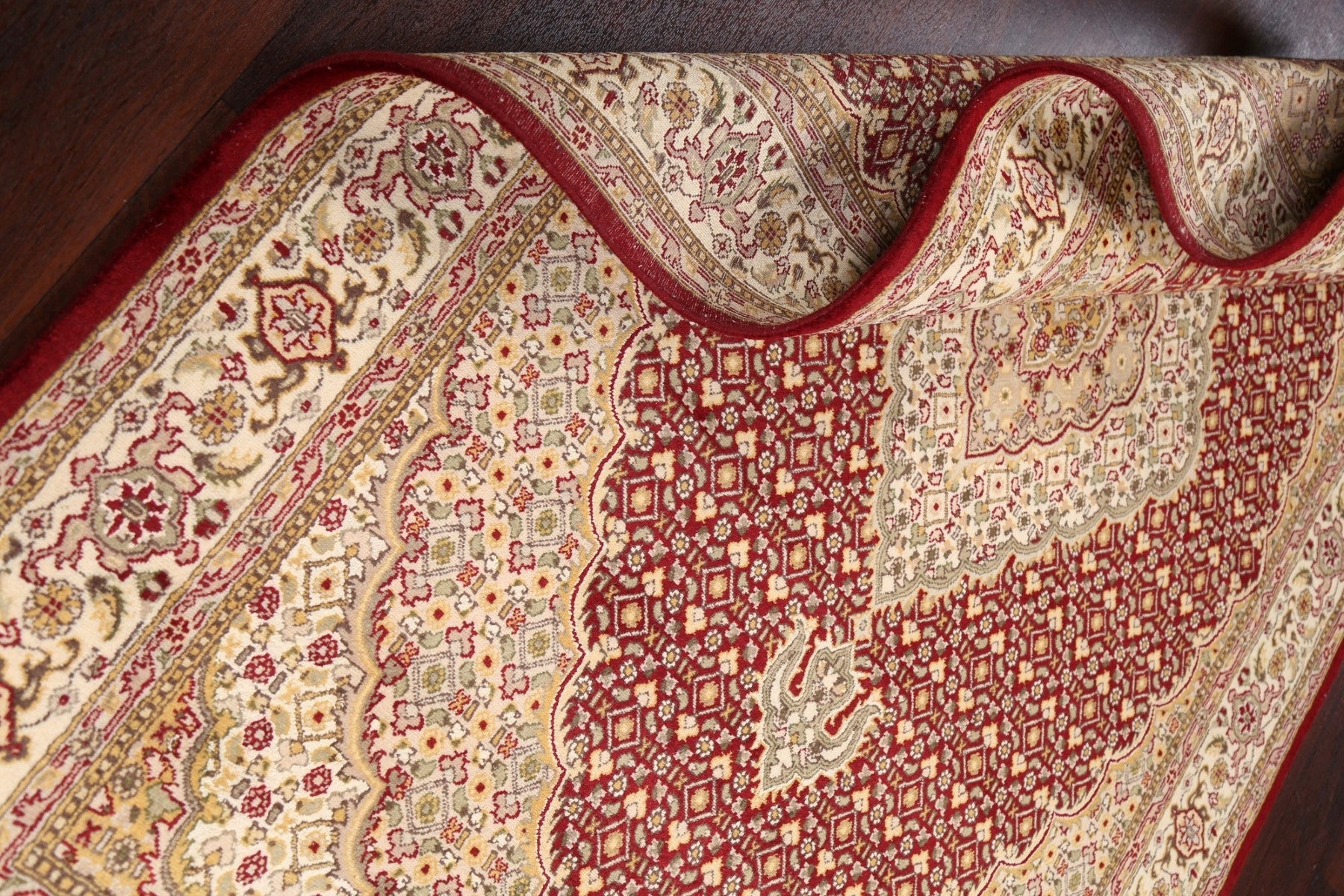 A Beautiful Genuine Pakistan Tabriz rug is Hand Knotted by skillful weavers in Pakistan with 100% Wool Material. This rug is in New, First Quality condition. dimensions are 8' 7'' X 5' 1'' in foot and 262 X 155 in centimeter. the primary color is Red.