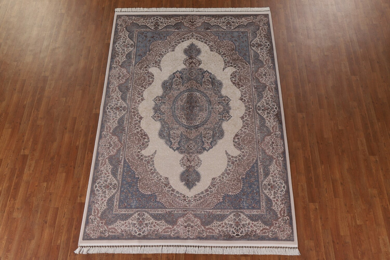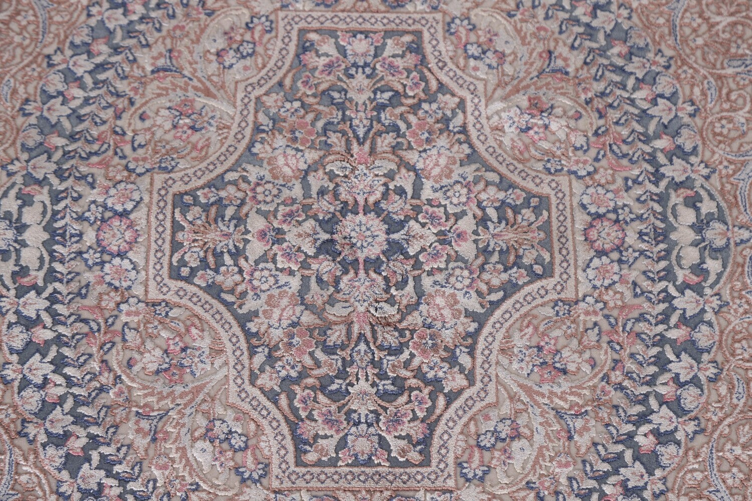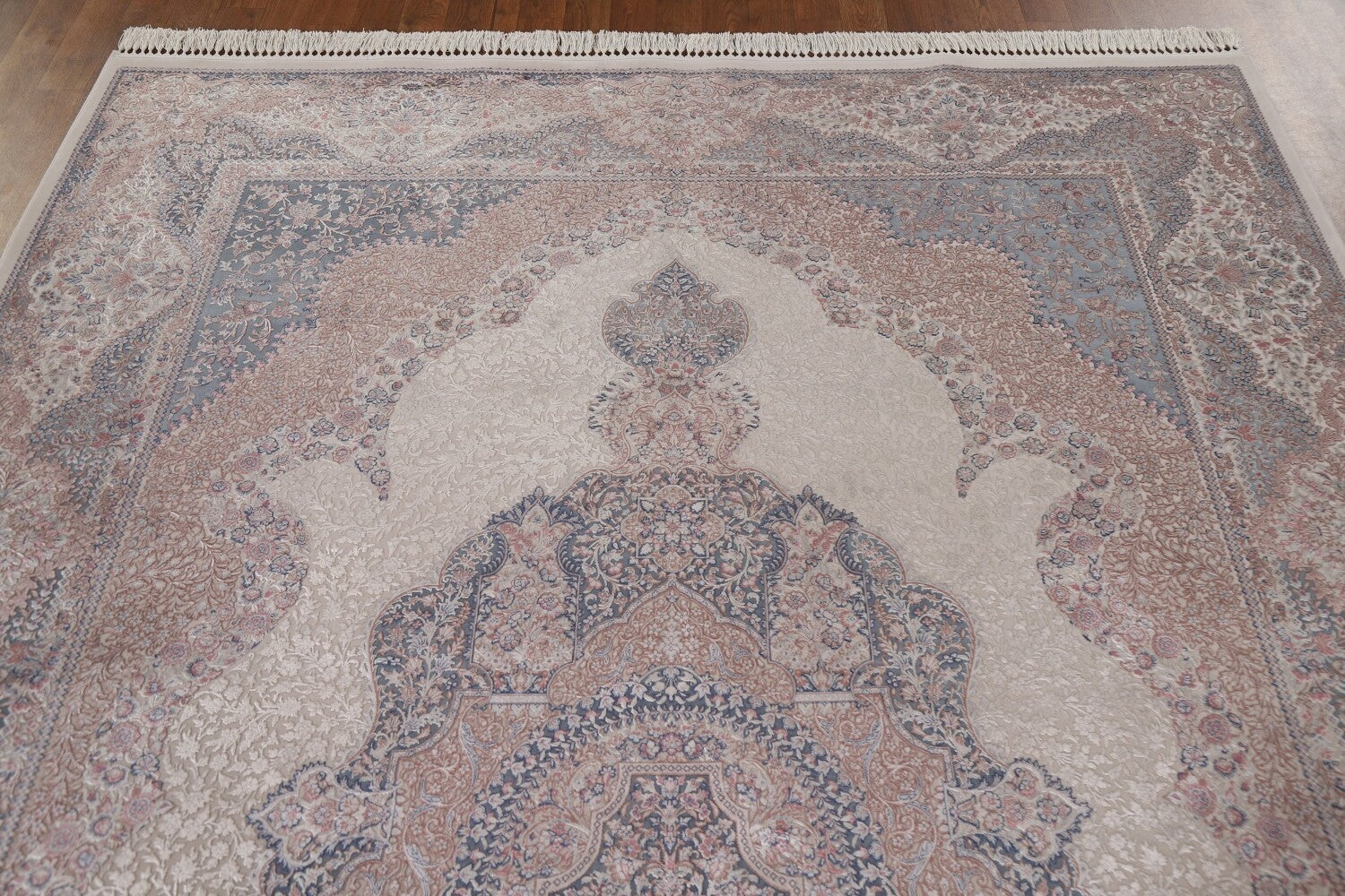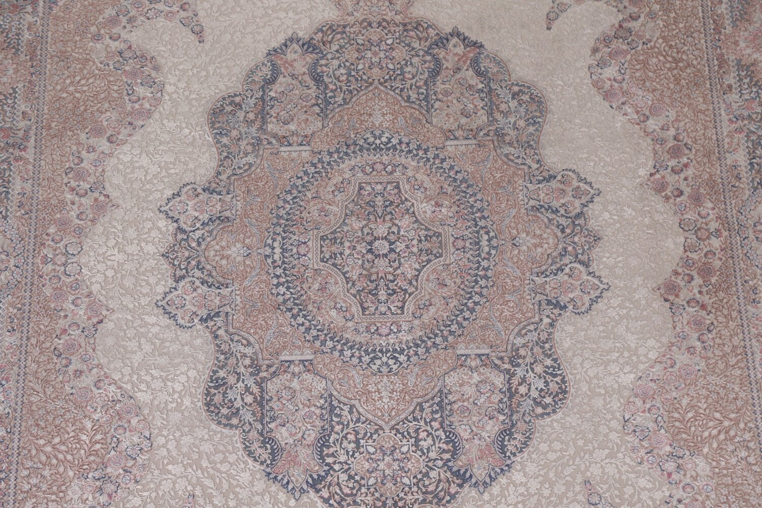 A Beautiful Genuine Turkey Tabriz rug is Machine Made by skillful weavers in Turkey with 90% Silk - 10% Polyester Material. This rug is in condition. dimensions are 9' 6'' X 6' 7'' in foot and 290 X 201 in centimeter. the primary color is Beige & Ivories.