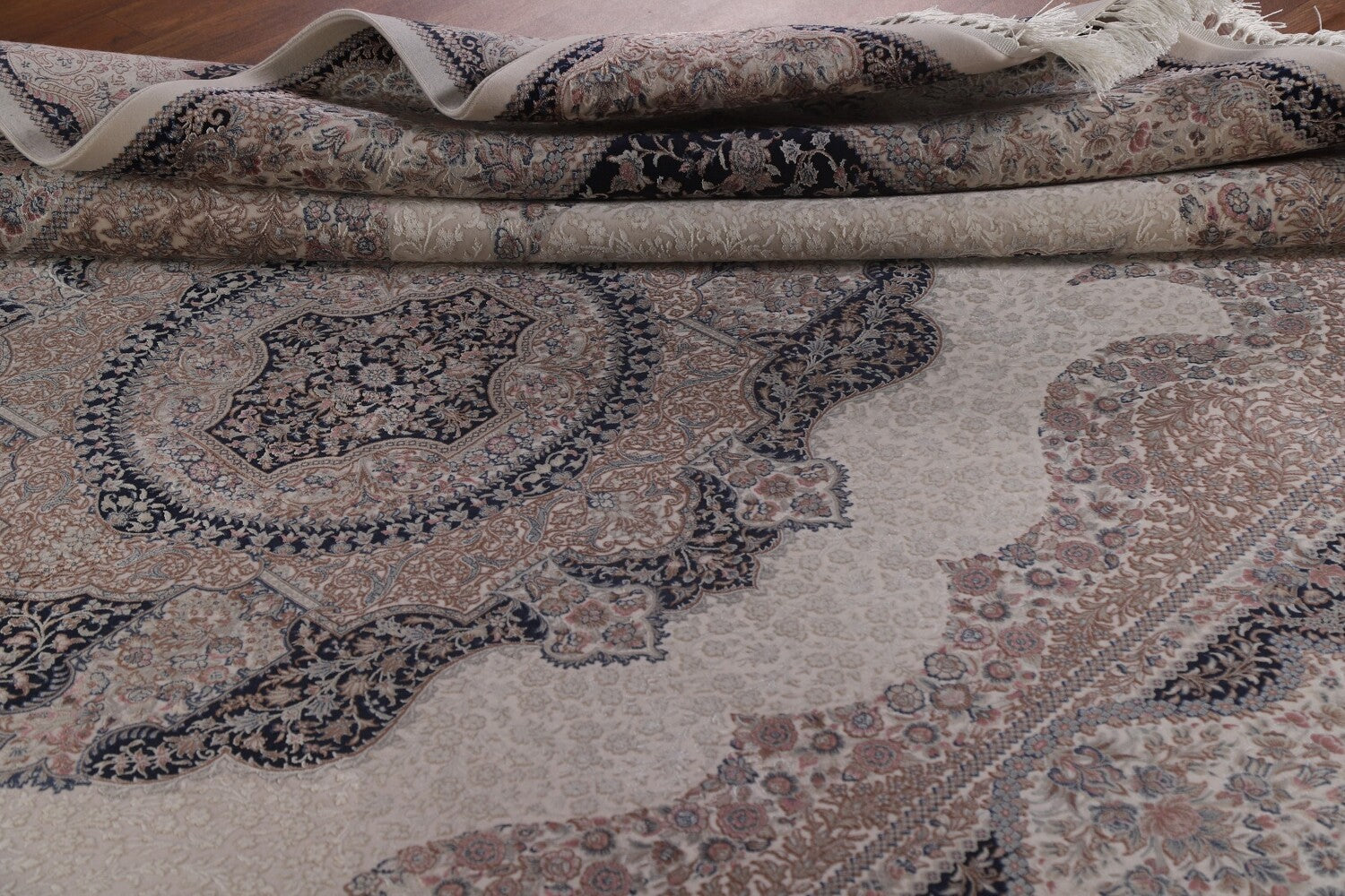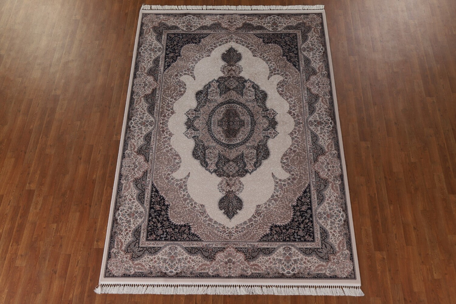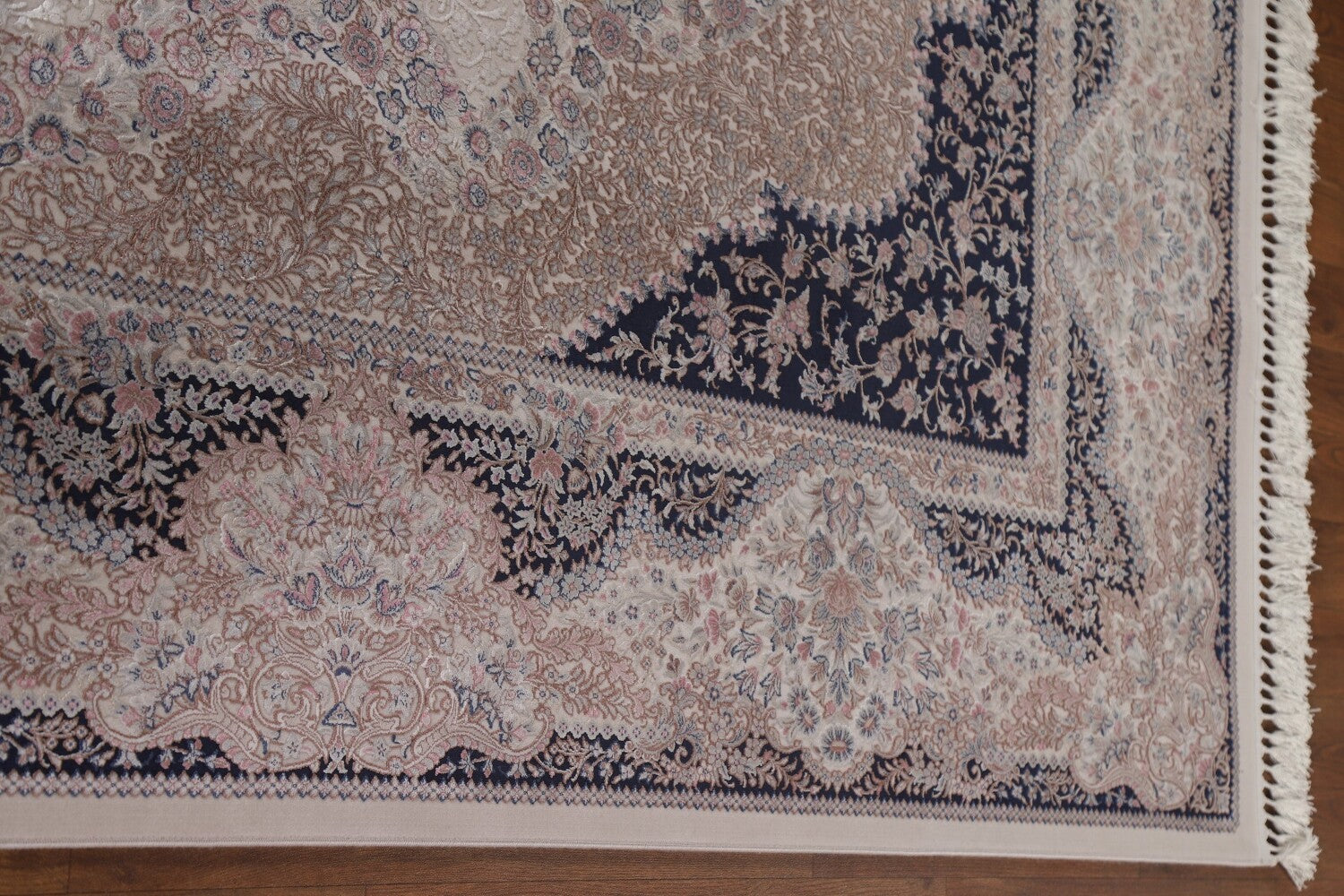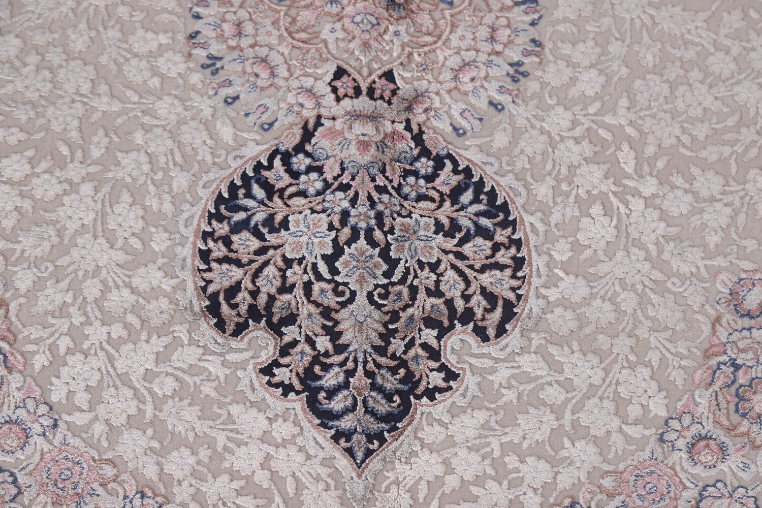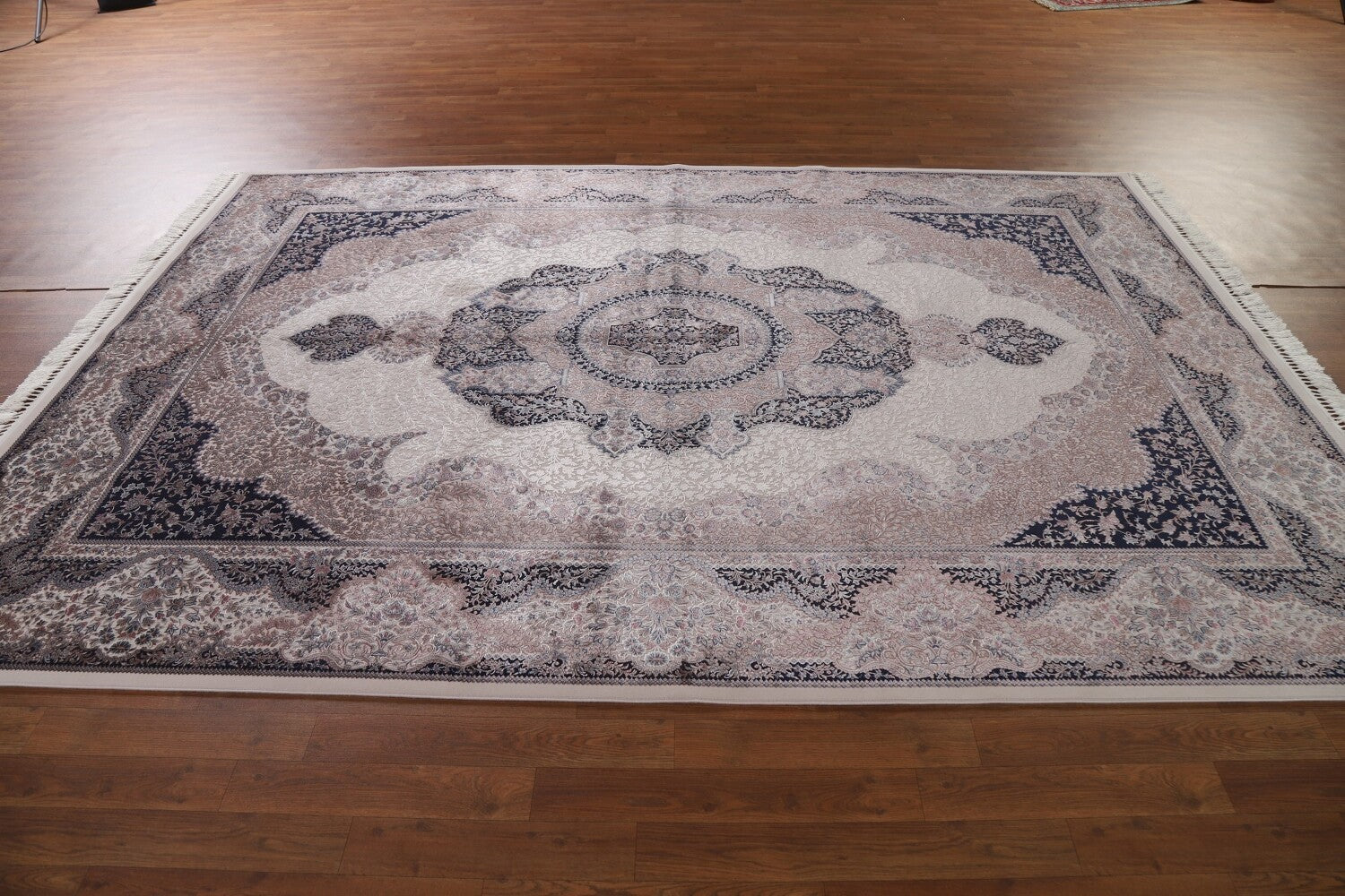 A Beautiful Genuine Turkey Tabriz rug is Machine Made by skillful weavers in Turkey with 90% Silk - 10% Polyester Material. This rug is in condition. dimensions are 9' 7'' X 6' 7'' in foot and 292 X 201 in centimeter. the primary color is Beige & Ivories.