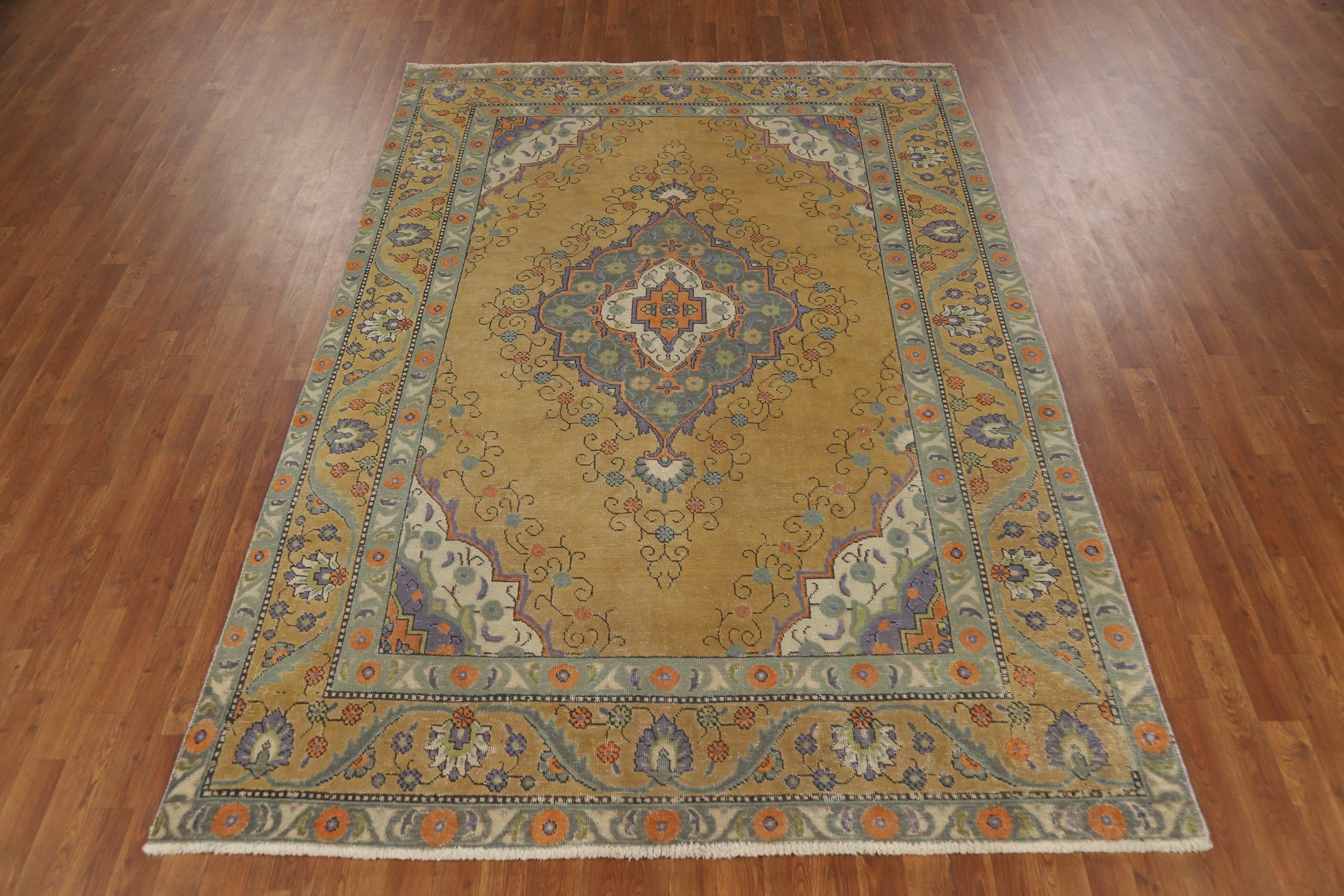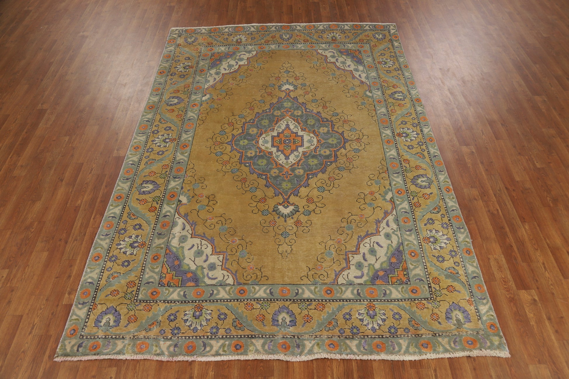 A Beautiful Genuine Persia ( Persia ) Tabriz rug is Hand Knotted by skillful weavers in Persia ( Persia ) with 100% Wool Material. This rug is in Very Good (Evenly Low Pile) condition. dimensions are 9' 4'' X 6' 4'' in foot and 284 X 193 in centimeter. the primary color is Brown.