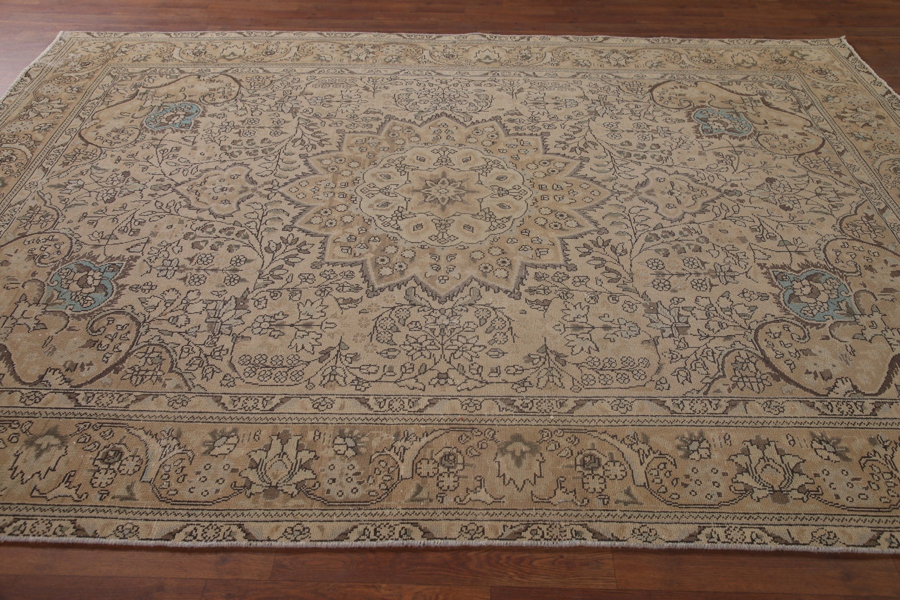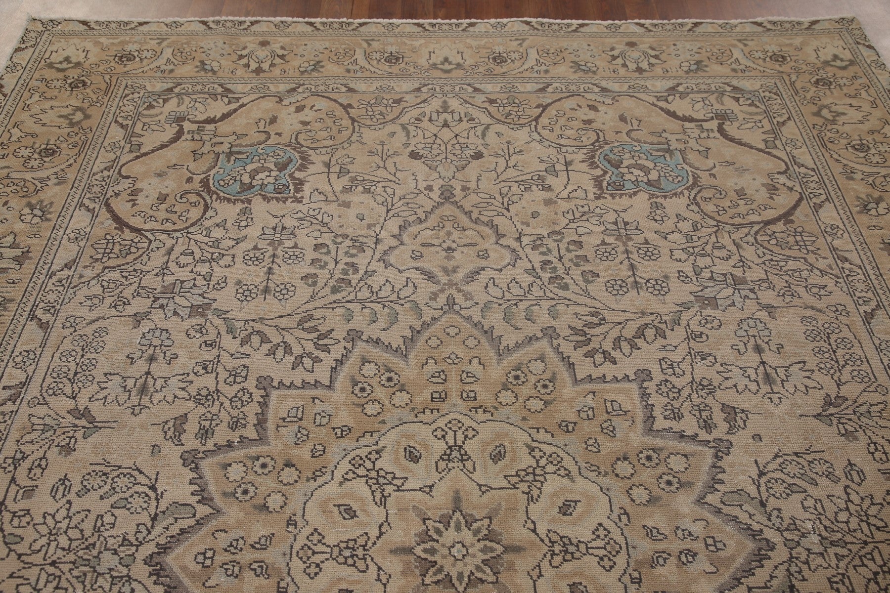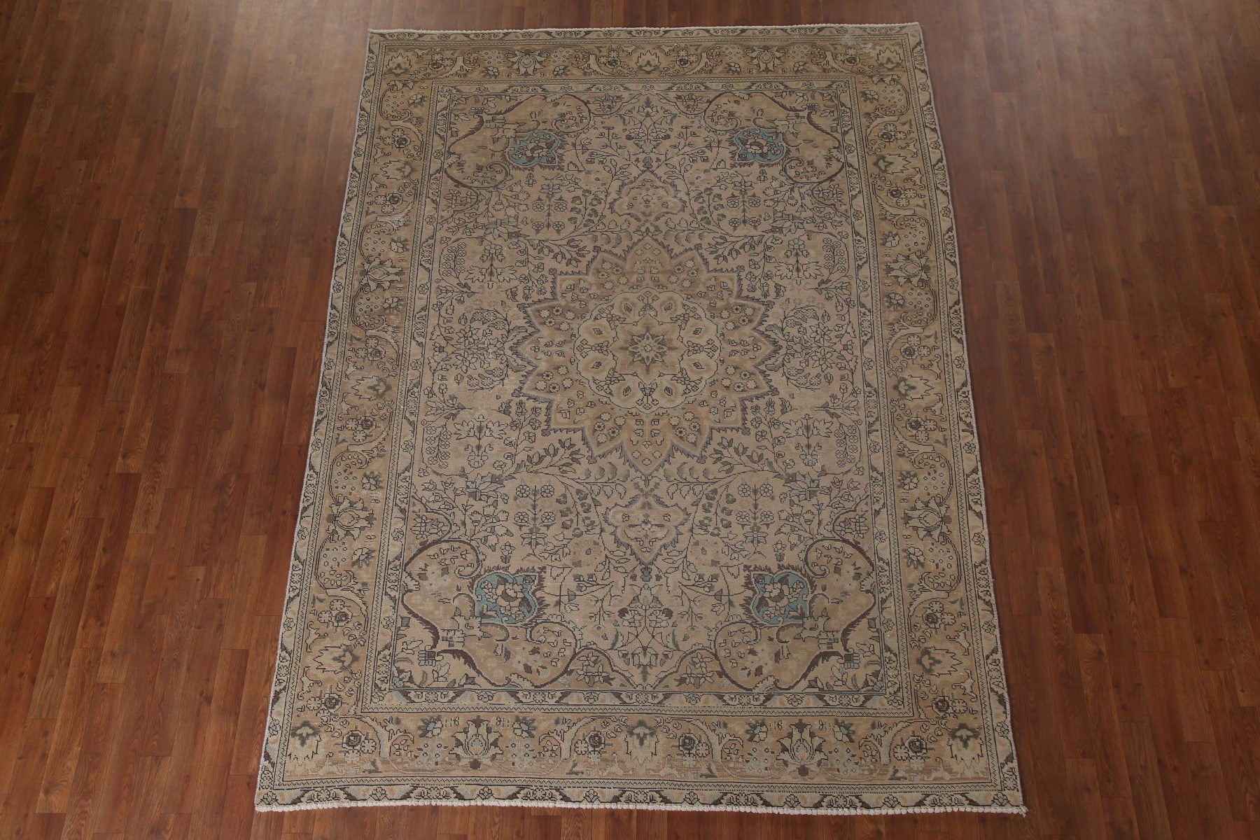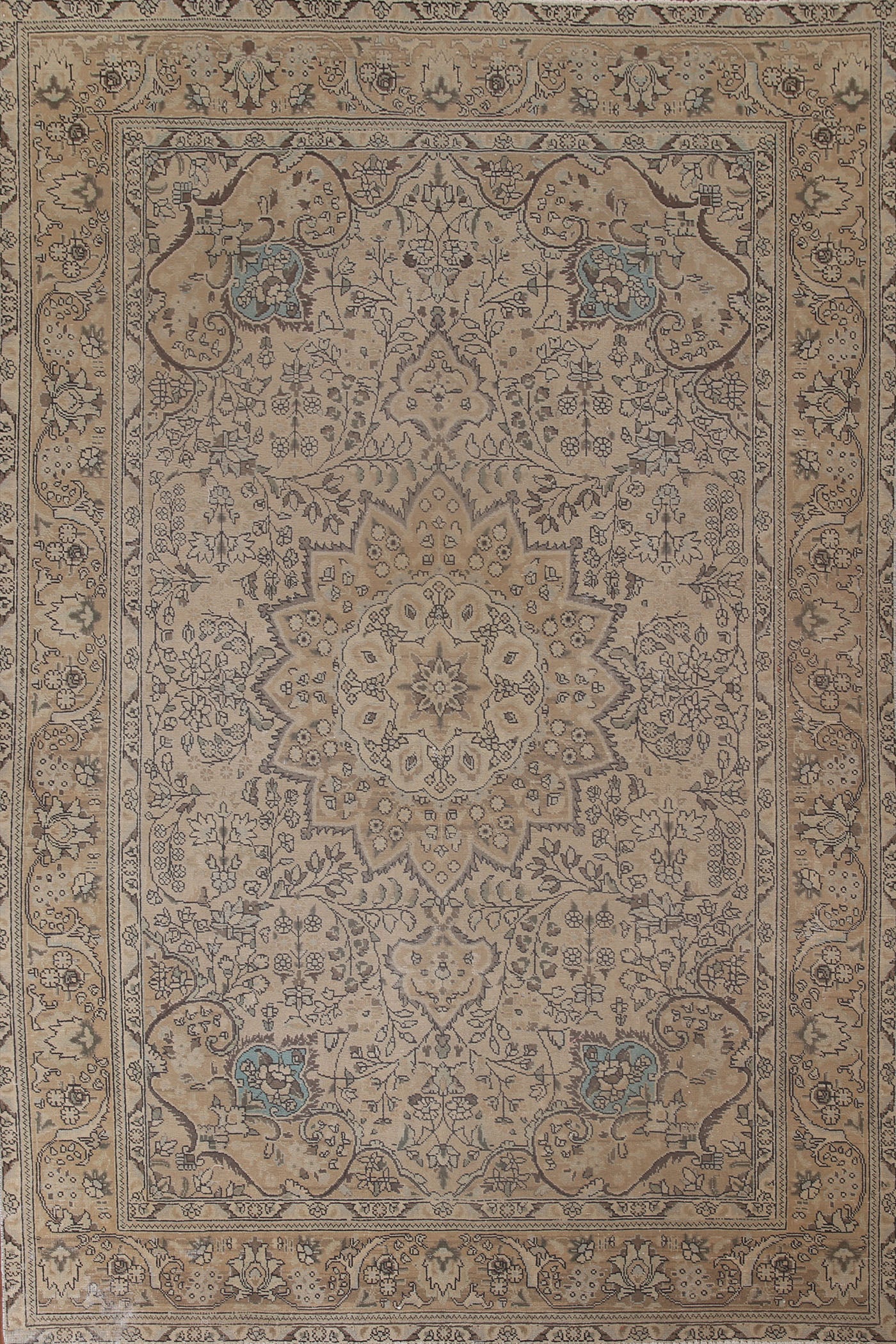 A Beautiful Genuine Persia ( Persia ) Tabriz rug is Hand Knotted by skillful weavers in Persia ( Persia ) with 100% Wool Material. This rug is in Very Good (Low Pile) condition. dimensions are 9' 2'' X 6' 10'' in foot and 279 X 208 in centimeter. the primary color is Beige & Ivories.