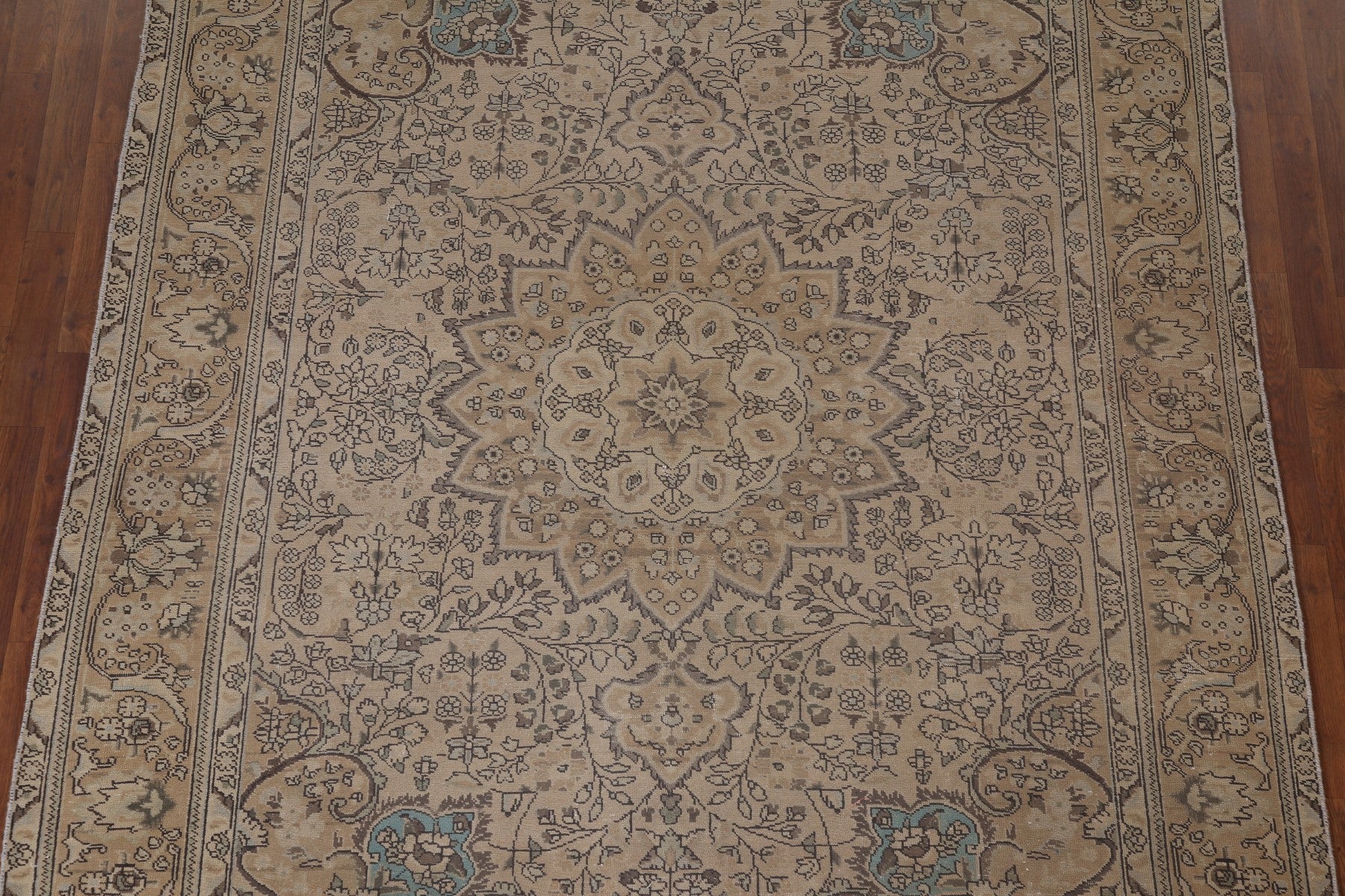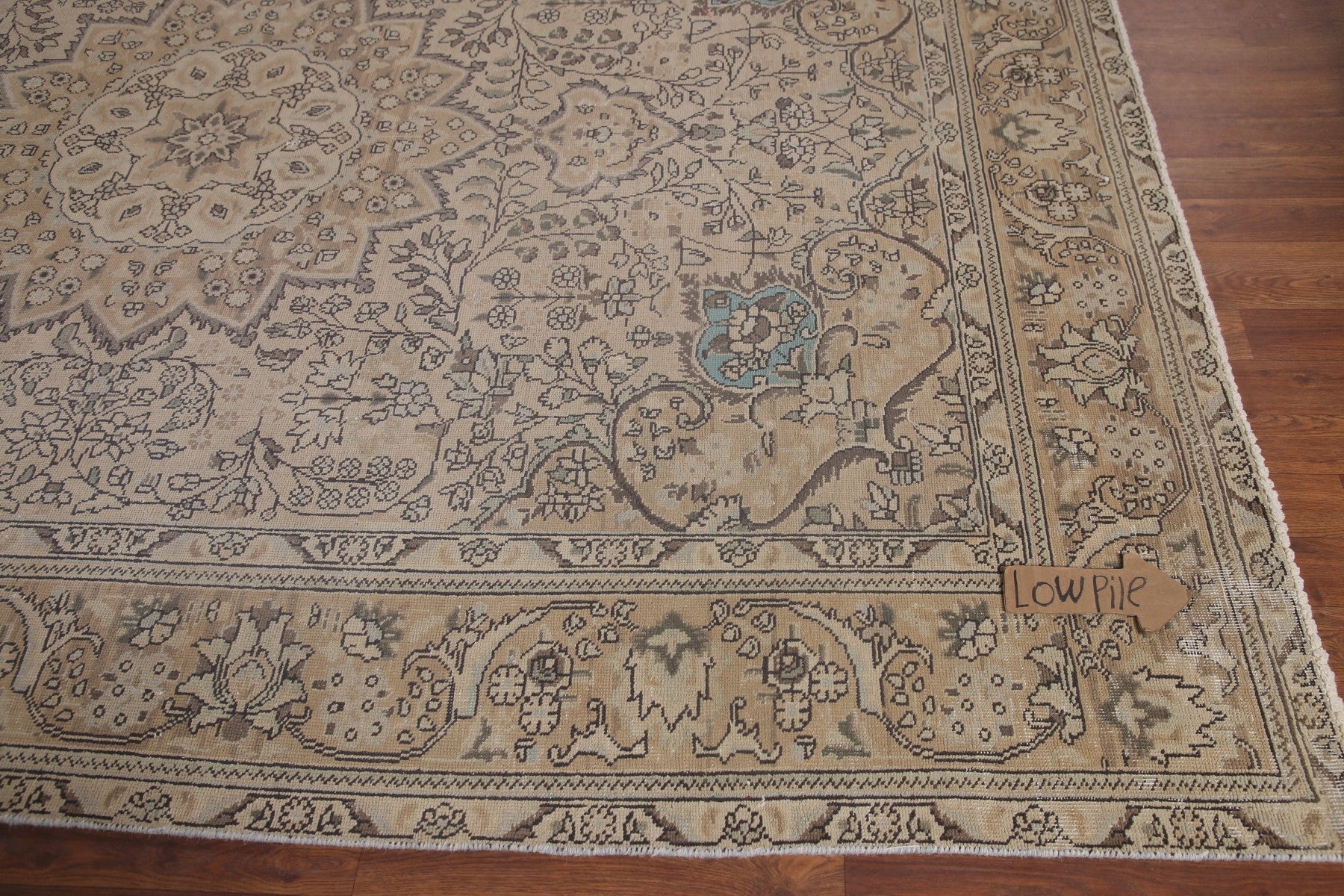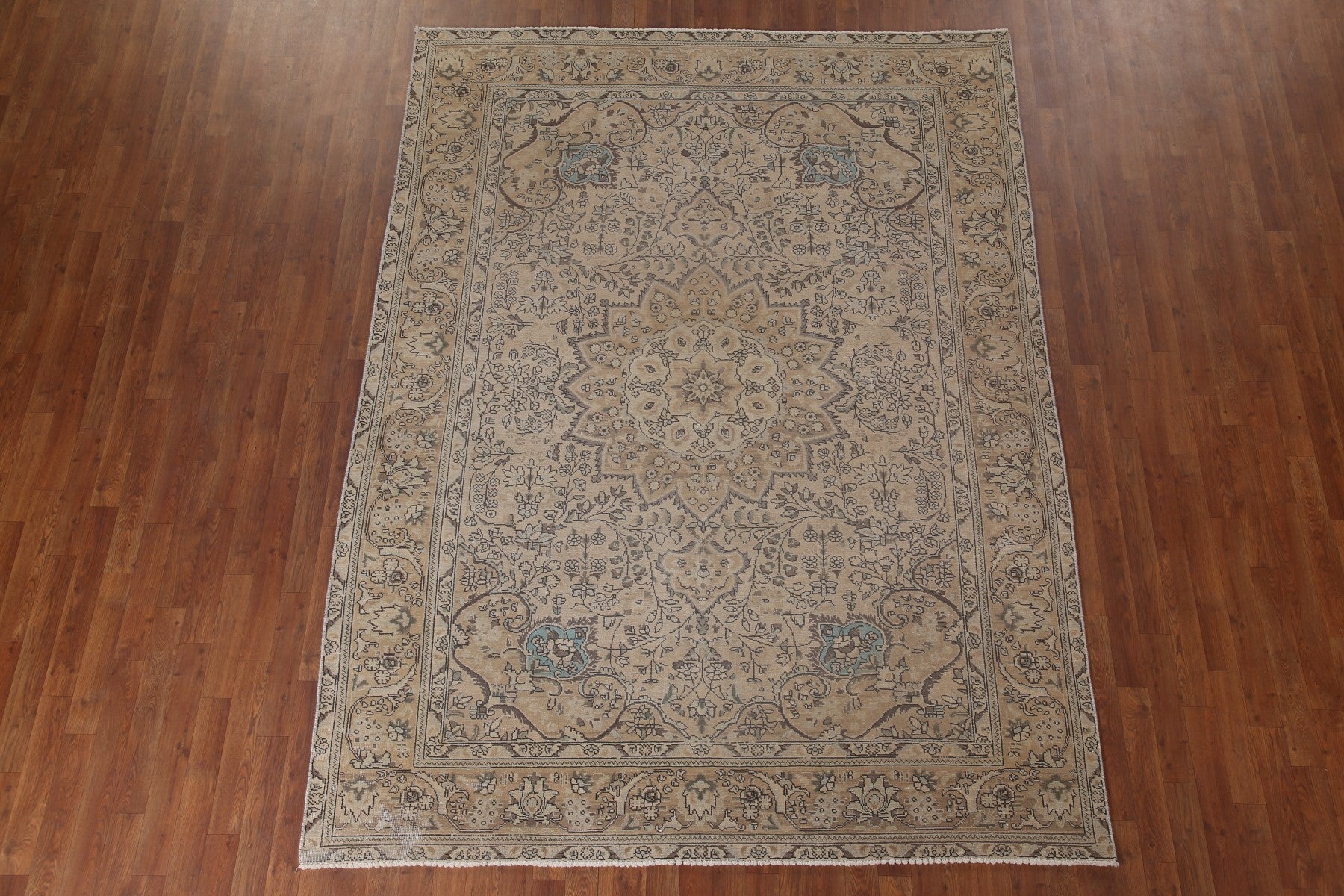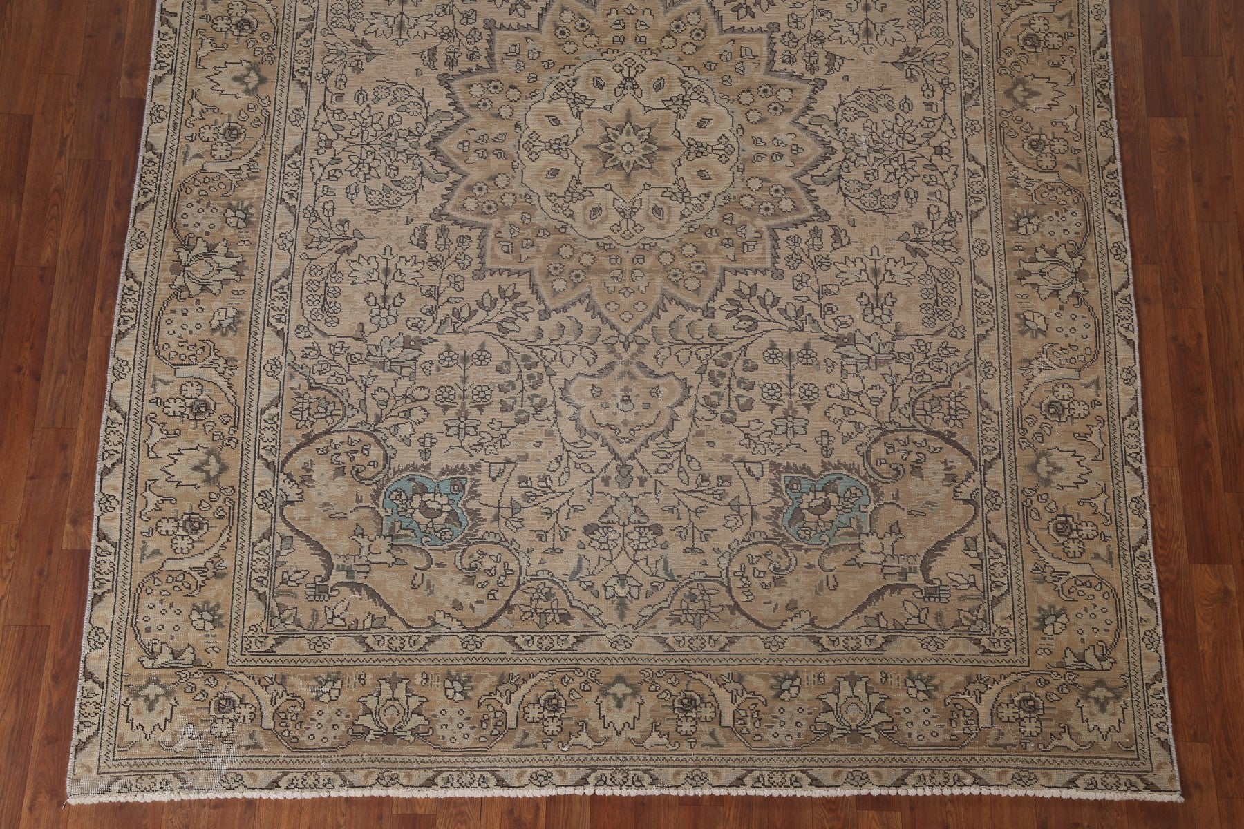 A Beautiful Genuine Persia ( Persia ) Tabriz rug is Hand Knotted by skillful weavers in Persia ( Persia ) with 100% Wool Material. This rug is in Very Good (Low Pile) condition. dimensions are 9' 2'' X 6' 10'' in foot and 279 X 208 in centimeter. the primary color is Beige & Ivories.