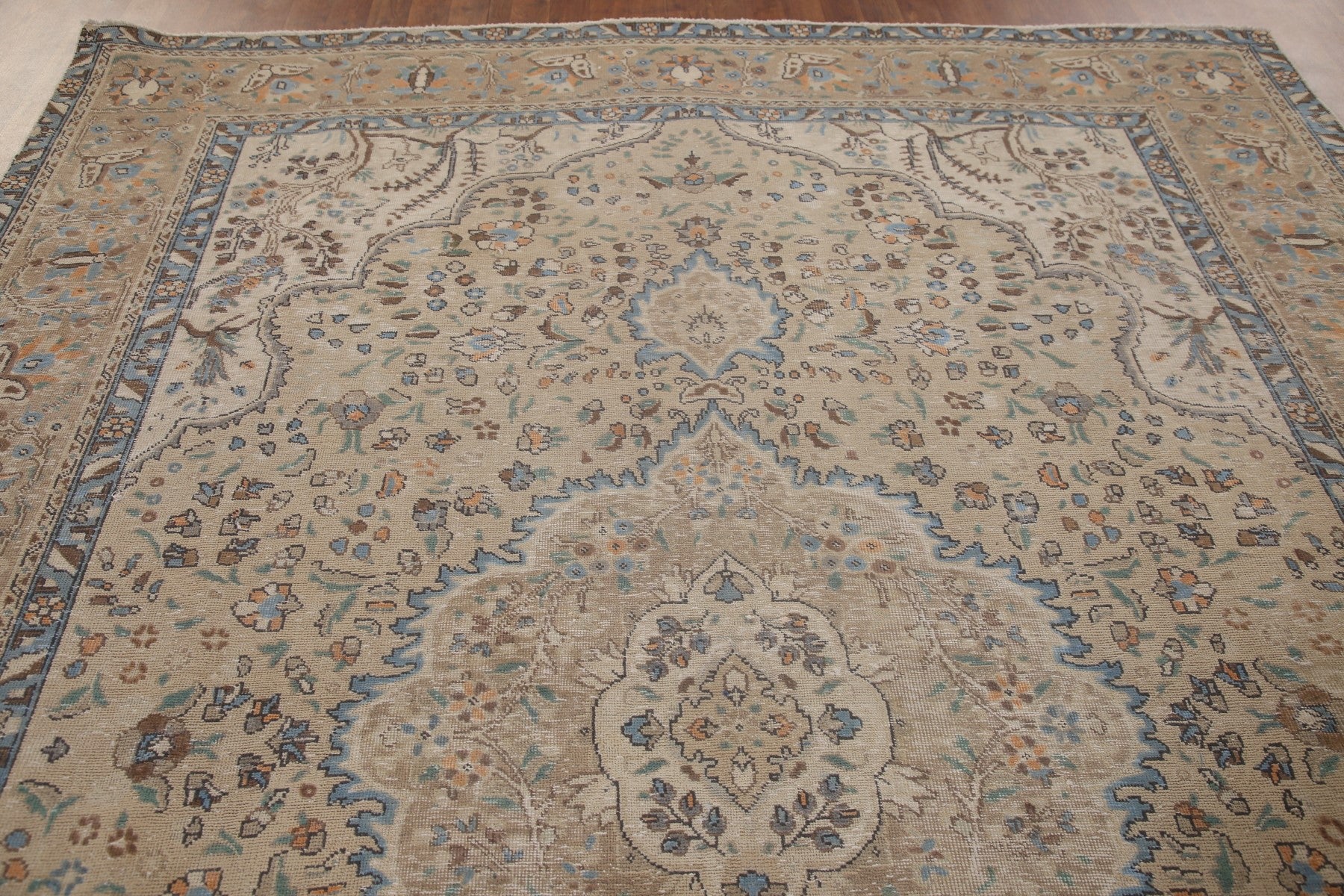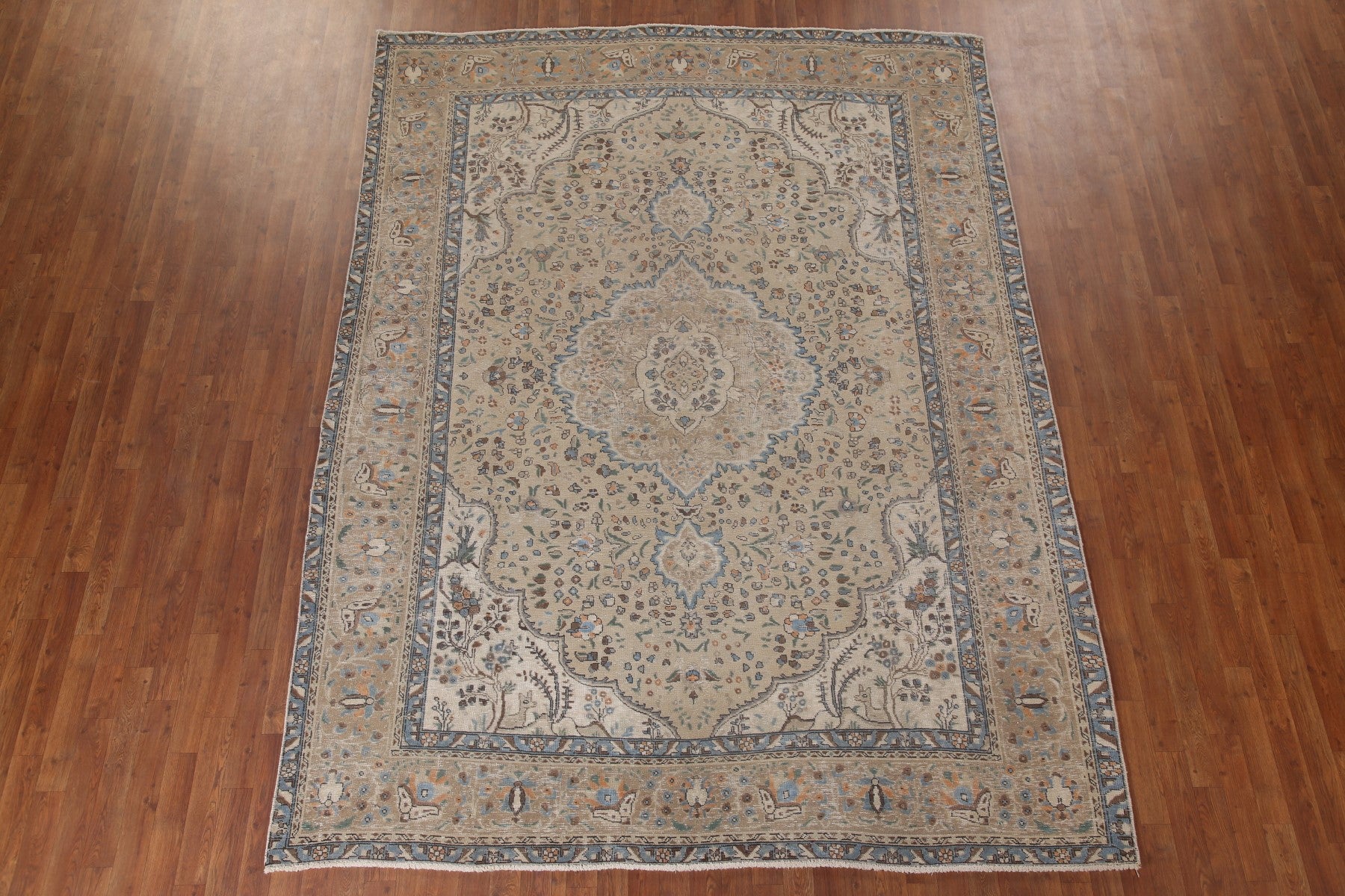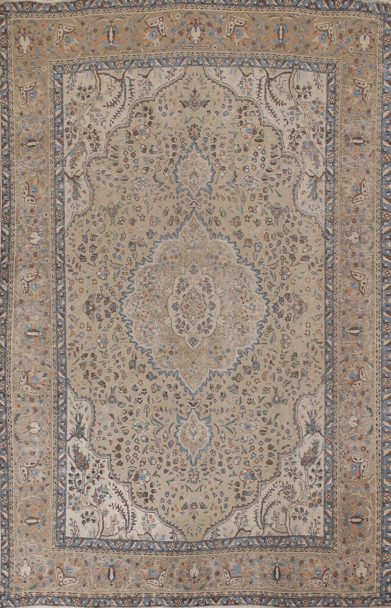 A Beautiful Genuine Persia ( Persia ) Tabriz rug is Hand Knotted by skillful weavers in Persia ( Persia ) with 100% Wool Material. This rug is in Very Good condition. dimensions are 10' 8'' X 7' 11'' in foot and 325 X 241 in centimeter. the primary color is Beige & Ivories.