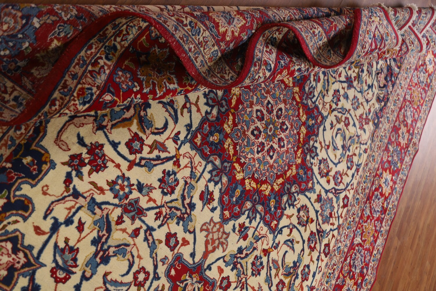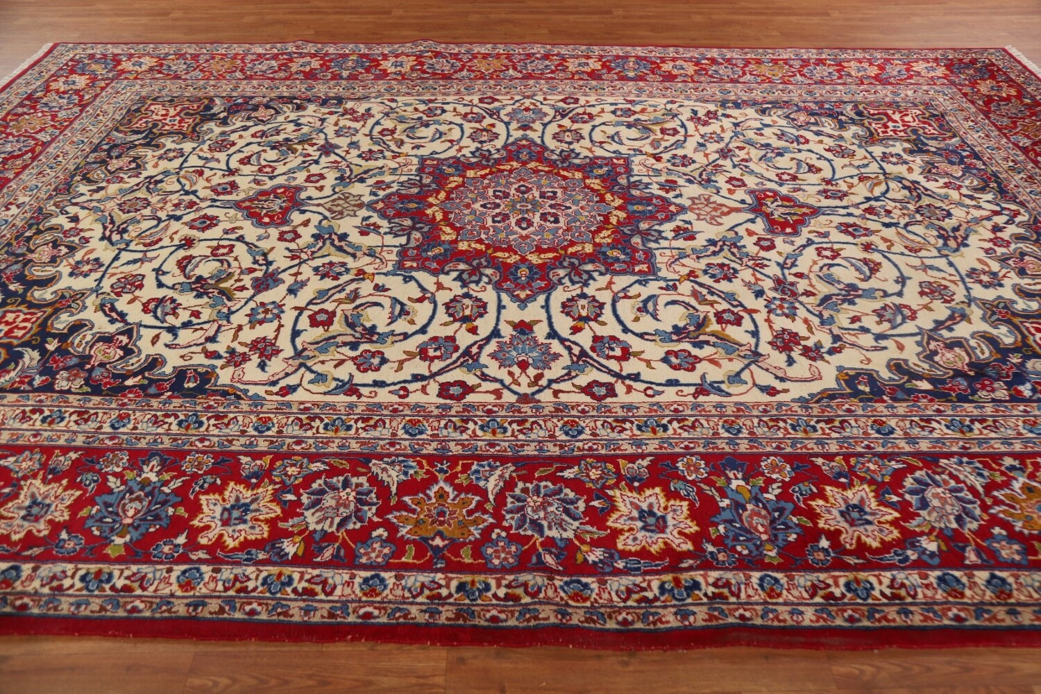 A Beautiful Genuine Persia ( Persia ) Najafabad rug is Hand Knotted by skillful weavers in Persia ( Persia ) with 100% Wool Material. This rug is in Very Good condition. dimensions are 12' 10'' X 9' 0'' in foot and 391 X 274 in centimeter. the primary color is Beige & Ivories.